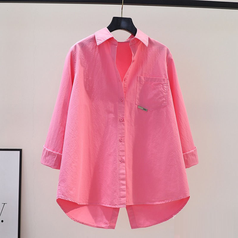 디자인감 있는 뒷트임 로즈핑크 코튼 셔츠 여성용 루즈핏 긴팔 셔츠 2026 봄 다용도 가디건 탑스토어 가기