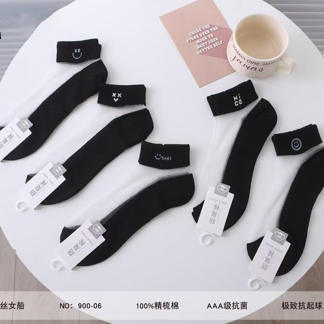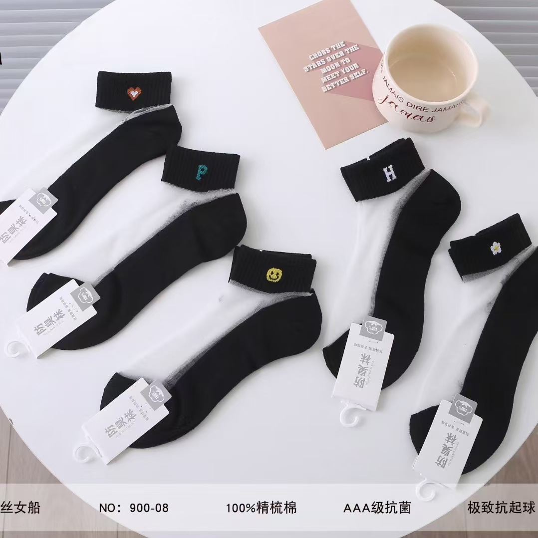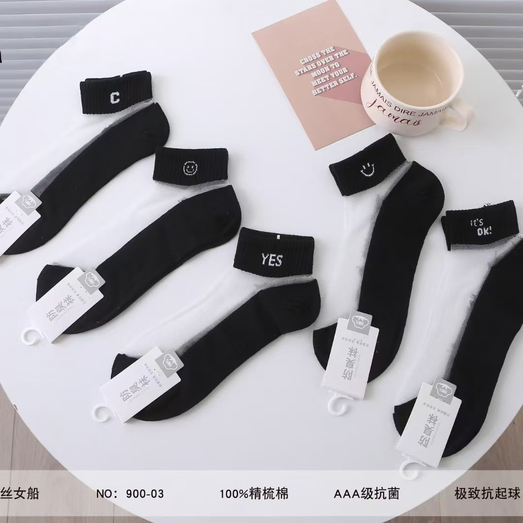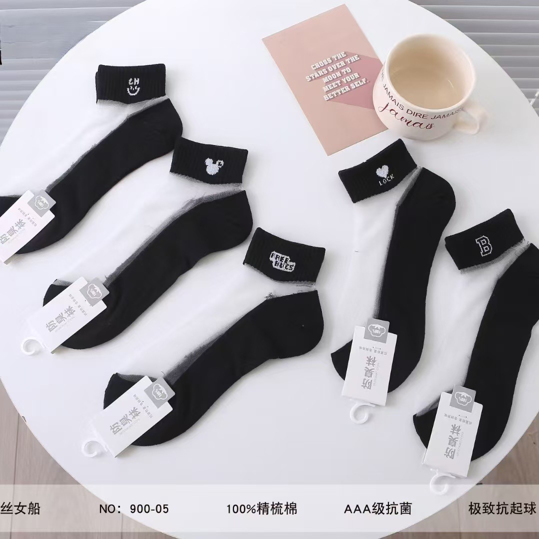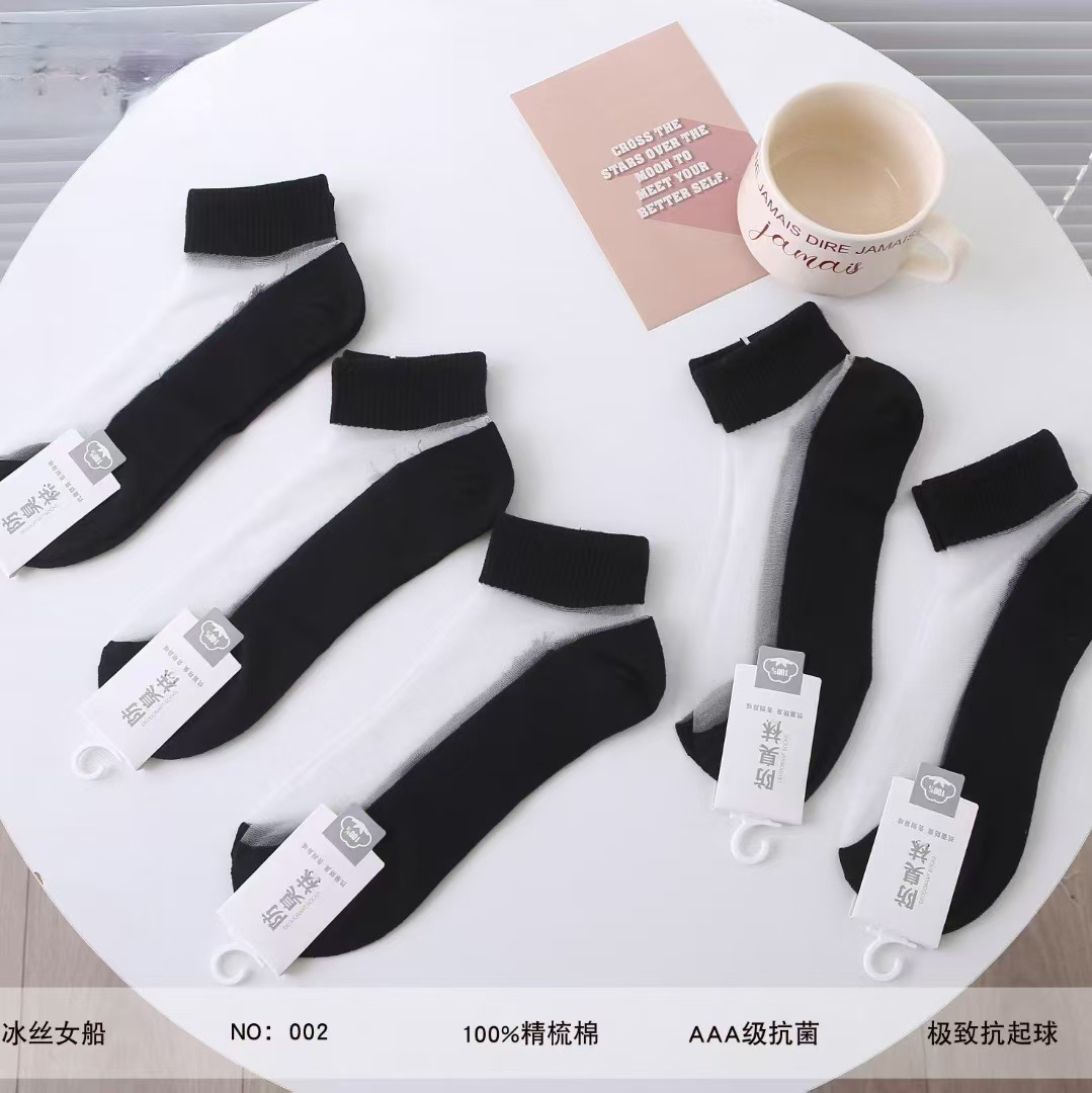 양말 여성 여름 얇은 크리스탈 실크 짧은 양말 학생 흑백 한국 스타일 일본식 유리 실크 짧은 양말 여성스토어 가기