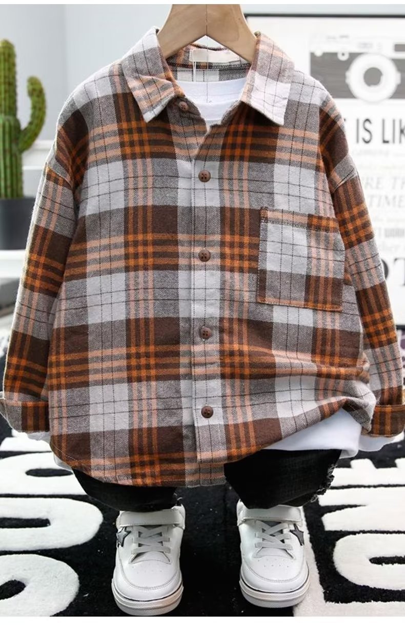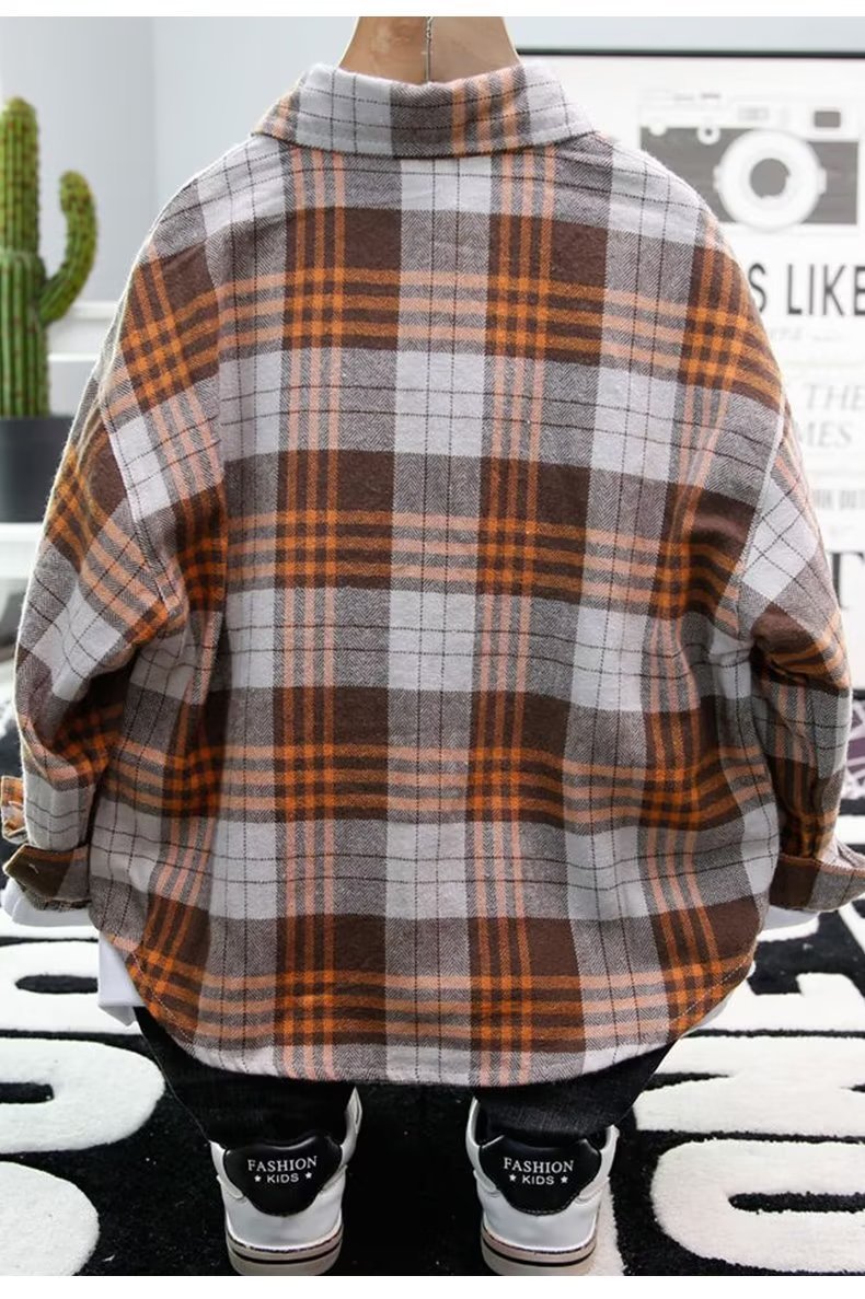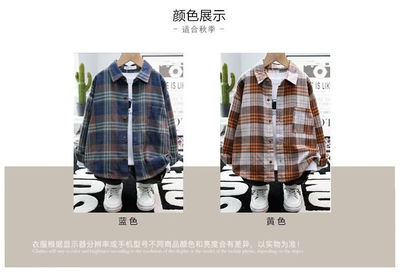 어린이 착용 소년 셔츠 긴팔 가을 2025 새로운 어린이 격자 무늬 셔츠 스타일릭 옷깃 셔츠 봄과 가을 추세스토어 가기