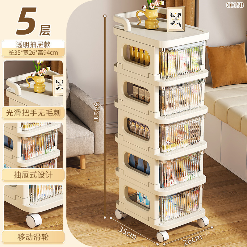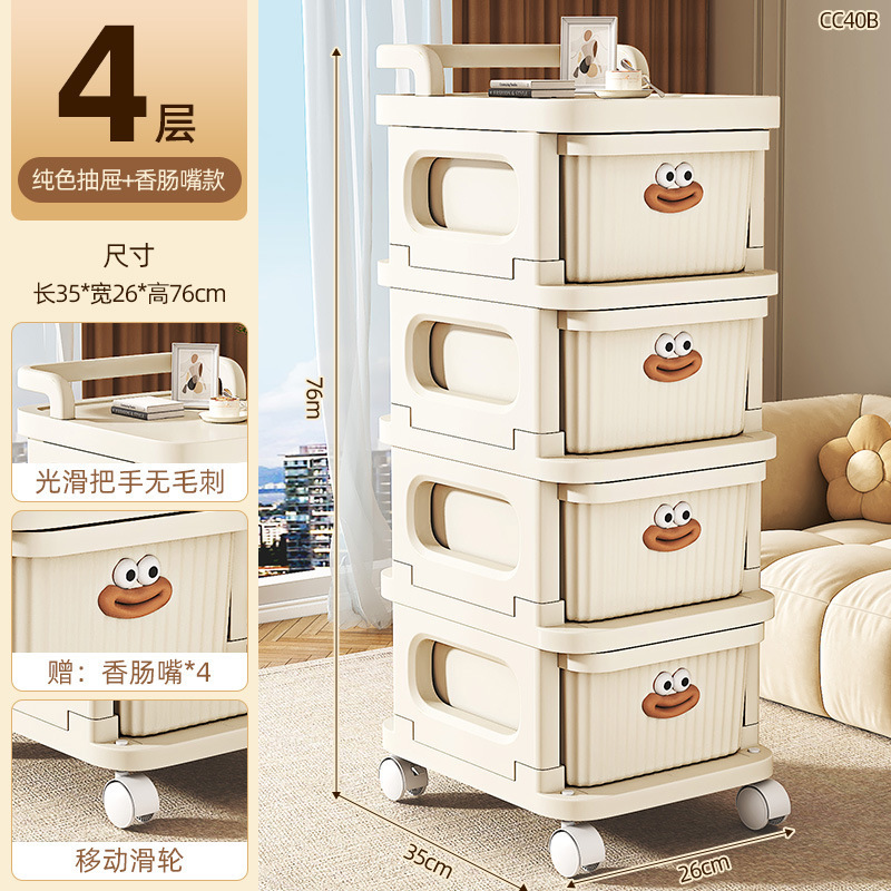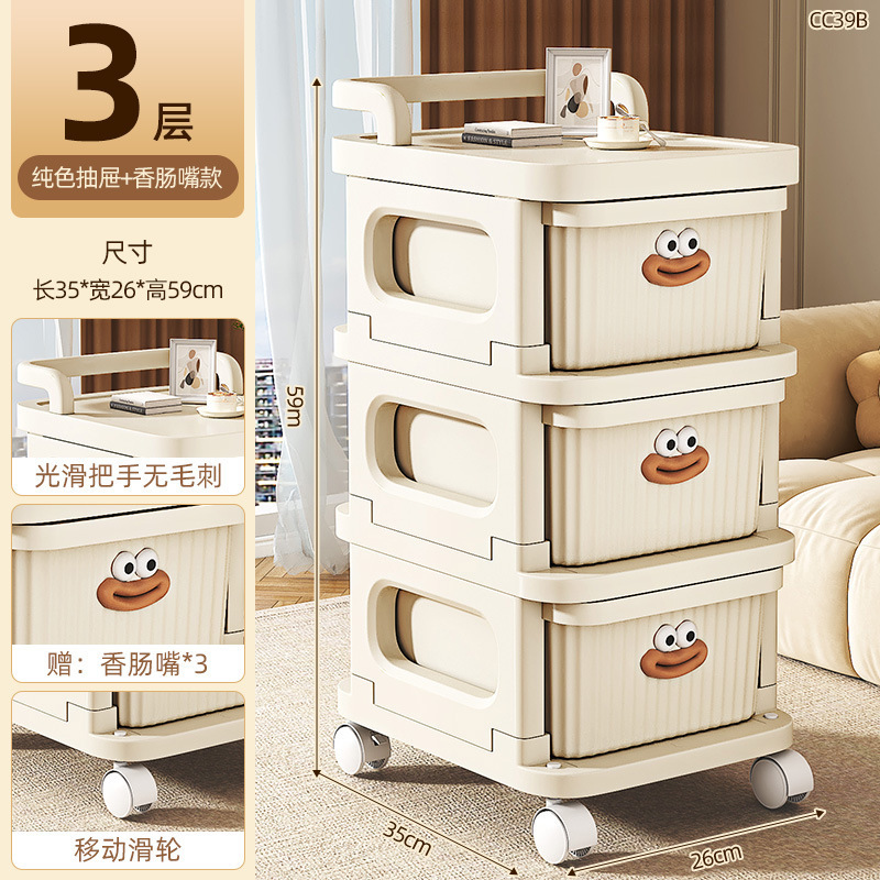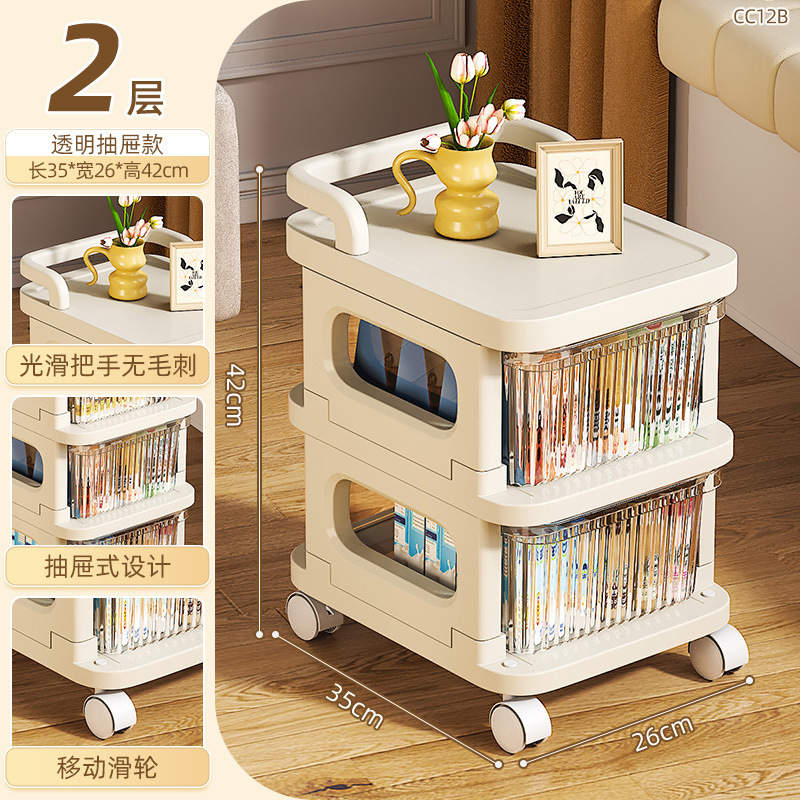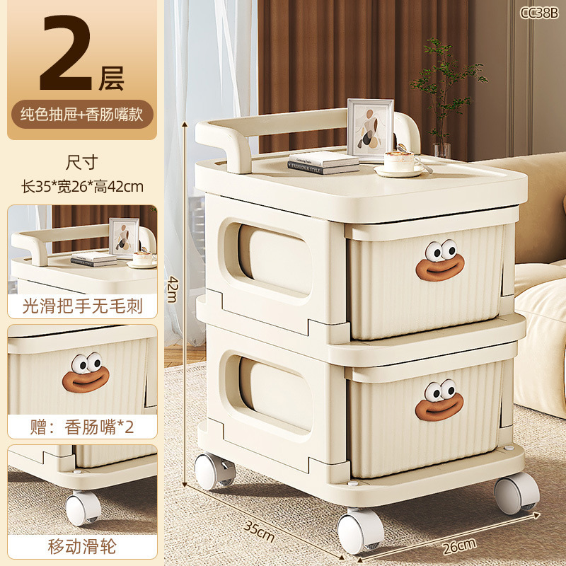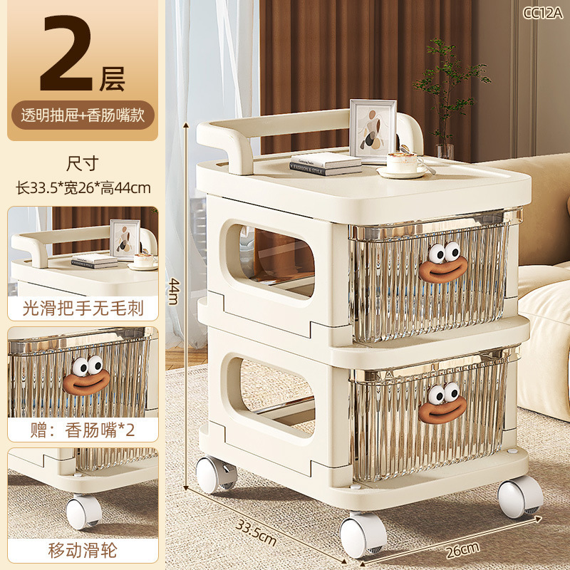 소형 카트형 수납장, 간식 및 화장품 보관용 다층 서랍형 바퀴 달린 침실 침대 옆 수납장