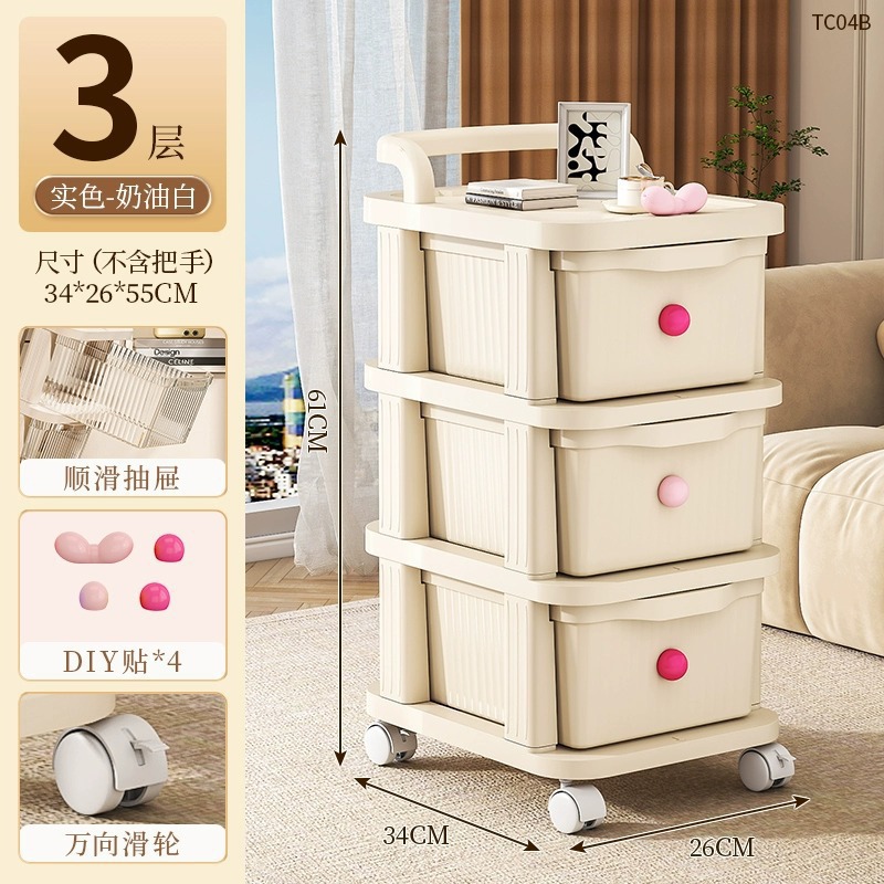• 핑크 DIY 크림 스타일 트롤리 3겹 크림 화이트 서랍