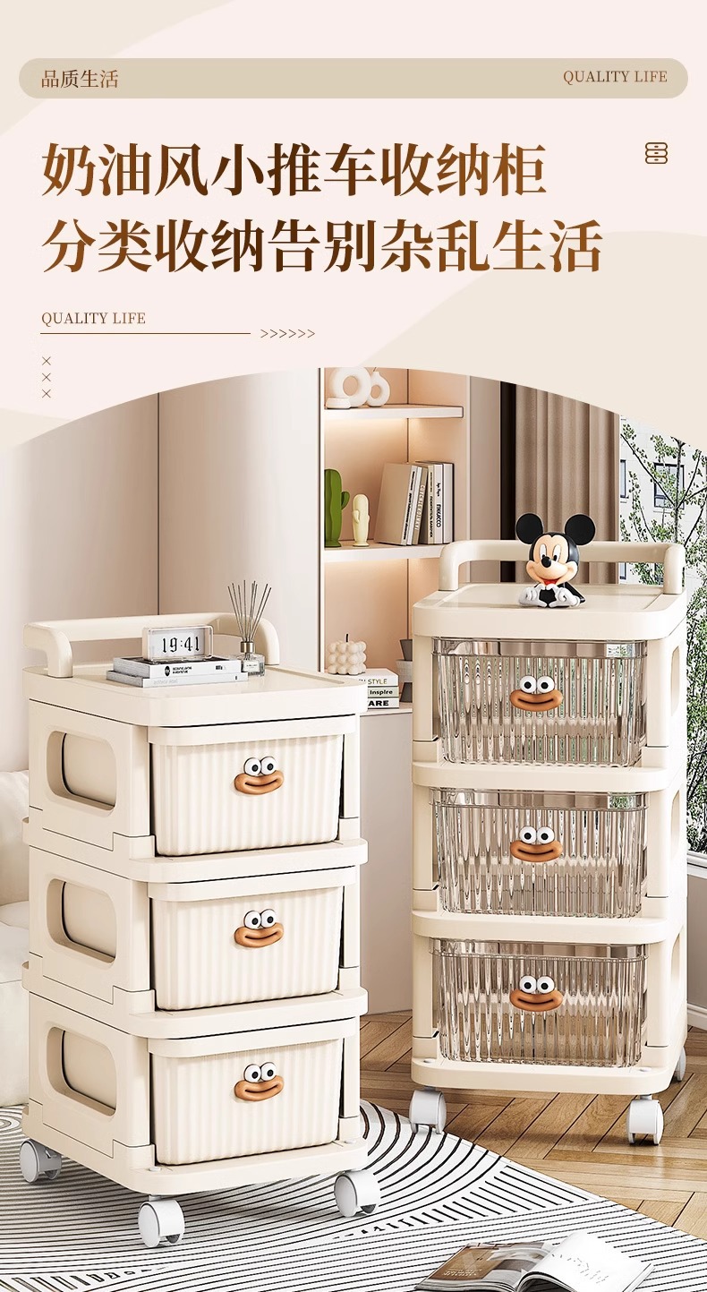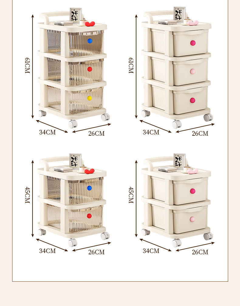 • 다채로운 DIY 크림 스타일 트롤리 3겹 투명 서랍