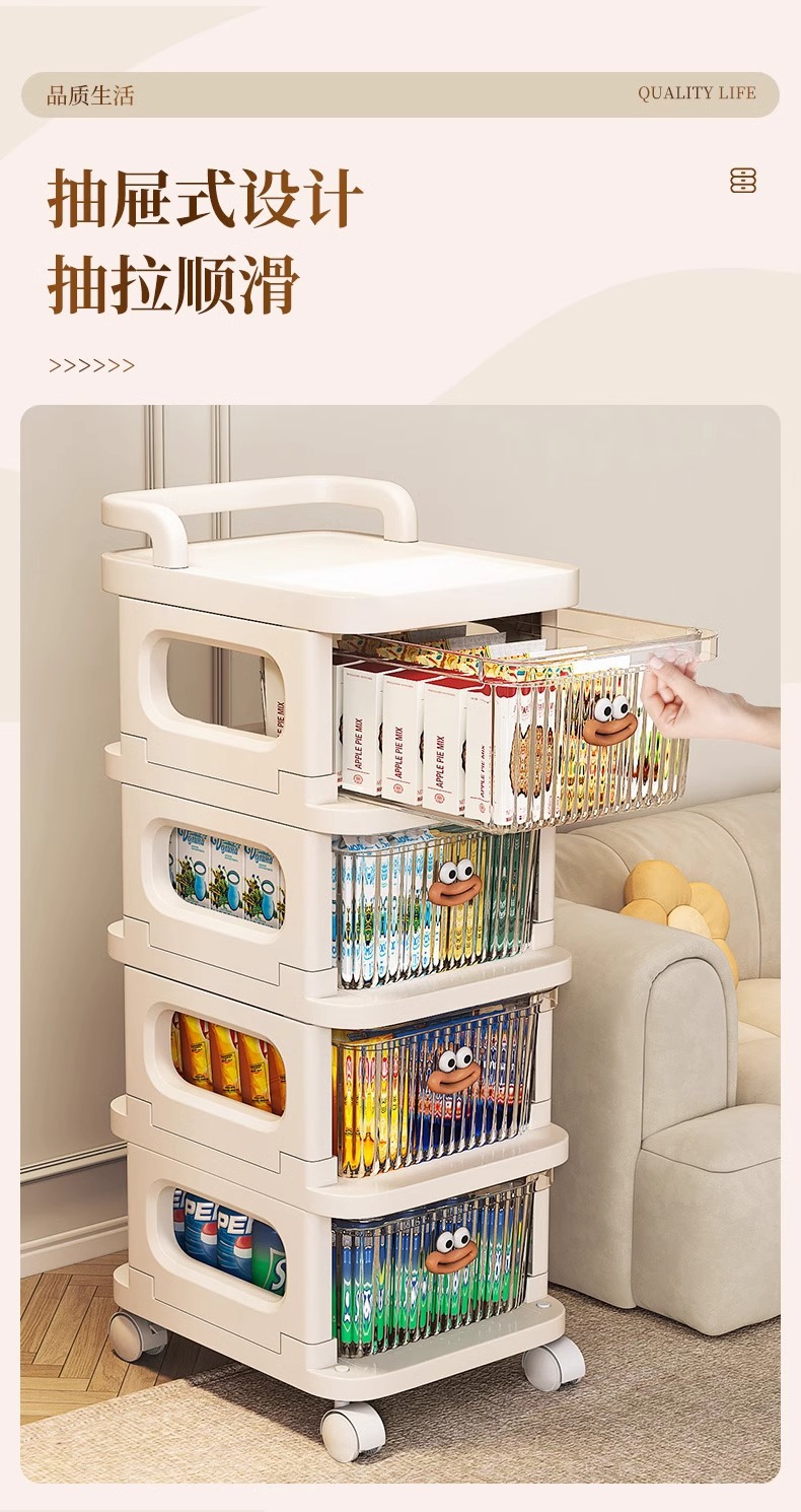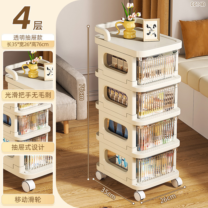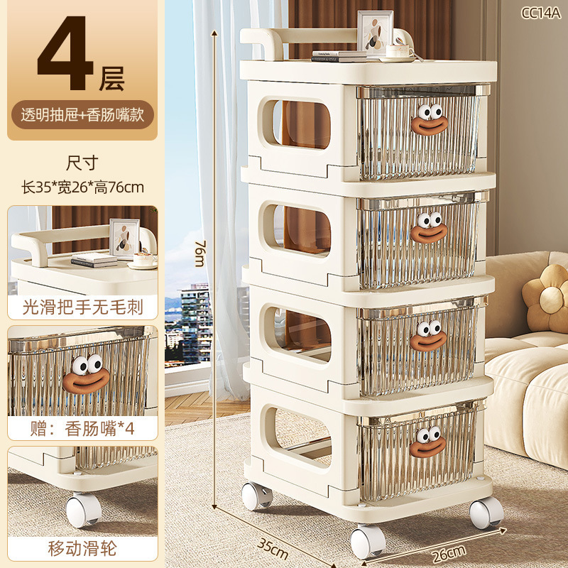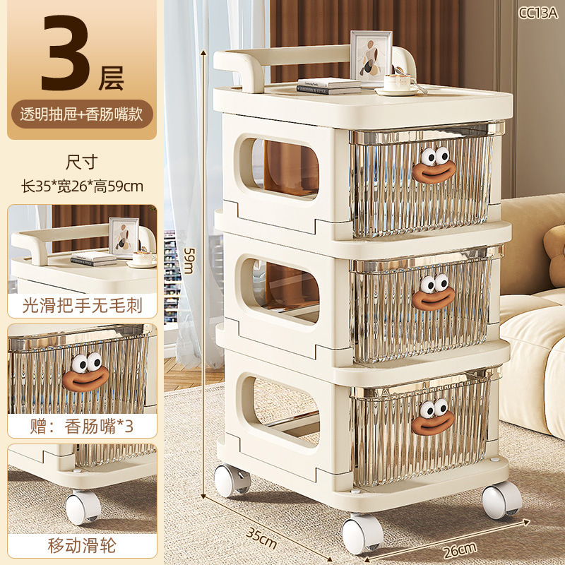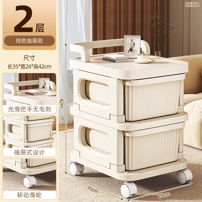소형 카트형 수납장, 간식 및 화장품 보관용 다층 서랍형 바퀴 달린 침실 침대 옆 수납장스토어 가기