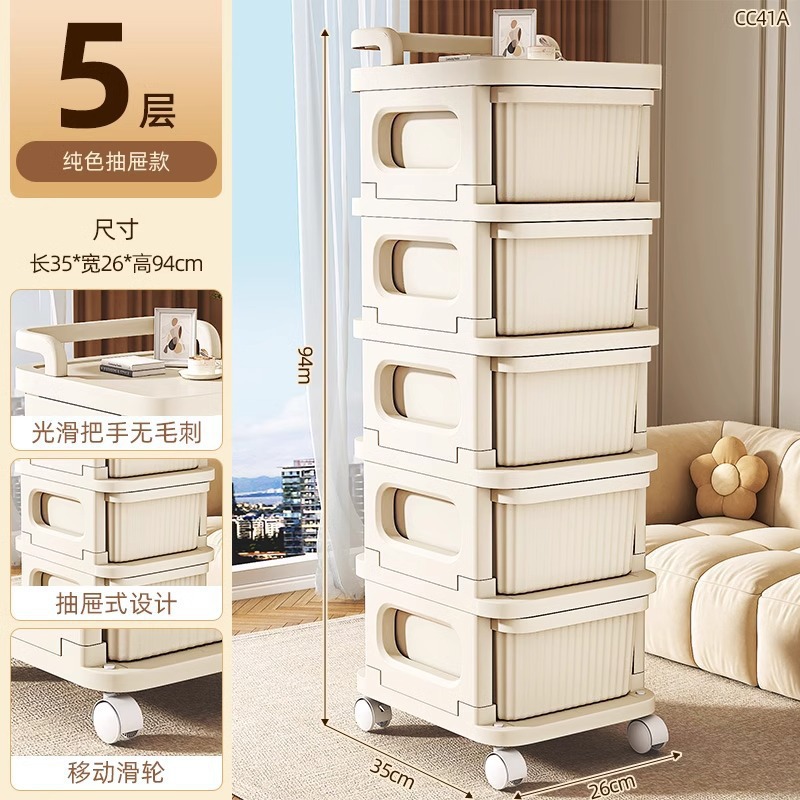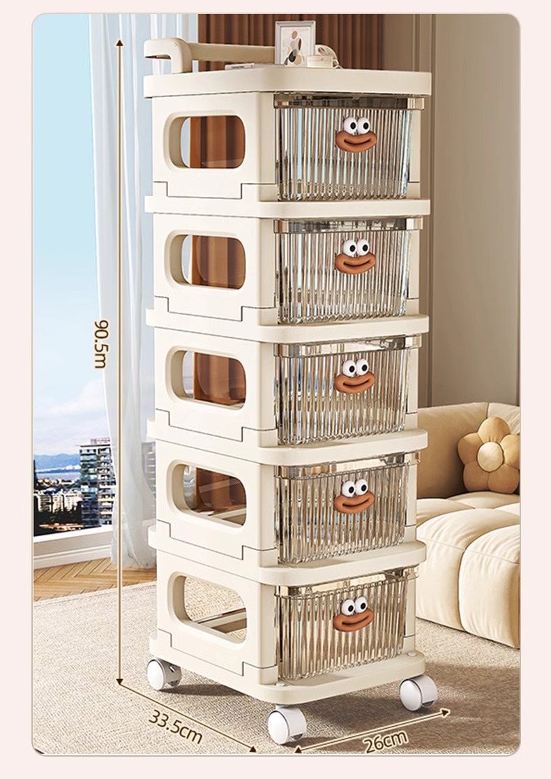 • 다채로운 DIY 크림 스타일 트롤리 5겹 투명 서랍