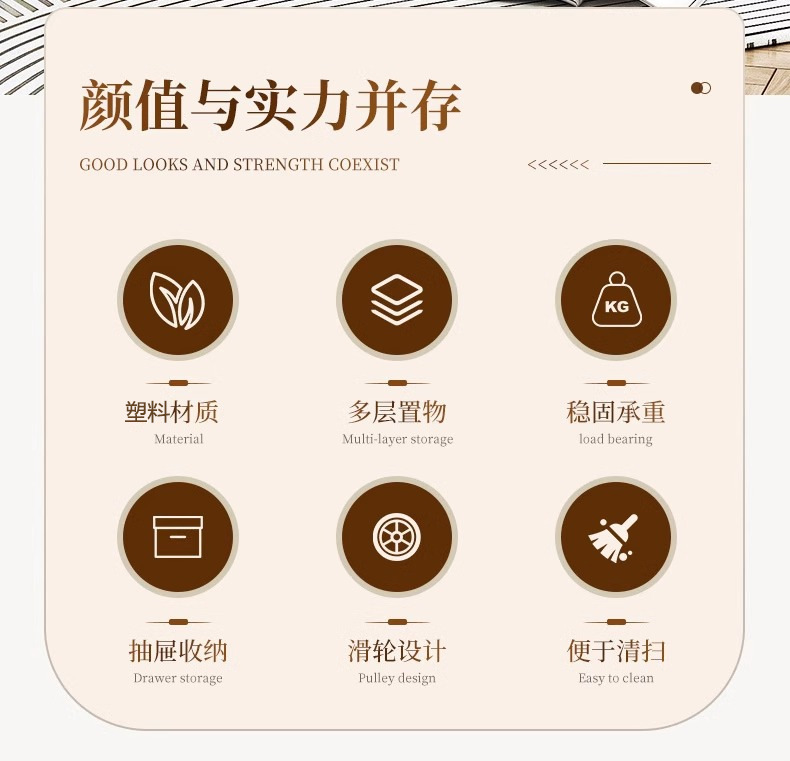 • 핑크 DIY 크림 스타일 트롤리 2층 - 크림 화이트 서랍