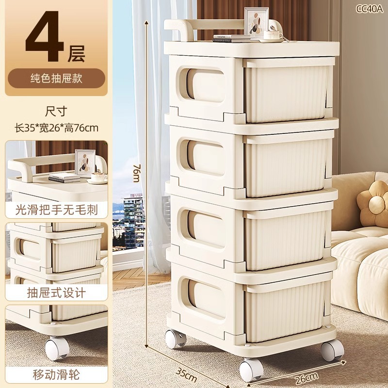 • 핑크 DIY 크림 스타일 트롤리 4겹 - 크림 화이트 서랍