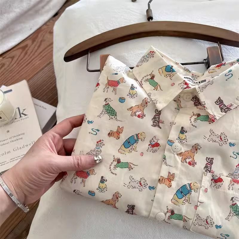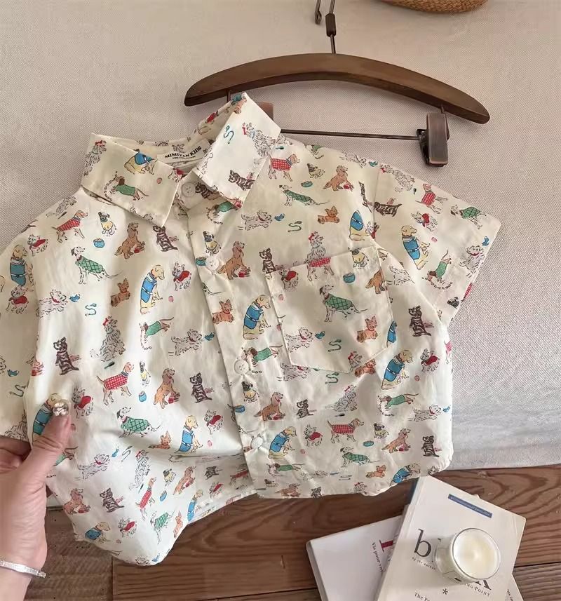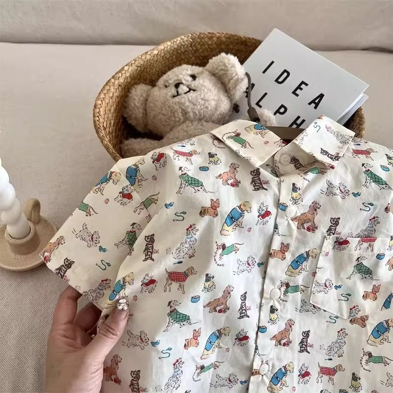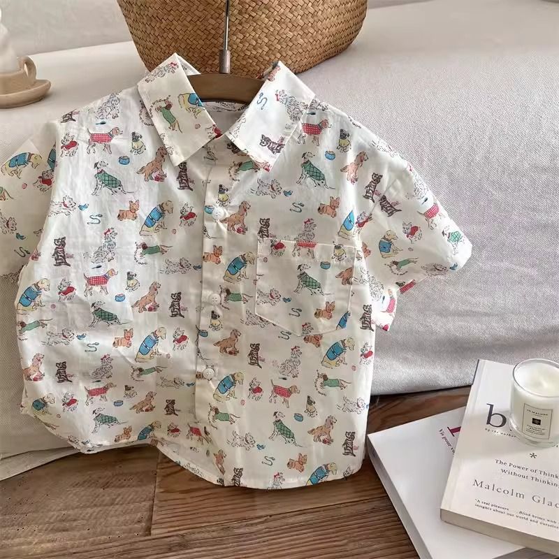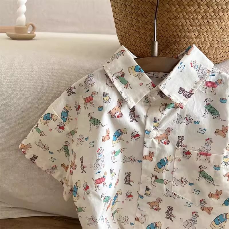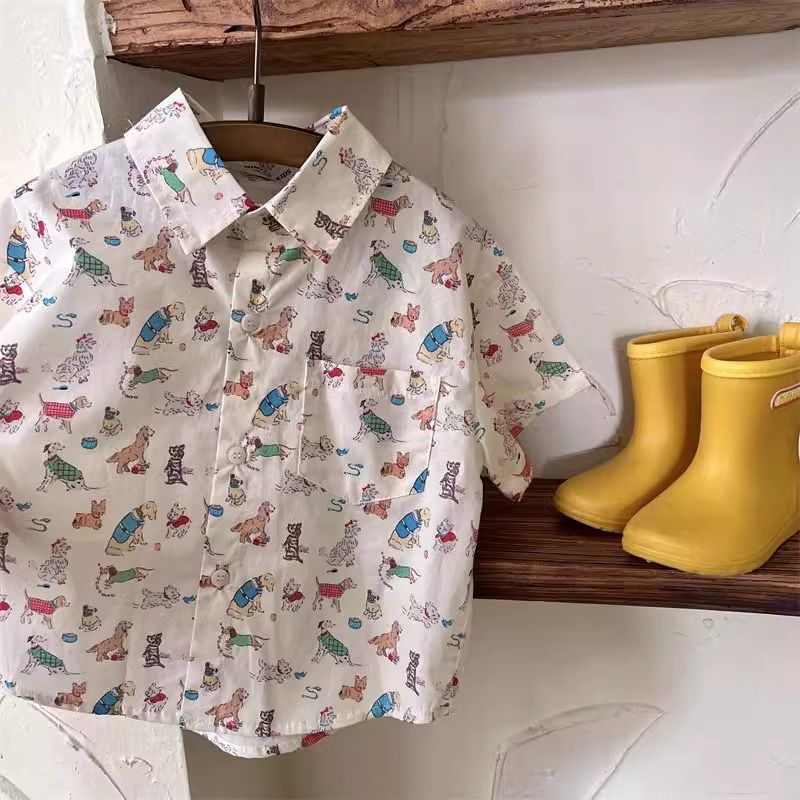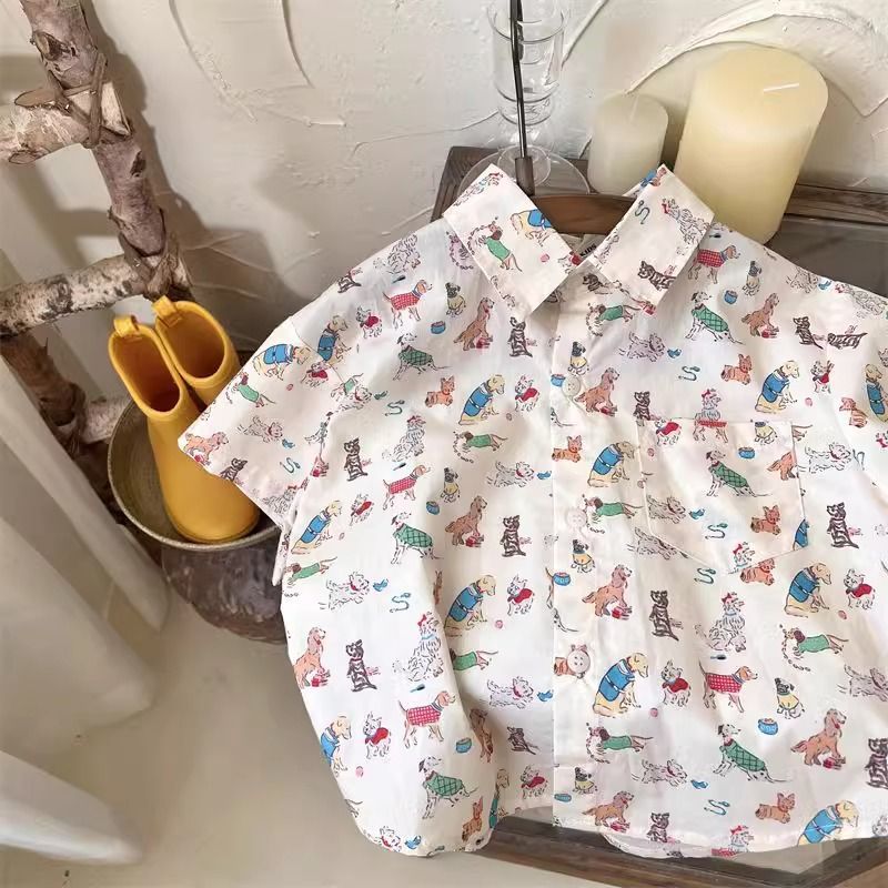 [4 면 총알 인쇄] 어린이 셔츠 반팔 여름 어린이 풀 프린트 탑 아기 만화 캐주얼 셔츠스토어 가기