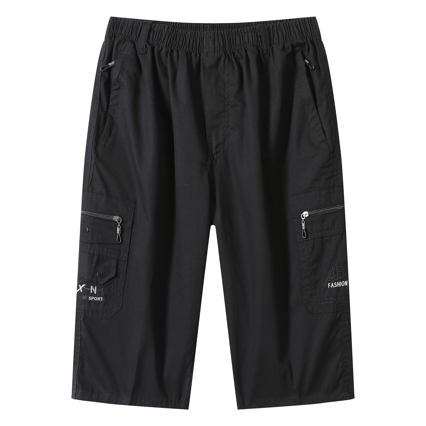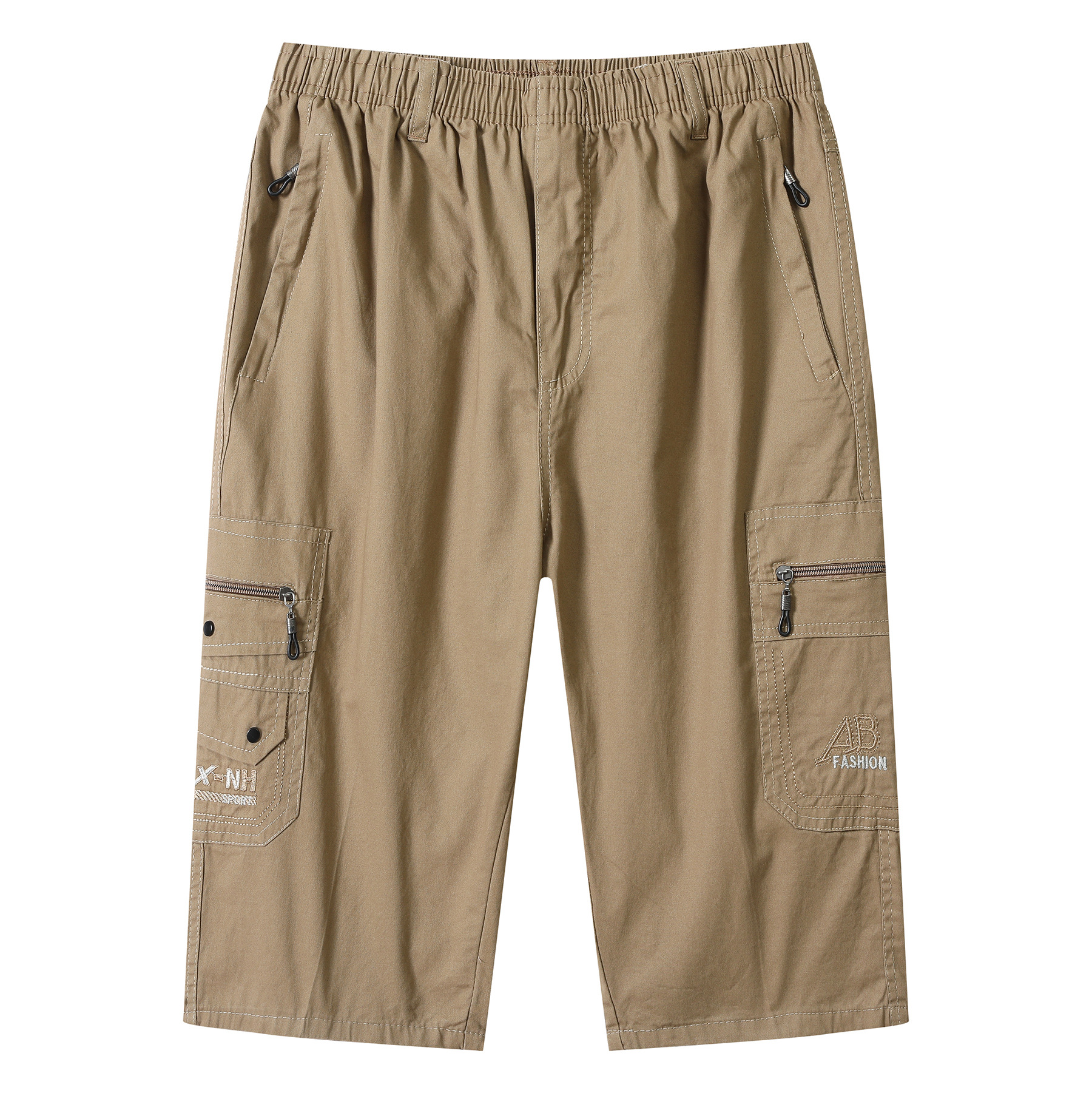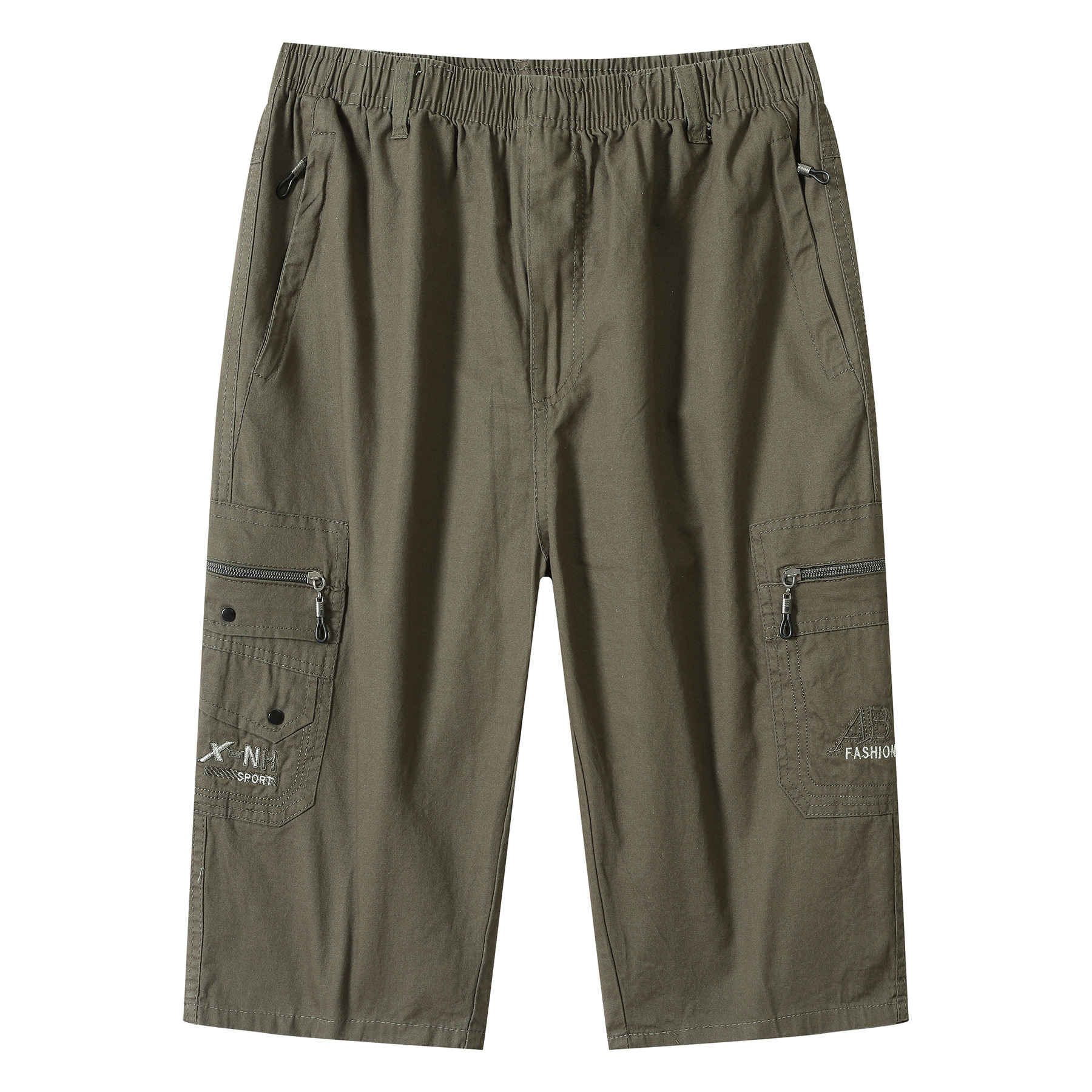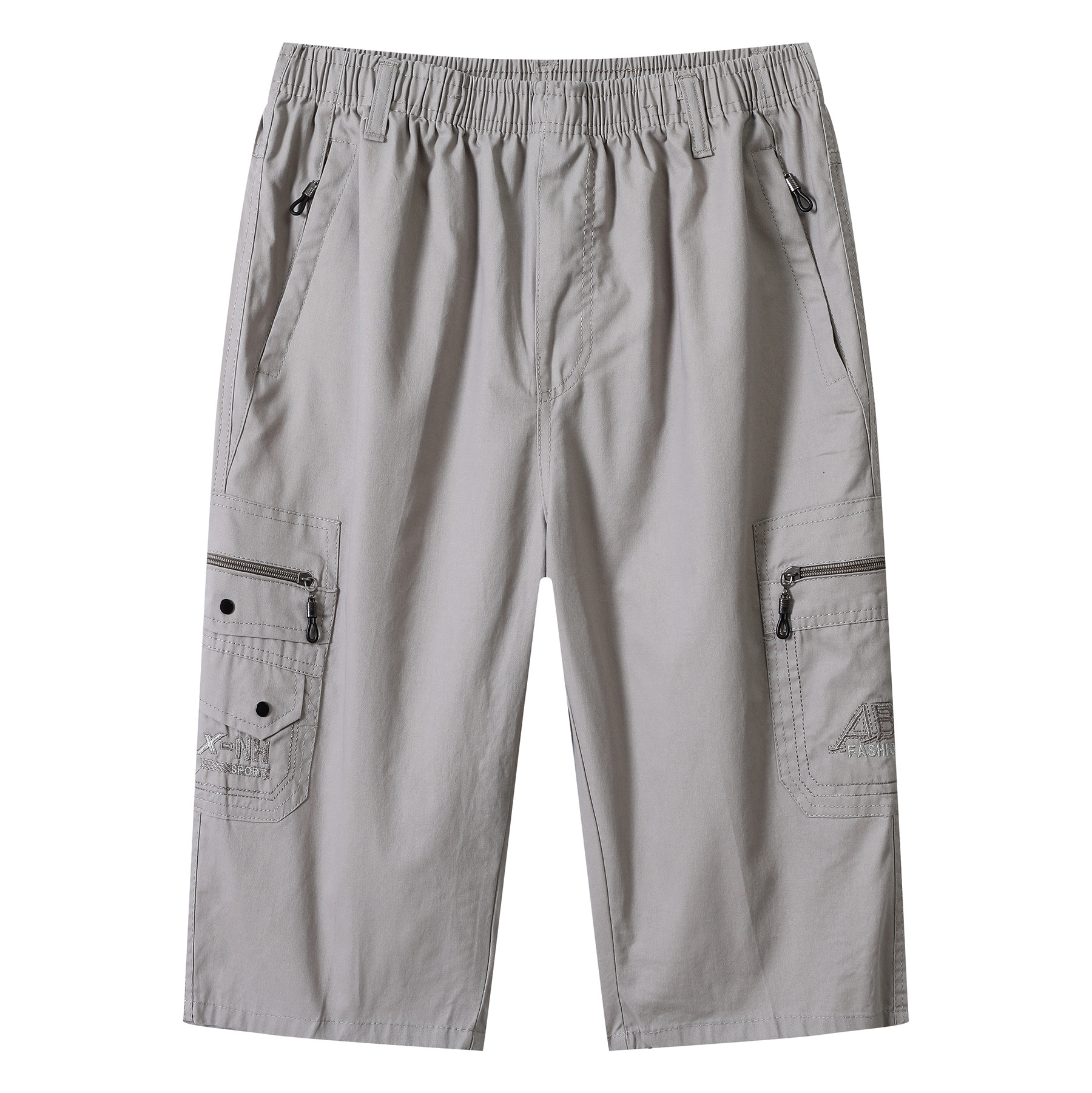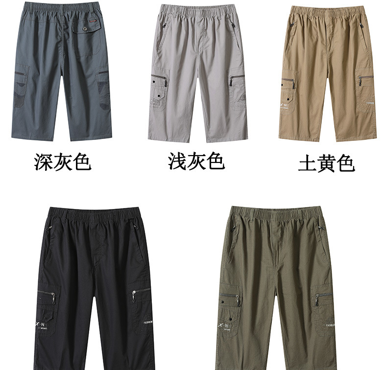 여름 남성 카프리 바지 얇은 느슨한 작업복 반바지 중년 및 노인 아빠는 순수한면 스포츠 캐주얼 바지를 입습니다.스토어 가기