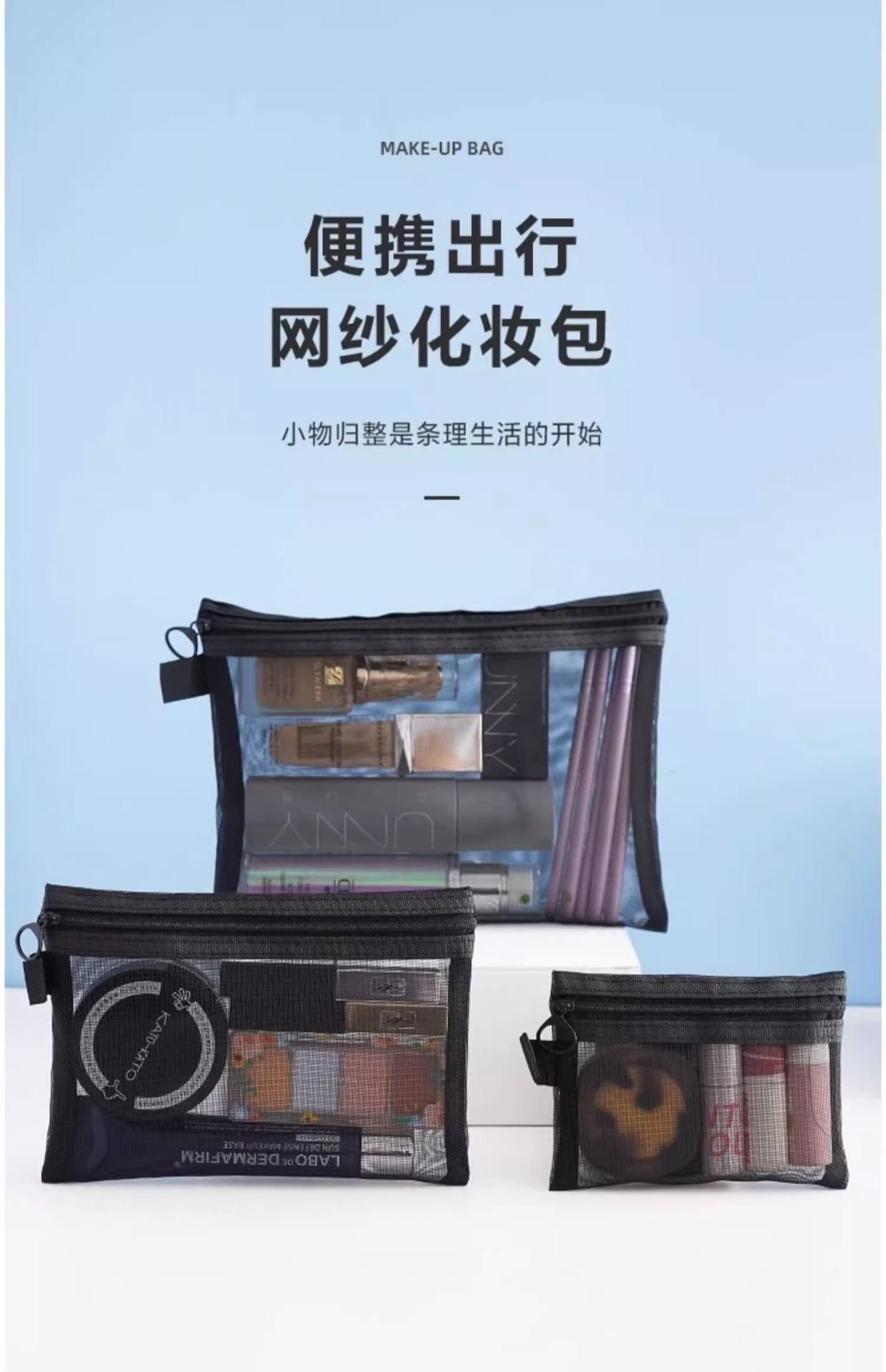 화장품 가방 여성 휴대용 2025 새로운 슈퍼 인기있는 Ins 스타일 메쉬 스타일 내부 가방 화장품 수납 가방스토어 가기