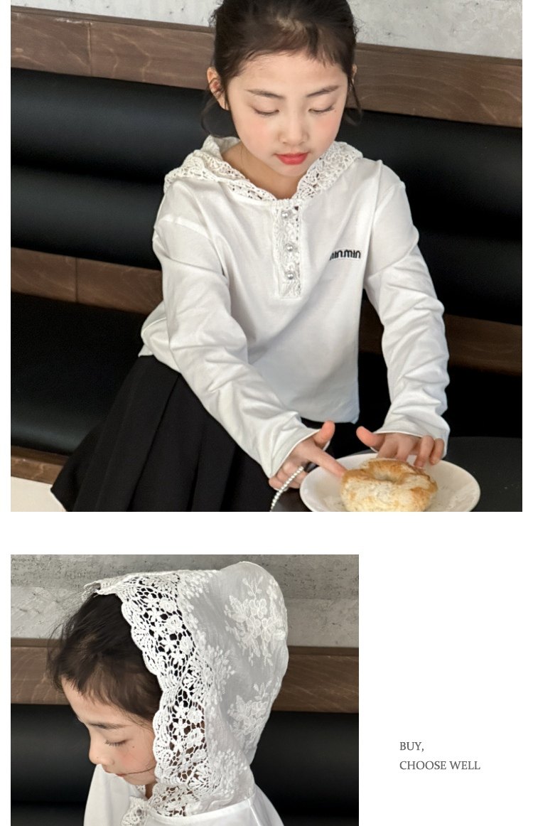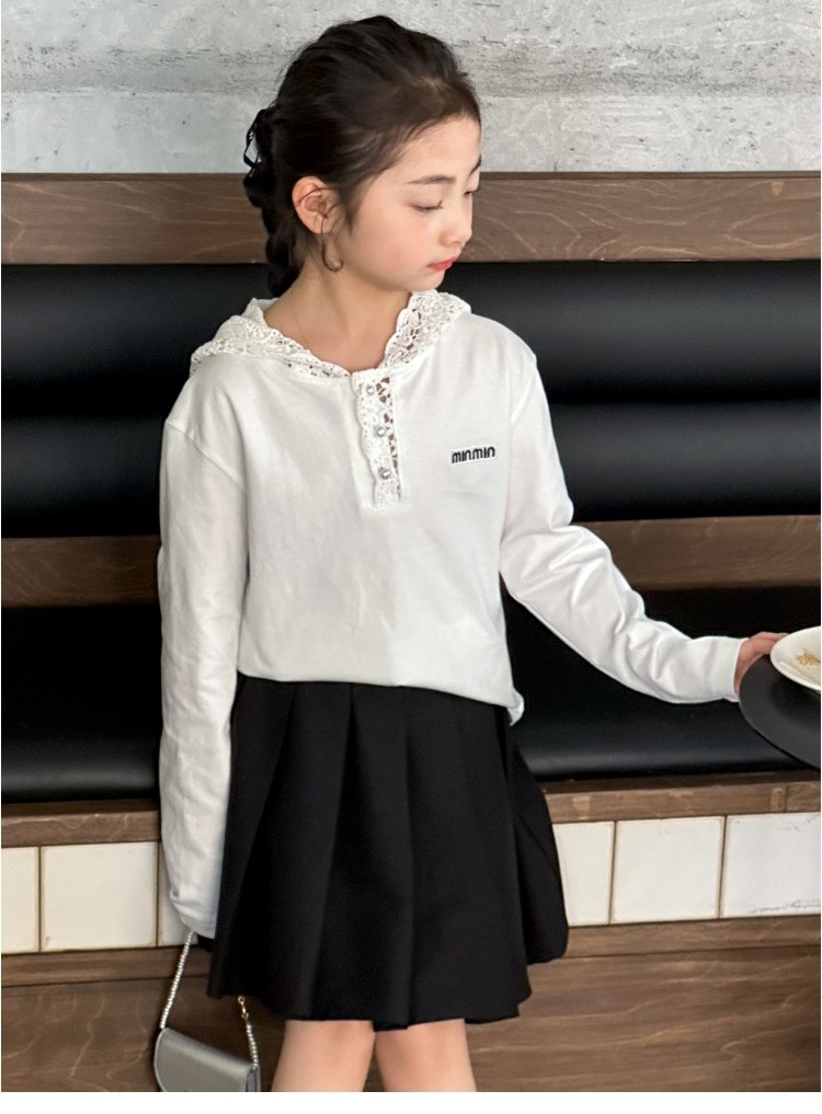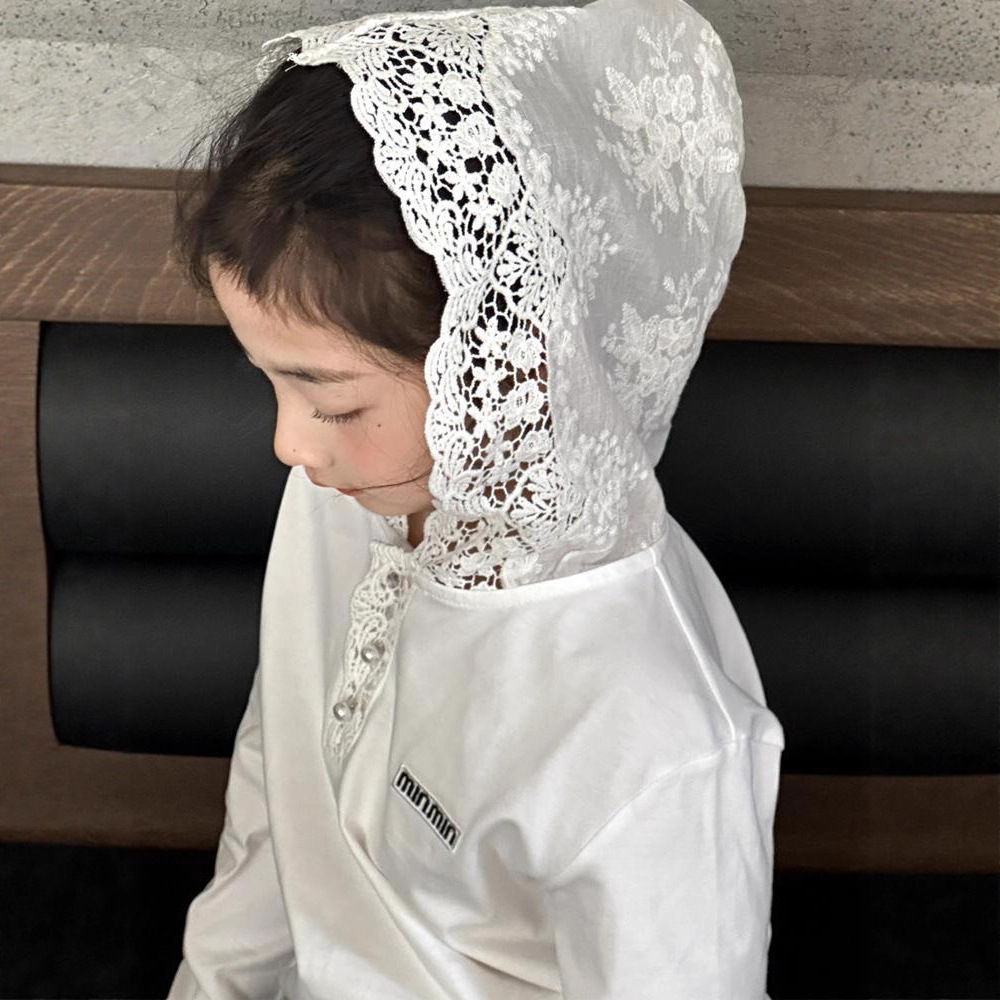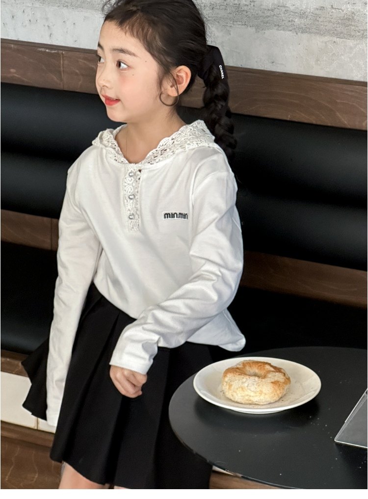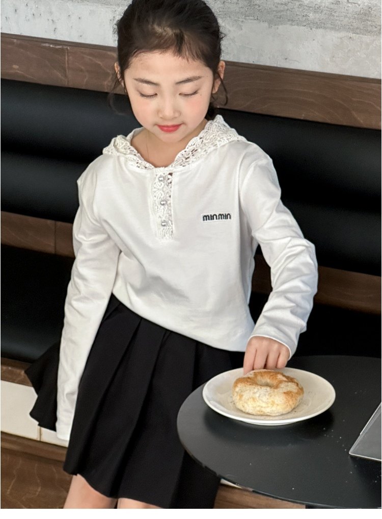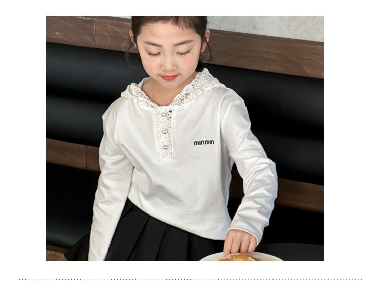 소녀 긴팔 티셔츠 어린이 봄 2025 새로운 큰 어린이 옷 소녀 세련된 패션 레이스 후드 탑스토어 가기