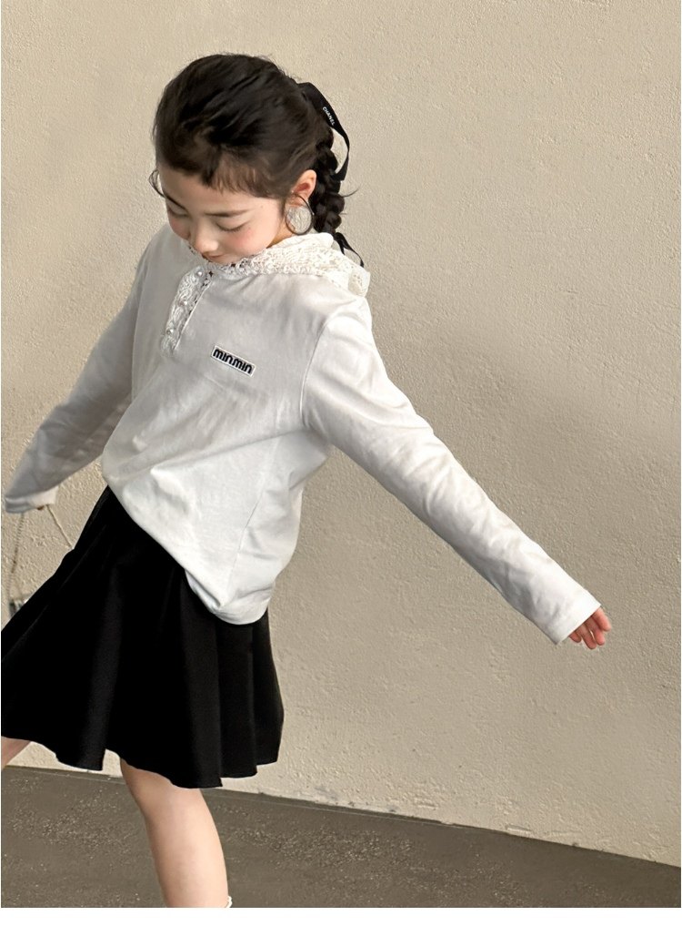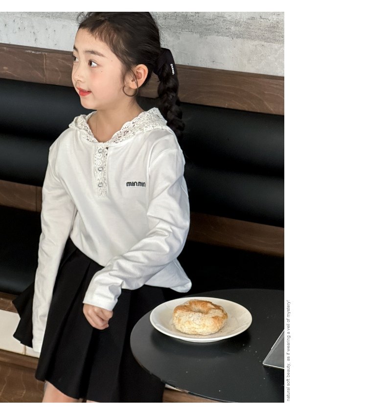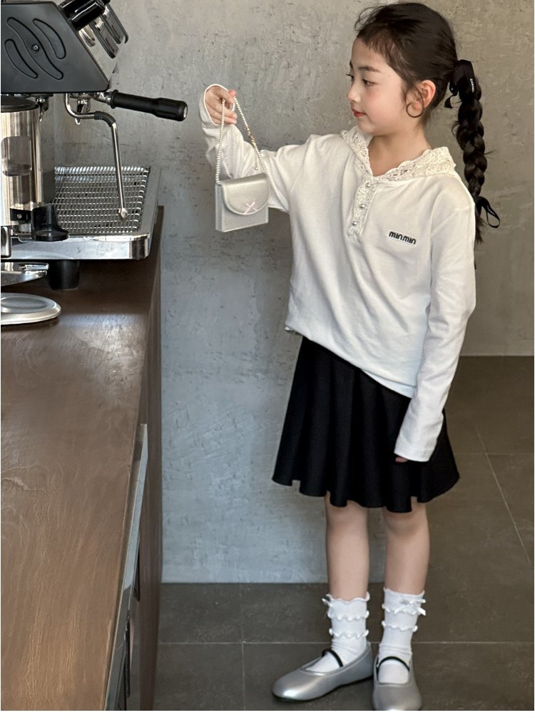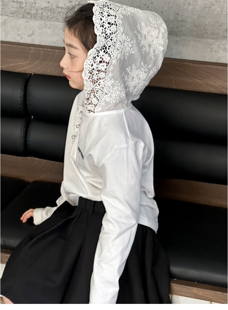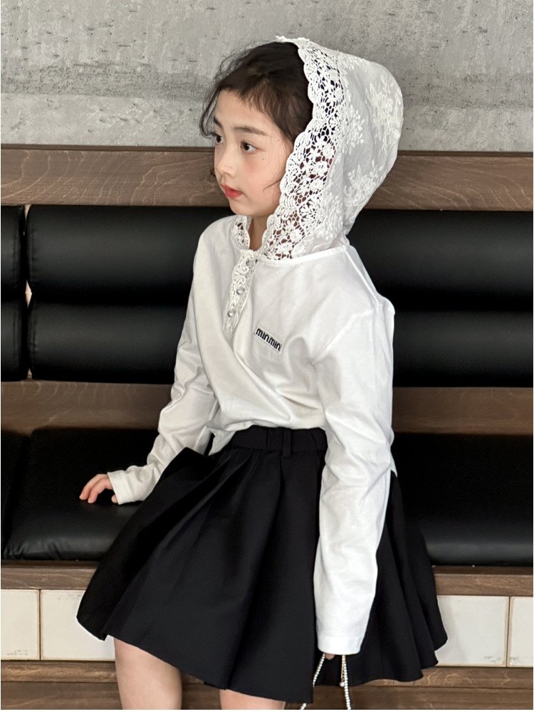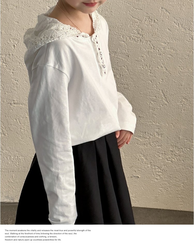 소녀 긴팔 티셔츠 어린이 봄 2025 새로운 큰 어린이 옷 소녀 세련된 패션 레이스 후드 탑스토어 가기