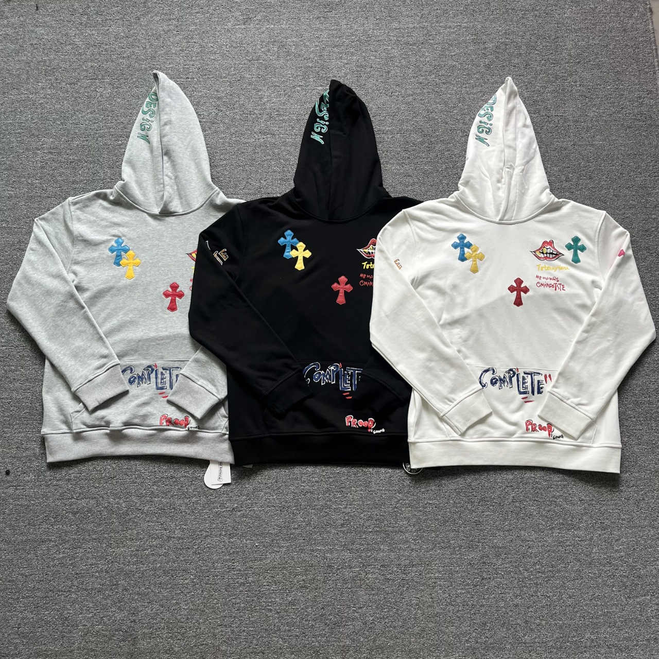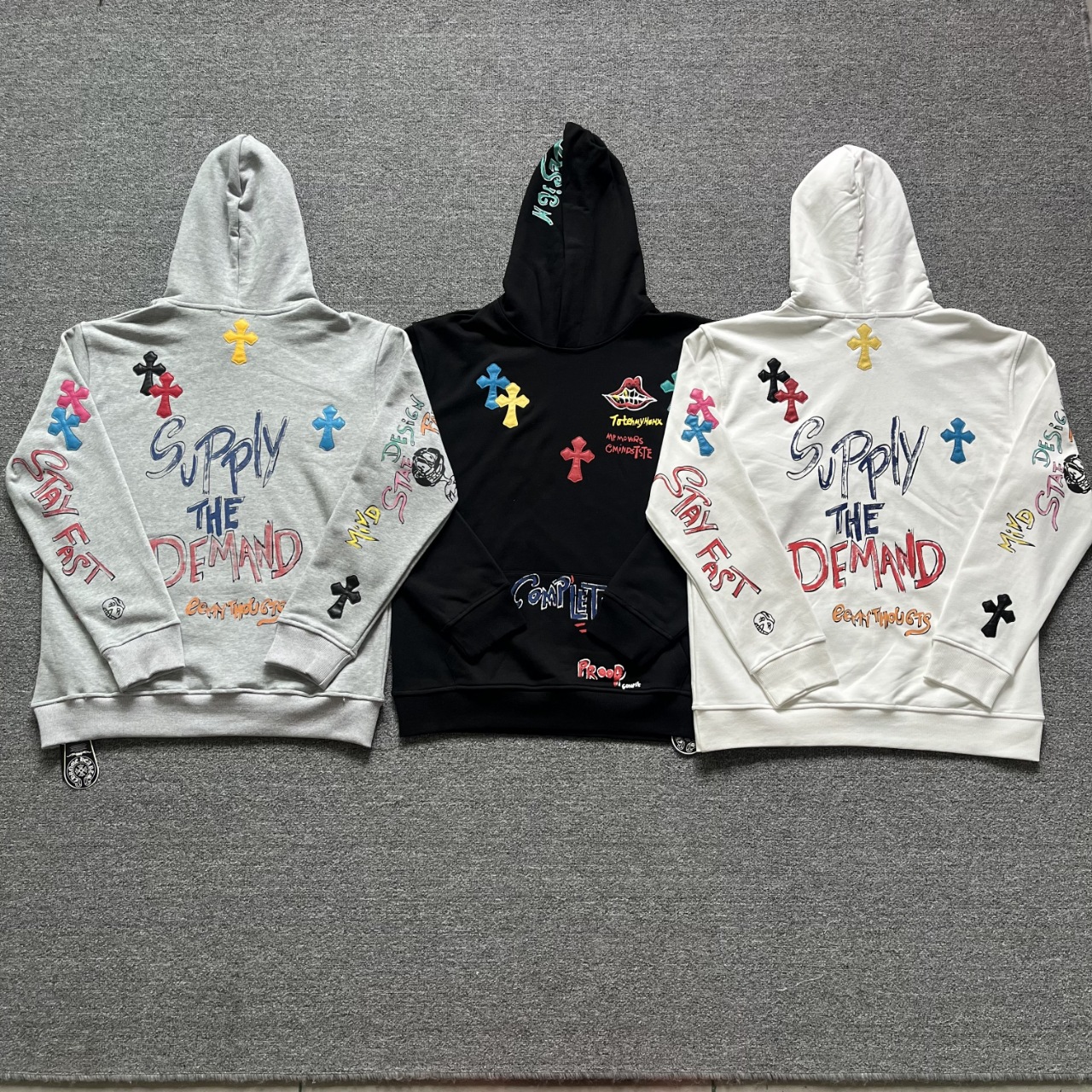 24ss 새로운 Chrome Heart 크로스 자수 고품질 후드 티셔츠 다용도 크로스보더