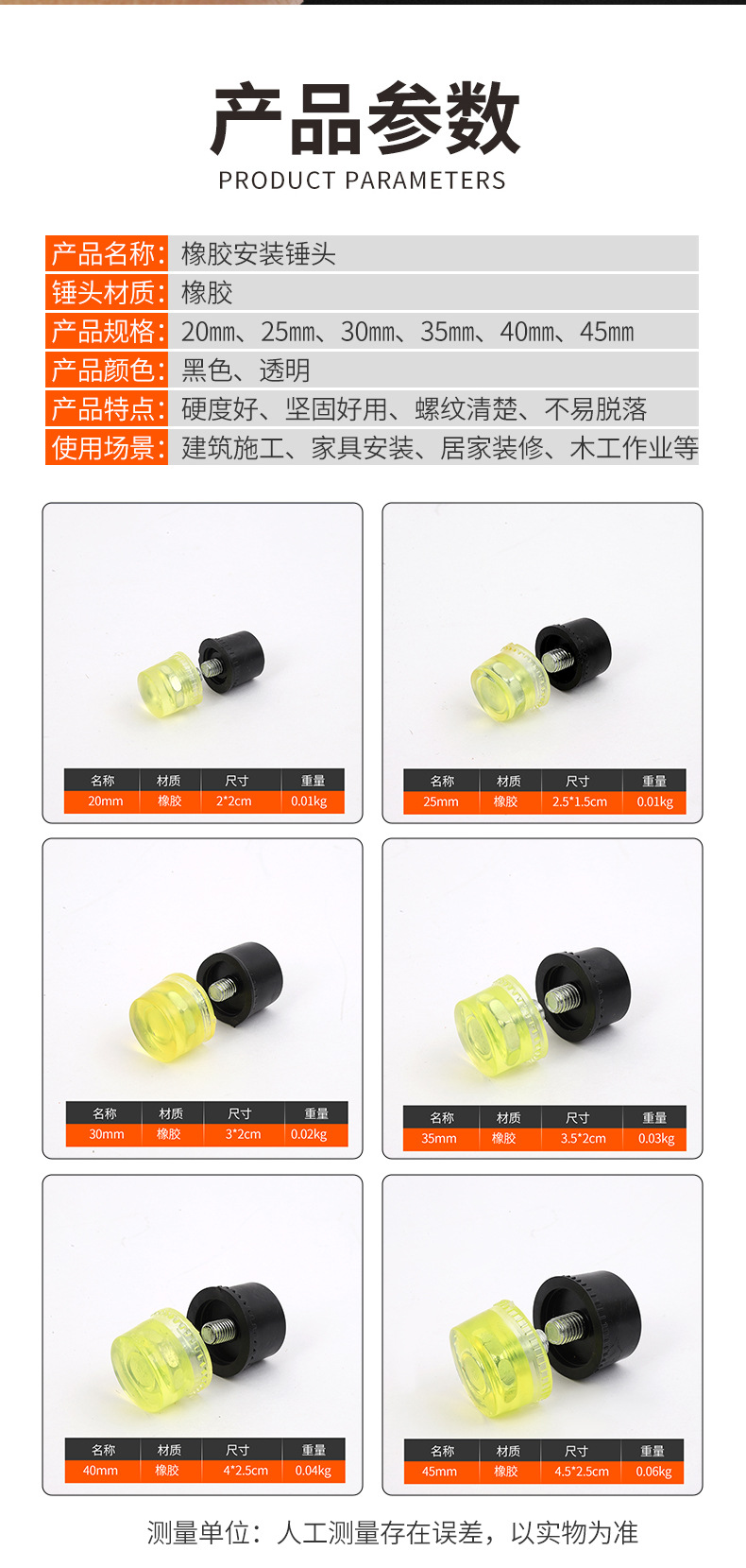 고무 및 플라스틱 설치 망치 홈 장식 타일 바닥 고무 액세서리 다기능 구타 내마모성 미끄럼 방지 설치 해머 헤드