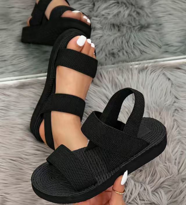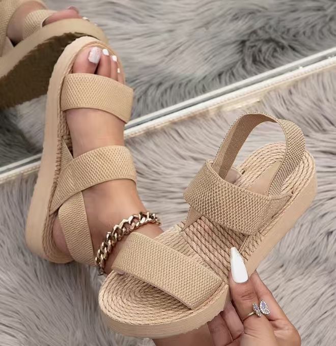 국경 간 대외 무역 2024 새로운 여름 모방 밀짚 웨지 샌들 여성 패션 캐주얼 두꺼운 밑창 비치 로마 신발스토어 가기