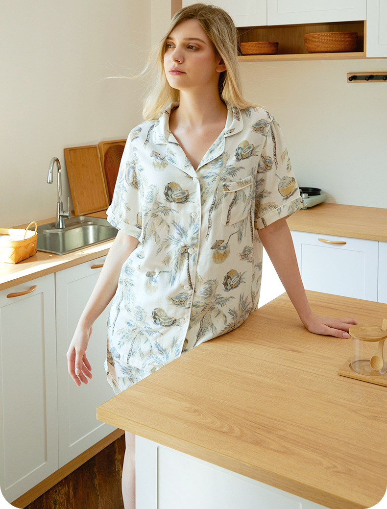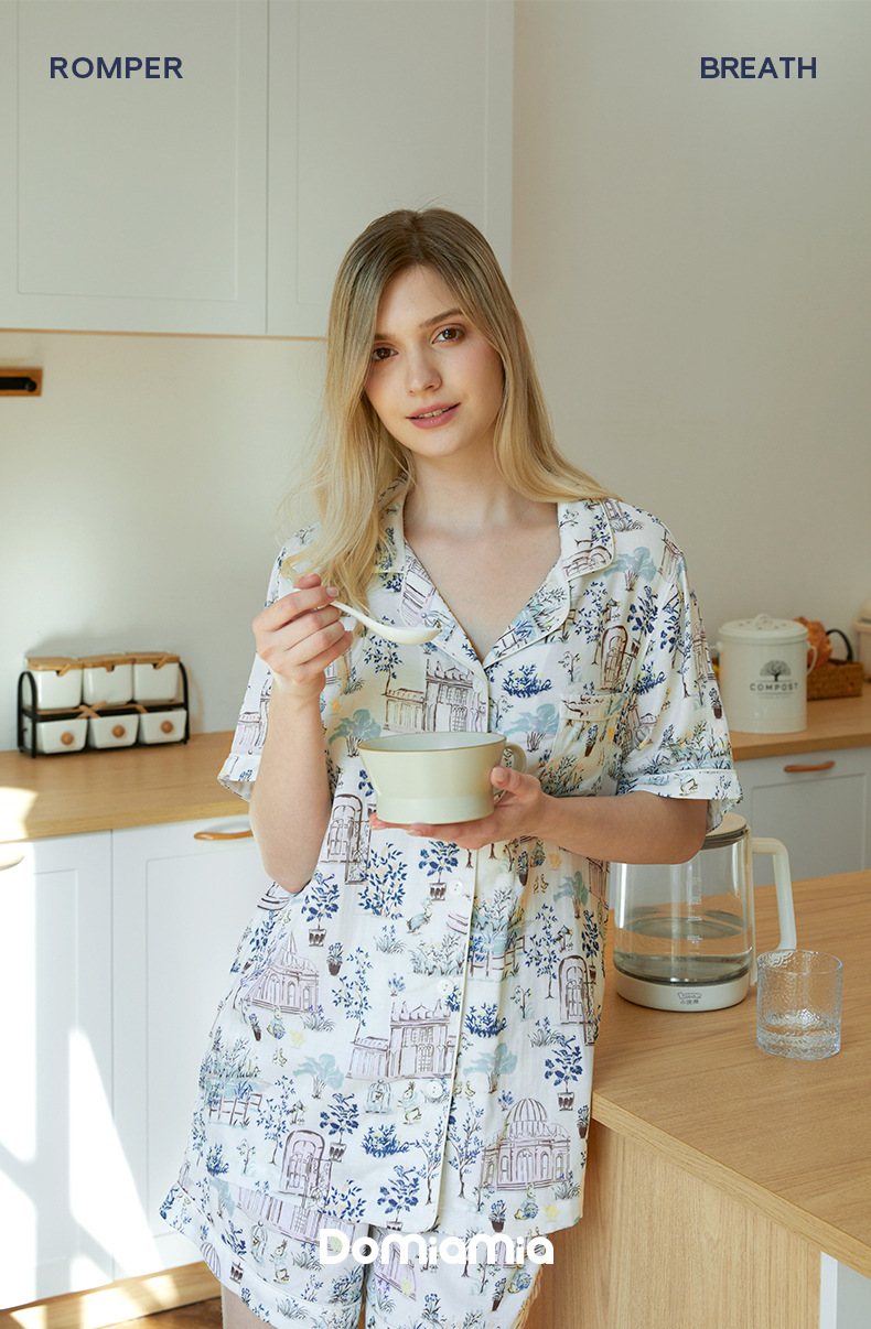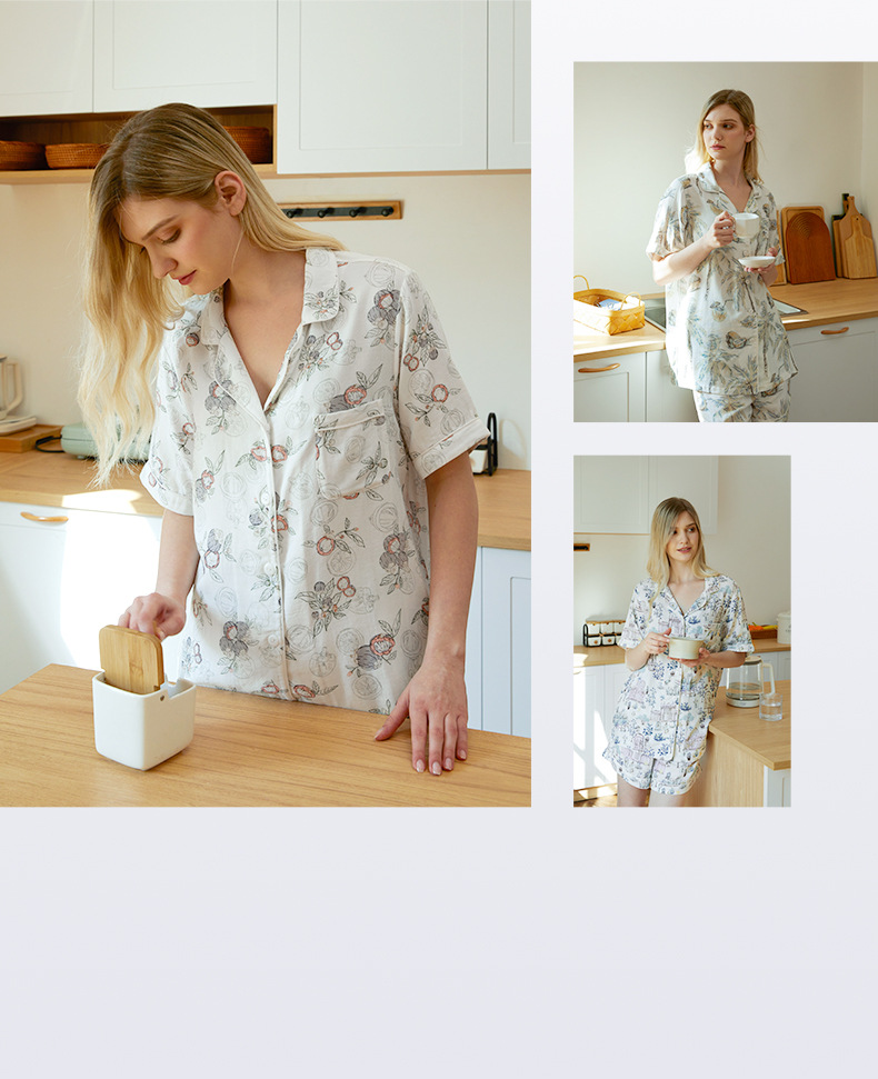 • 성인용 거즈 반팔 반바지 세트 - Shuo Yue Huazhu