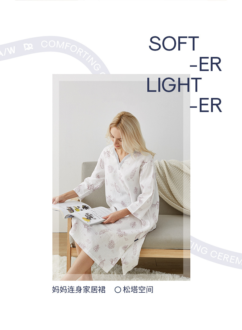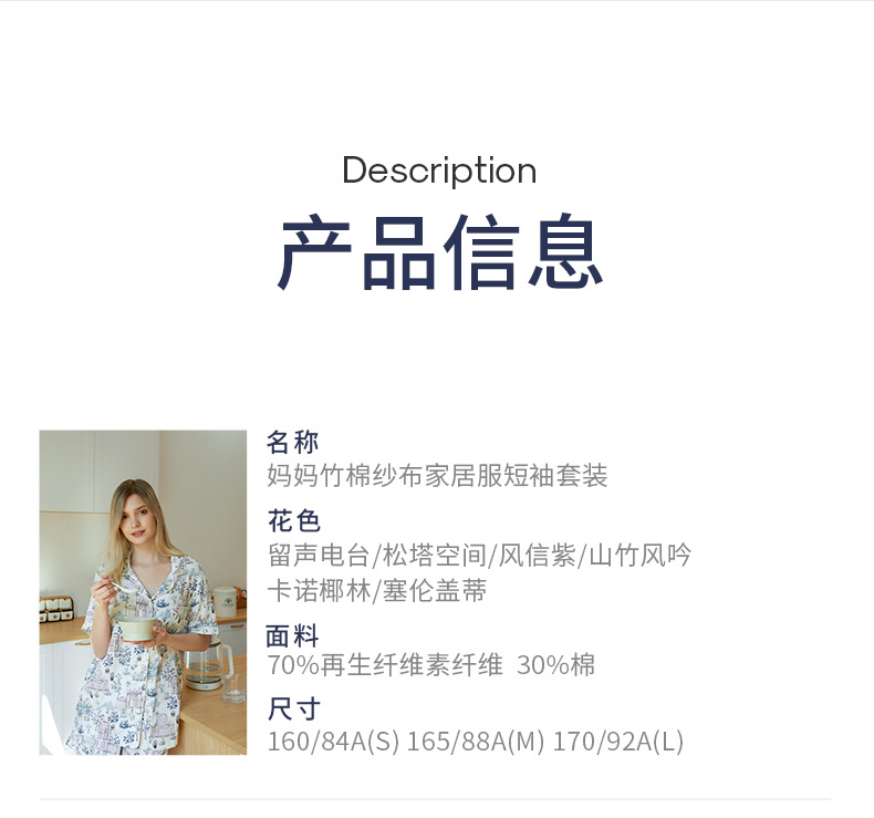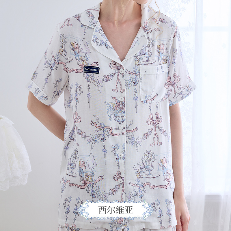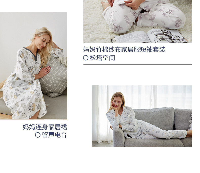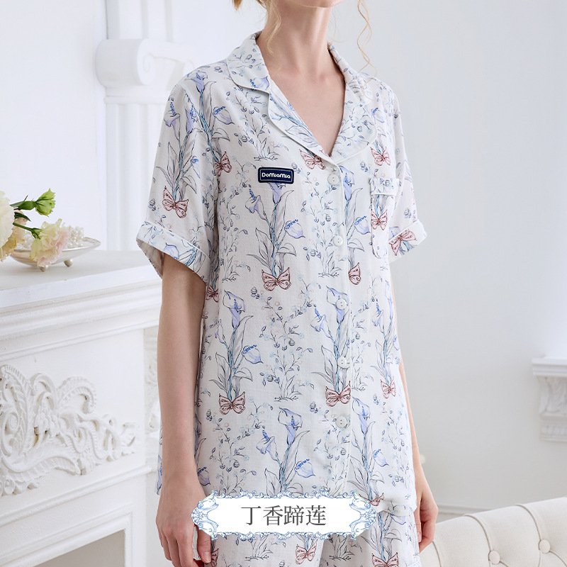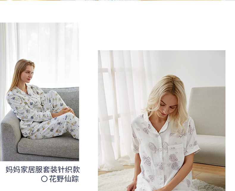Domiamia Yuezi 반팔 봄 및 여름 임산부 홈 의류 대나무 면 거즈 캐주얼 파자마 반팔 반바지 세트스토어 가기