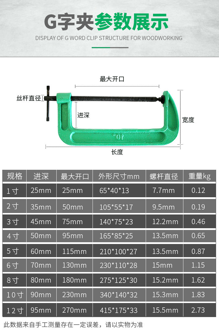 공장 연성 목공 클램프 수동 두꺼운 G 클립 강한 클램프 G-클램프 무거운 목공 클램프 도매스토어 가기