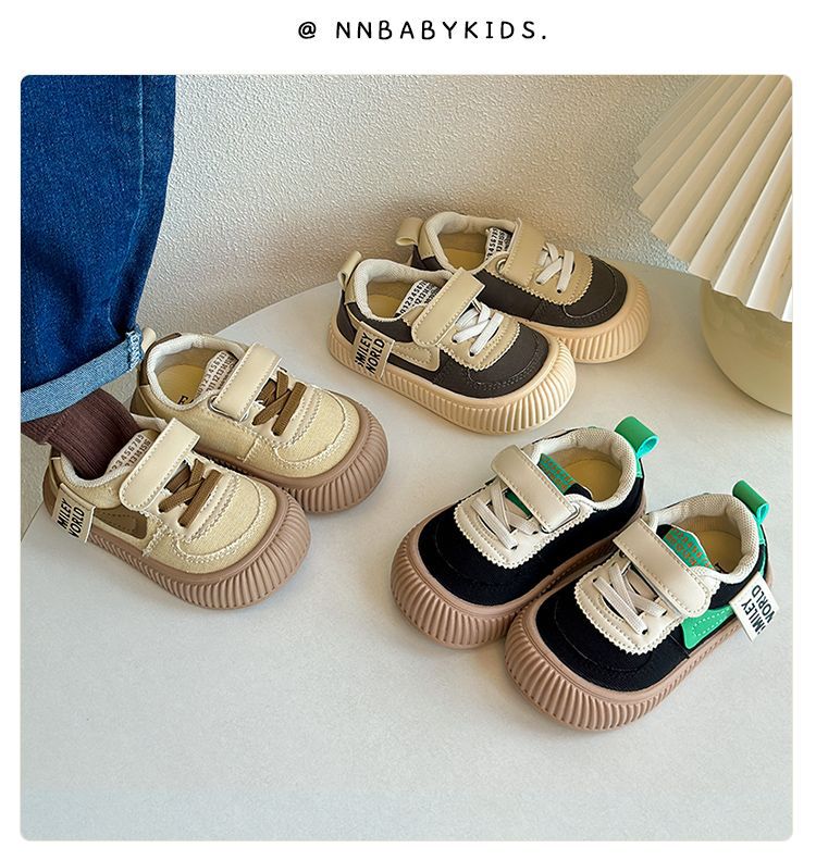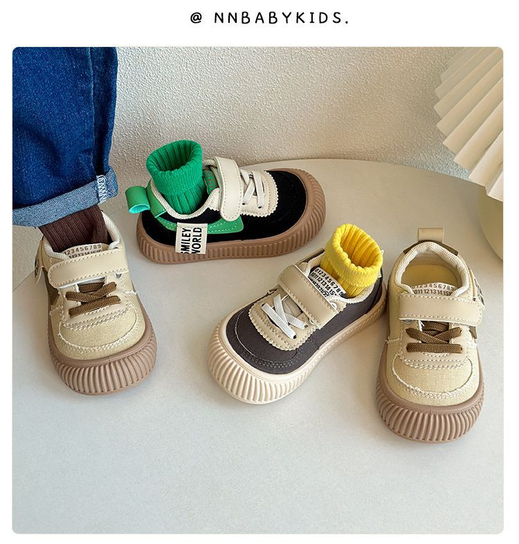 한국식 어린이 캔버스 신발 봄과 가을 새 소년과 소녀 캐주얼 보드 신발 유치원 부드러운 단독 실내 아기 비스킷 신발스토어 가기