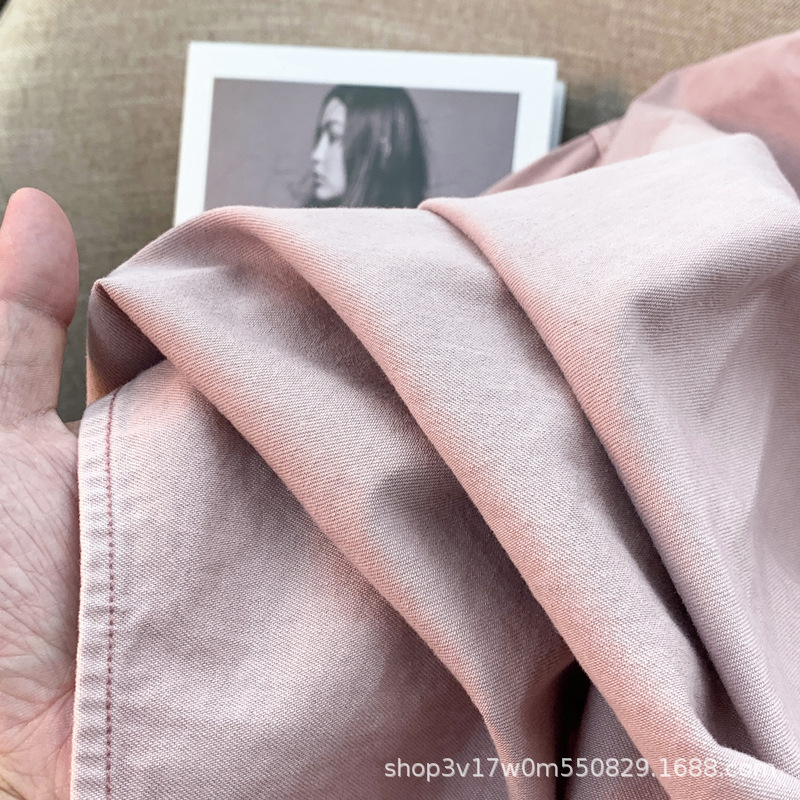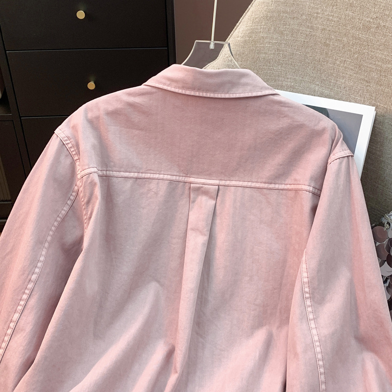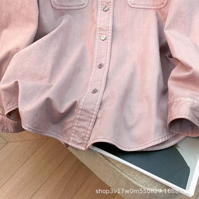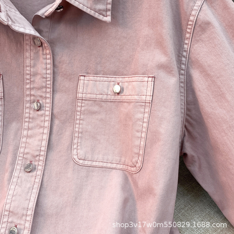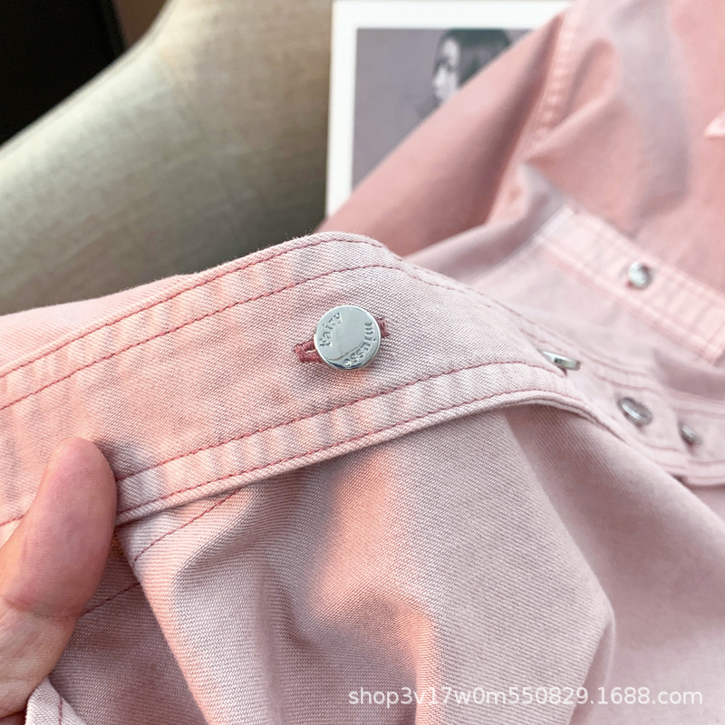 도매 고급 순면 핑크 데님 셔츠 여성 작업복 큰 사이즈 루즈핏 상의 아우터 니치 스타일 두꺼운 셔츠 여성용스토어 가기