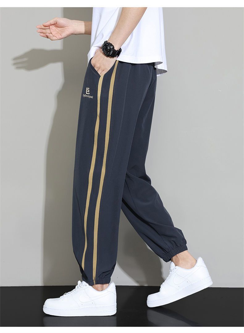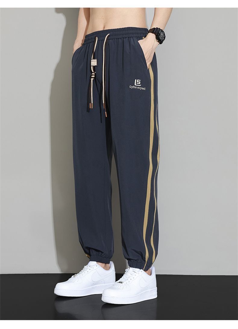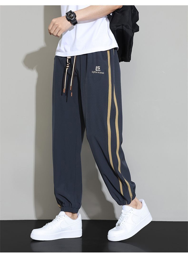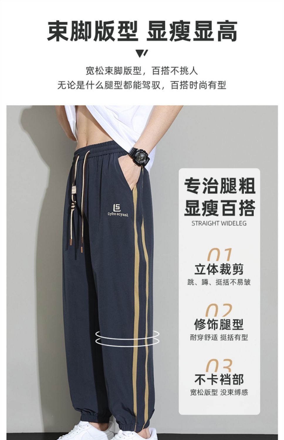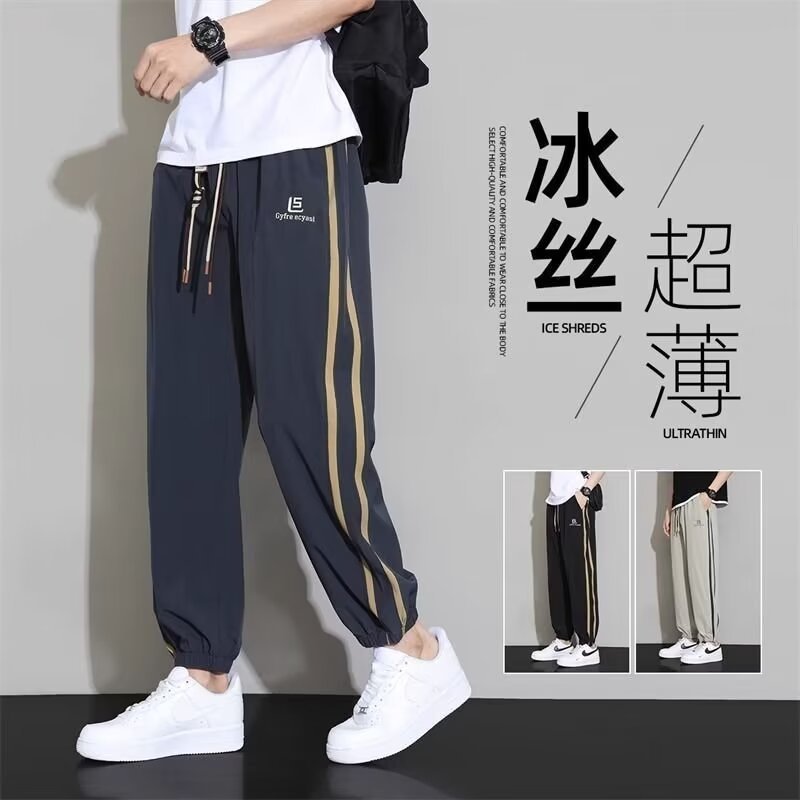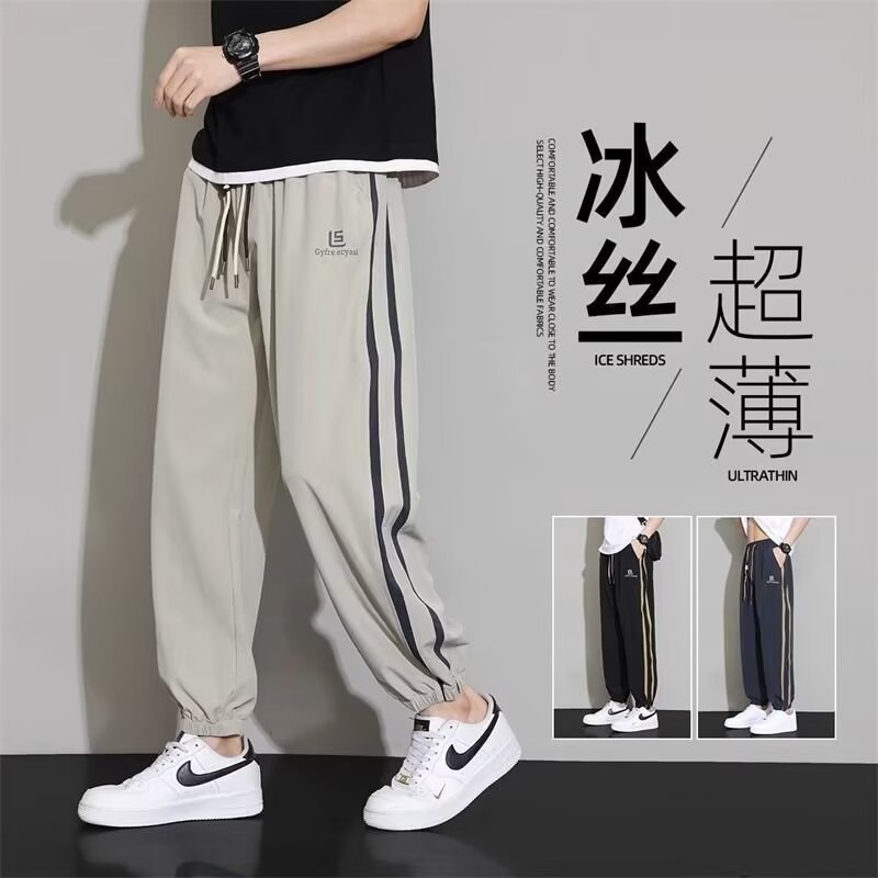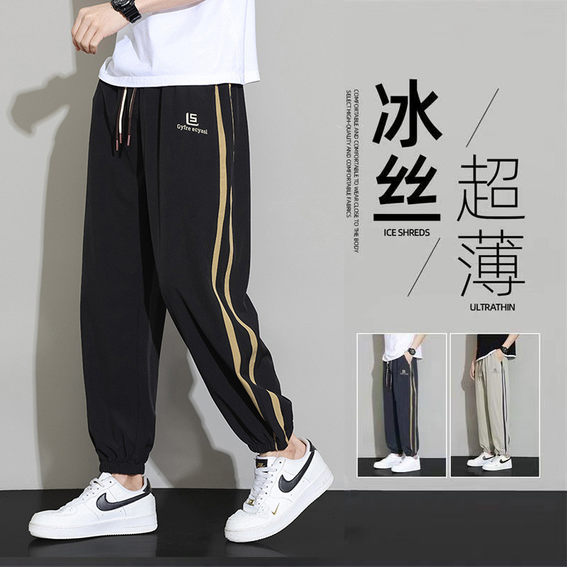 캐주얼 긴 바지 남자 여름 초박형 느슨한 패셔너블 아이스 실크 에어컨 바지 올 매치 스포츠 자른 바지