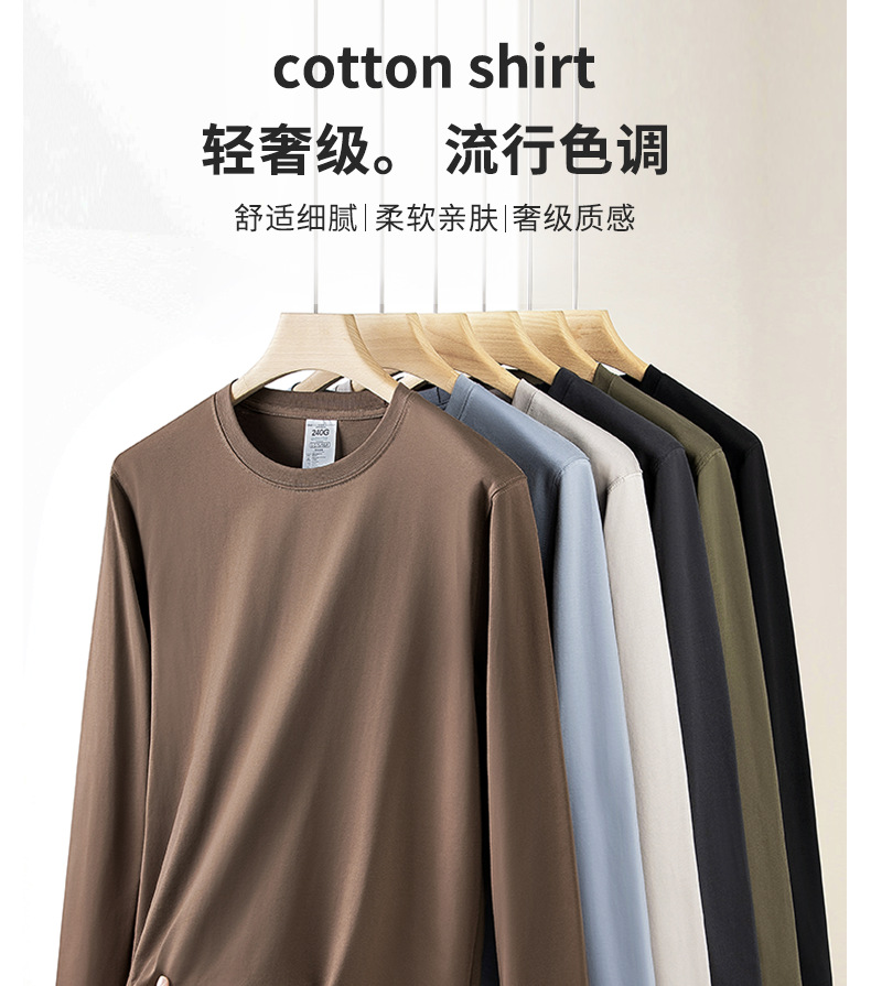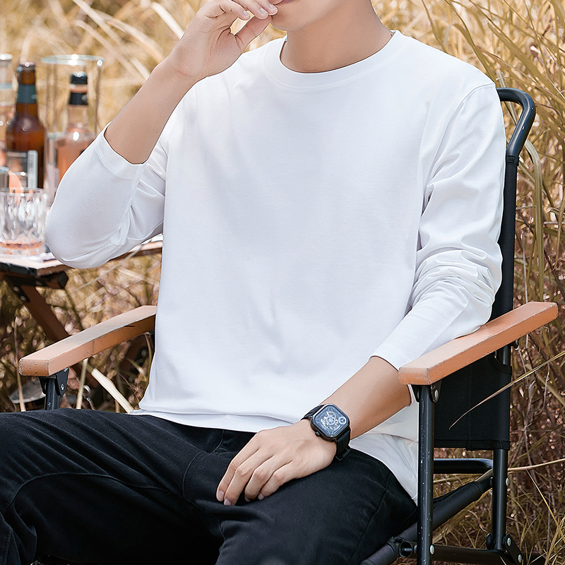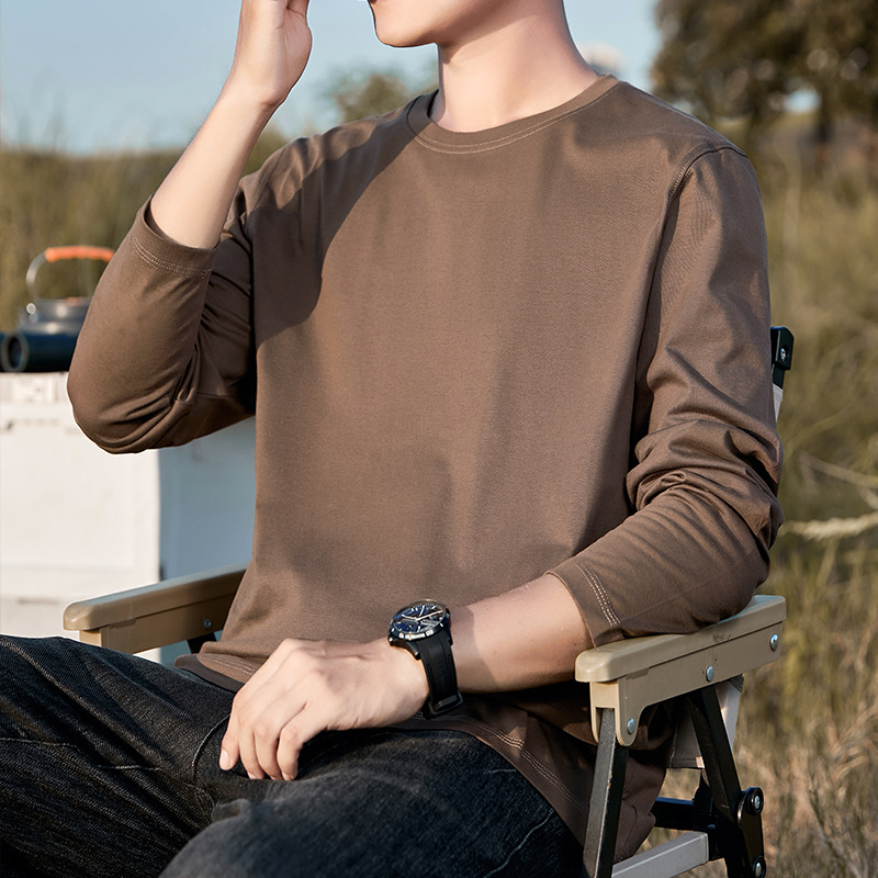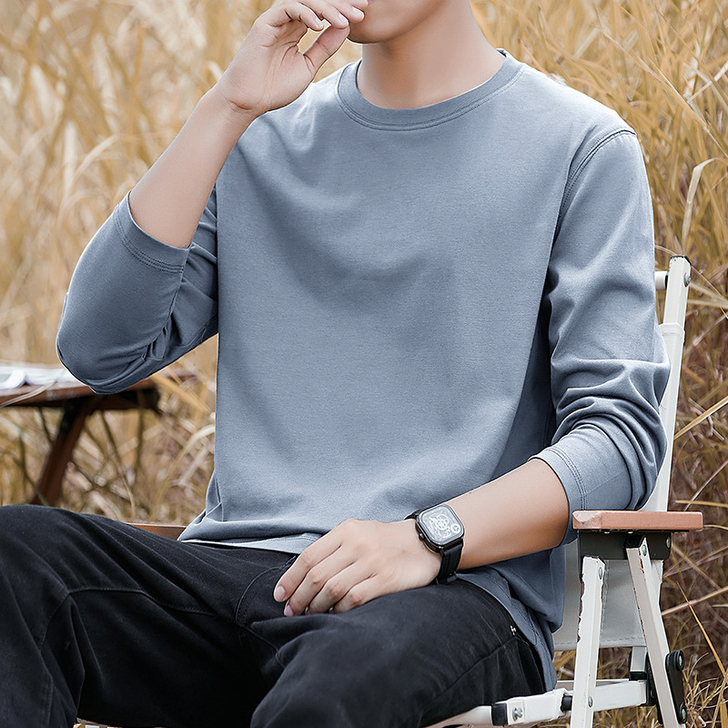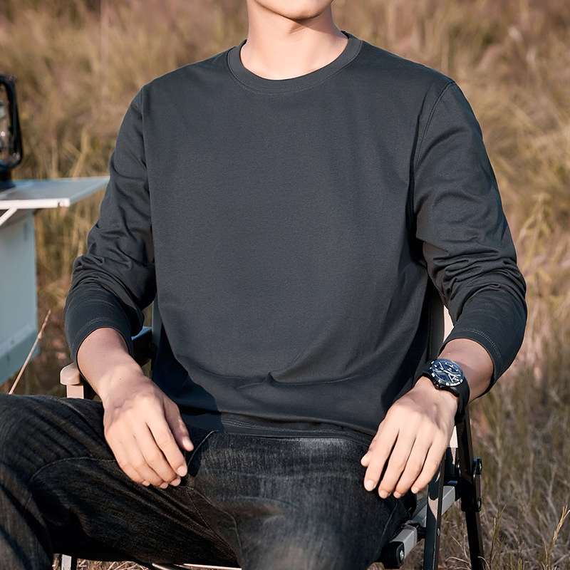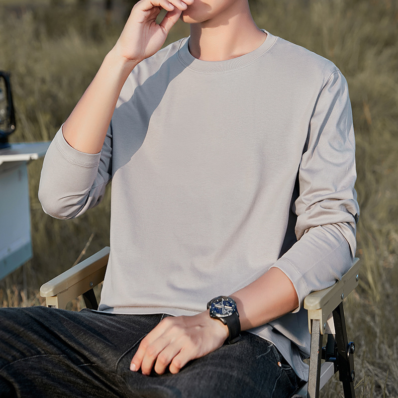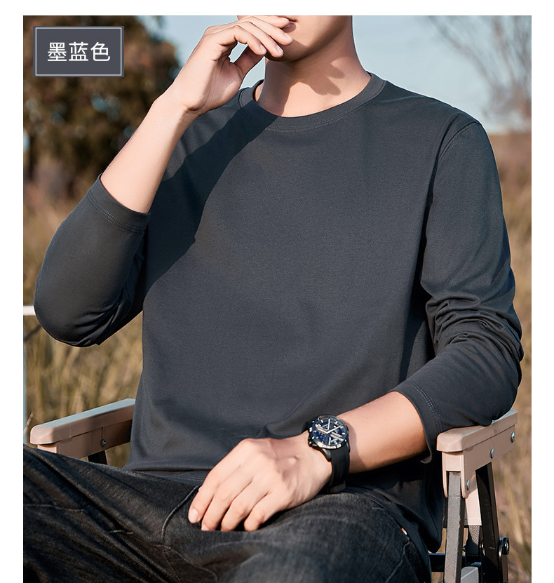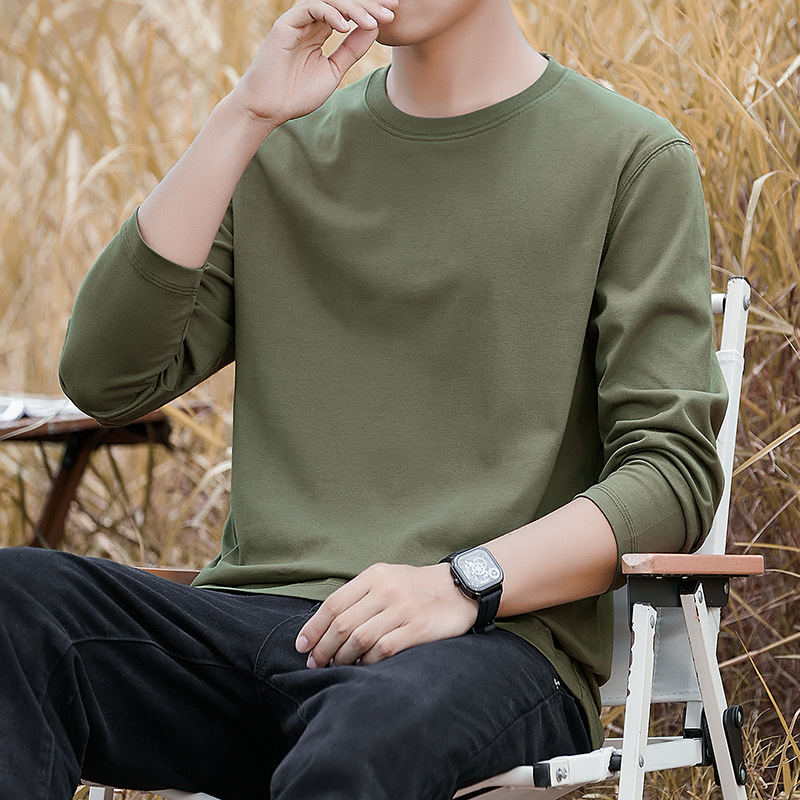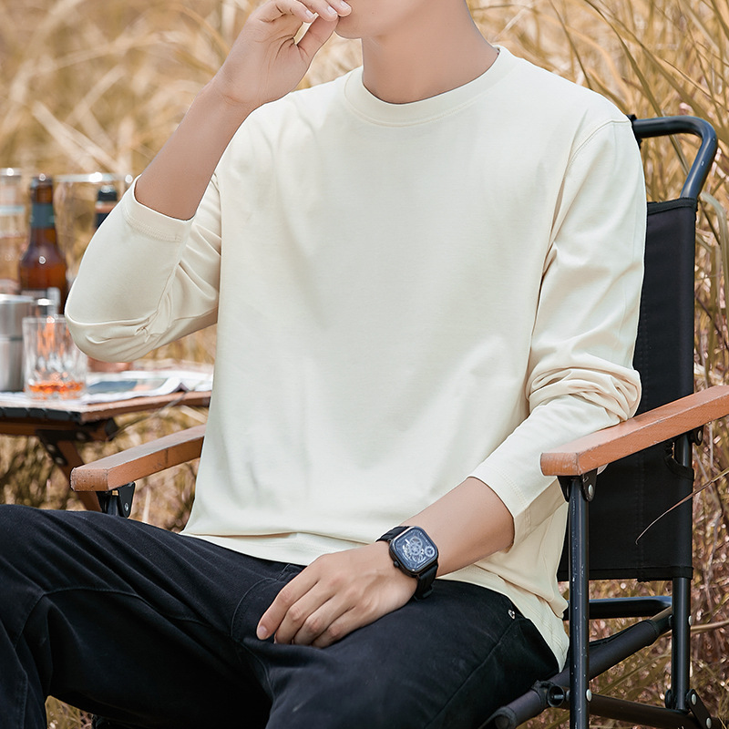240g 헤비급 코튼 긴팔 티셔츠 남성용 느슨한 봄과 가을 단색 캐주얼 내부 두꺼운 불투명 바닥 탑스토어 가기