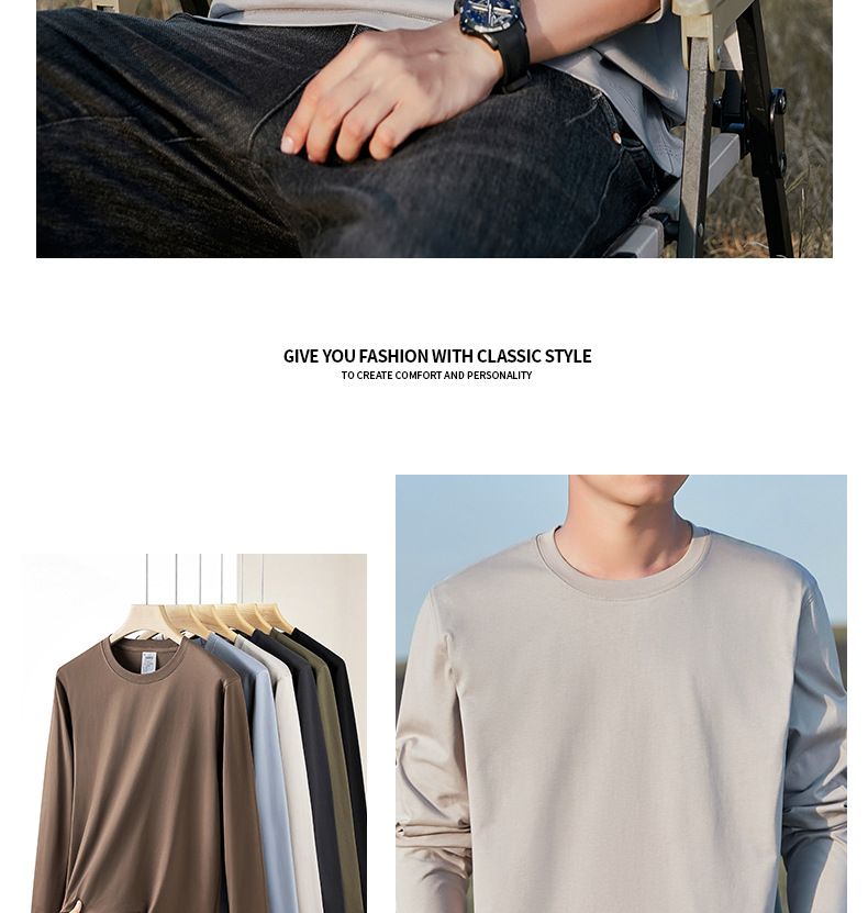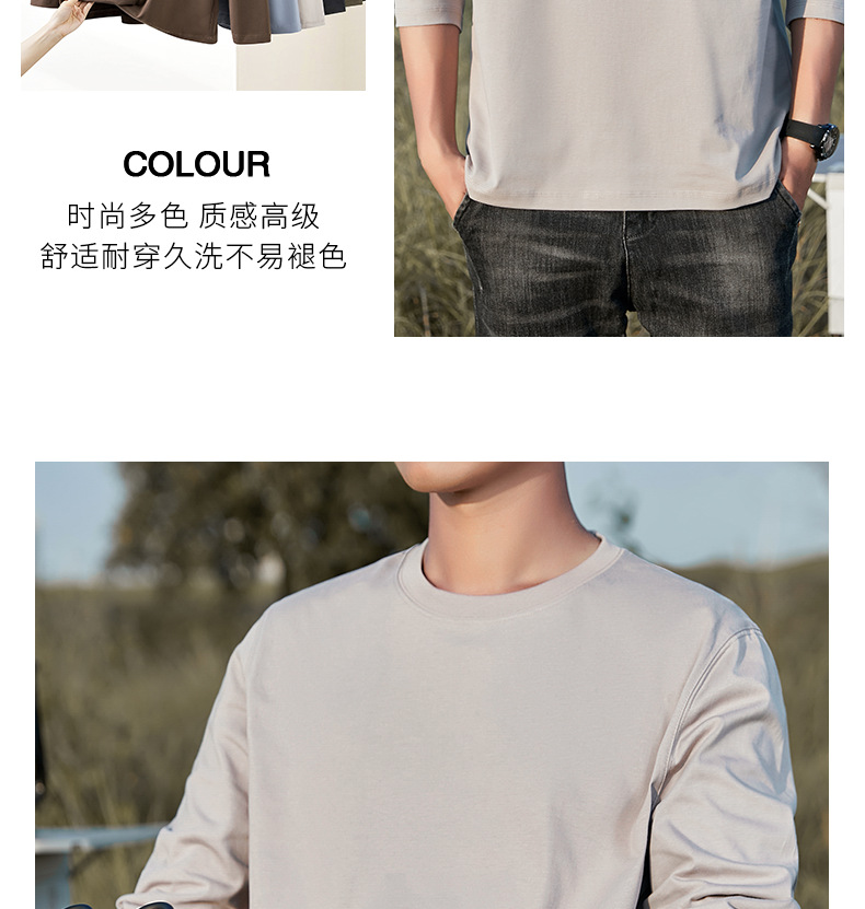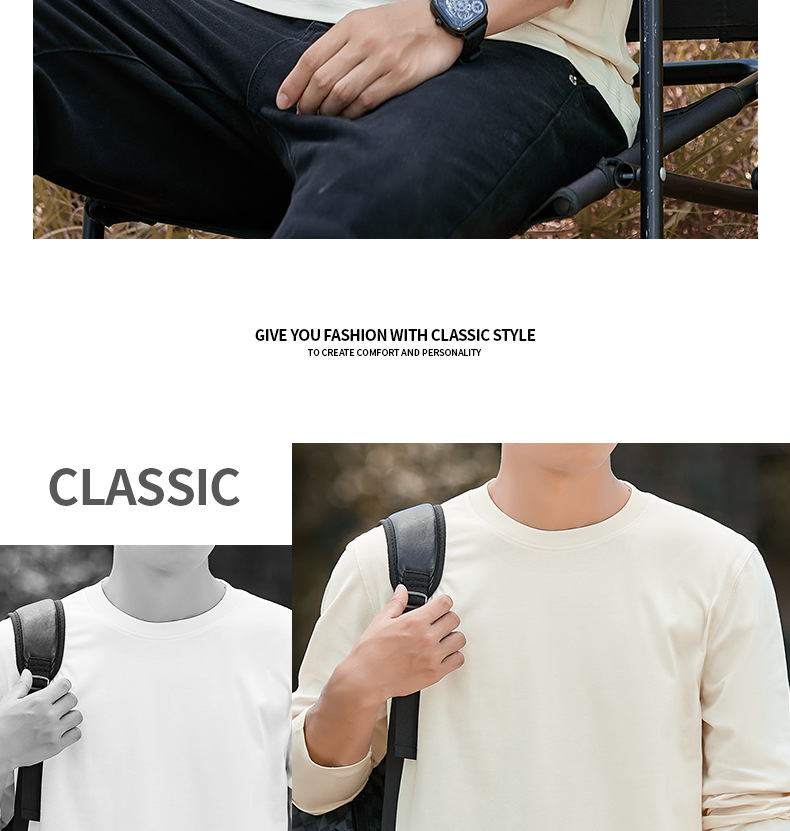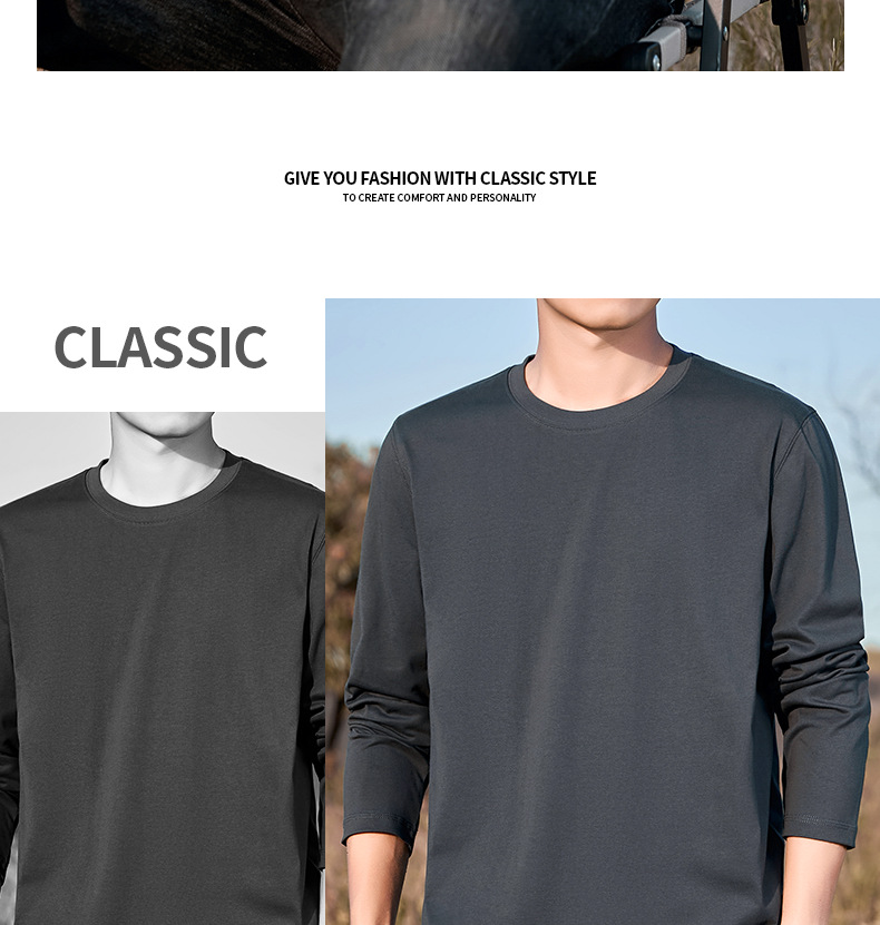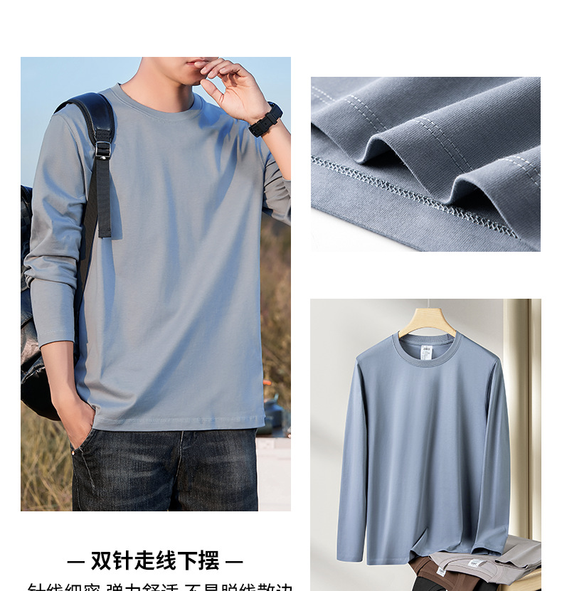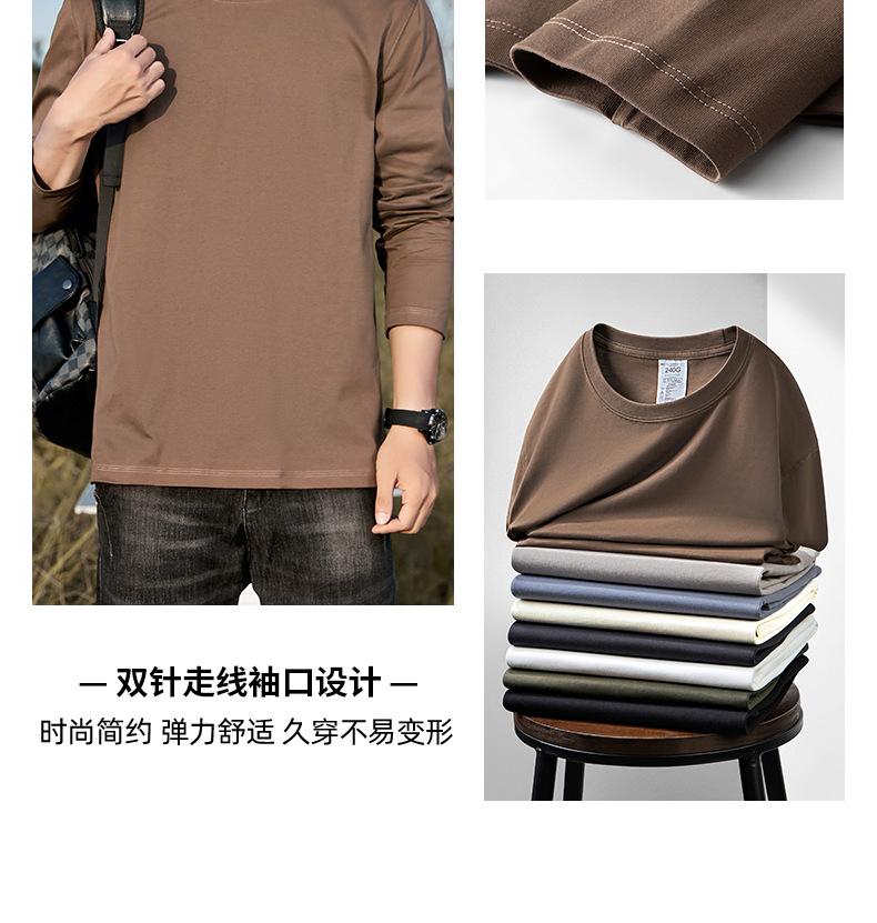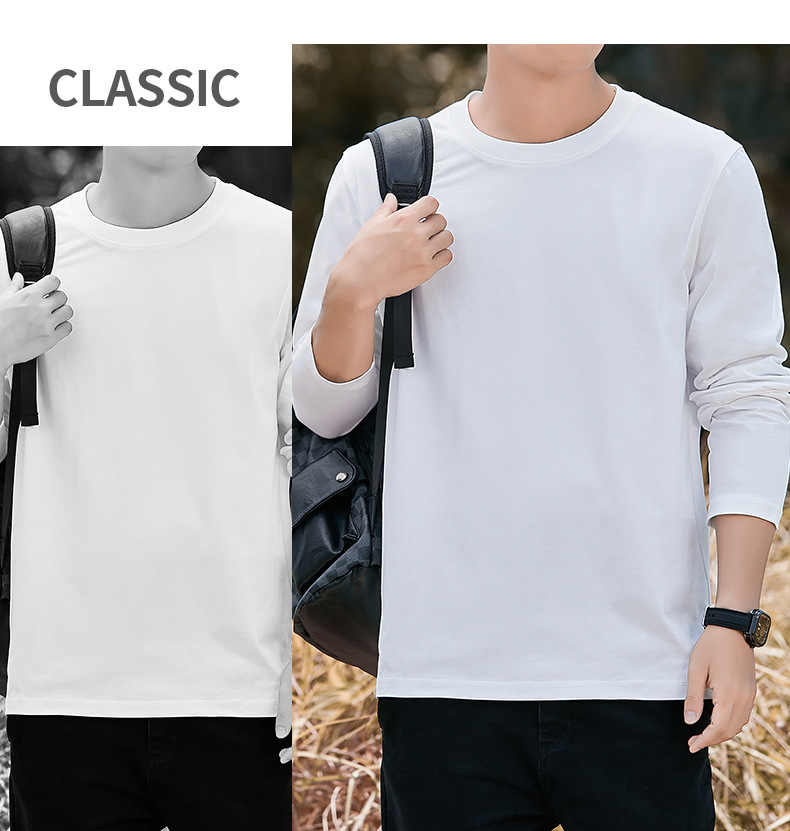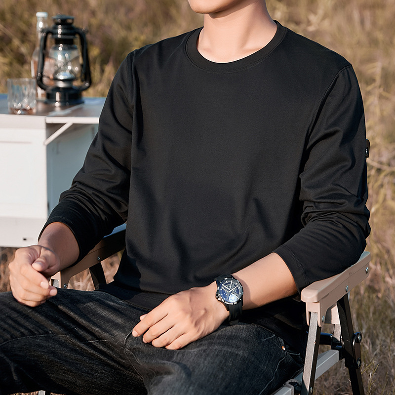 240g 헤비급 코튼 긴팔 티셔츠 남성용 느슨한 봄과 가을 단색 캐주얼 내부 두꺼운 불투명 바닥 탑스토어 가기