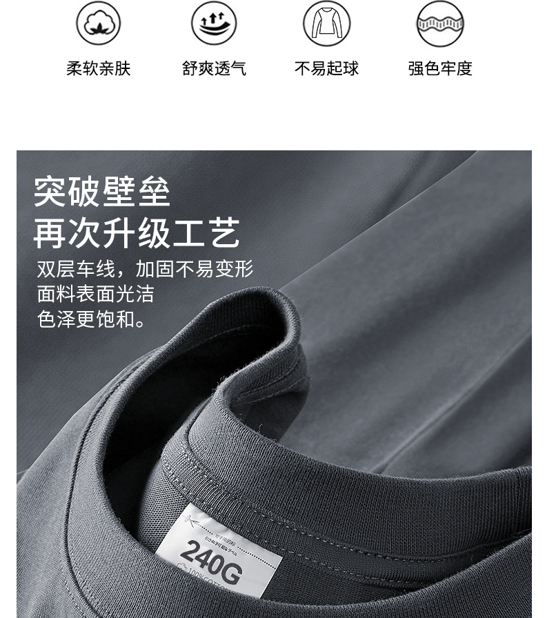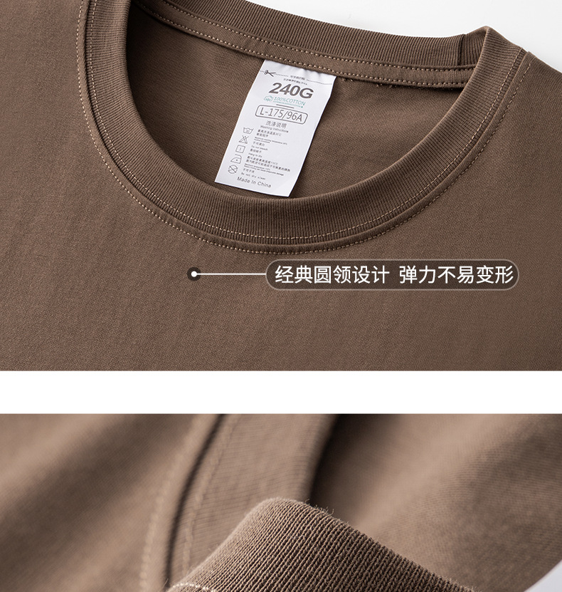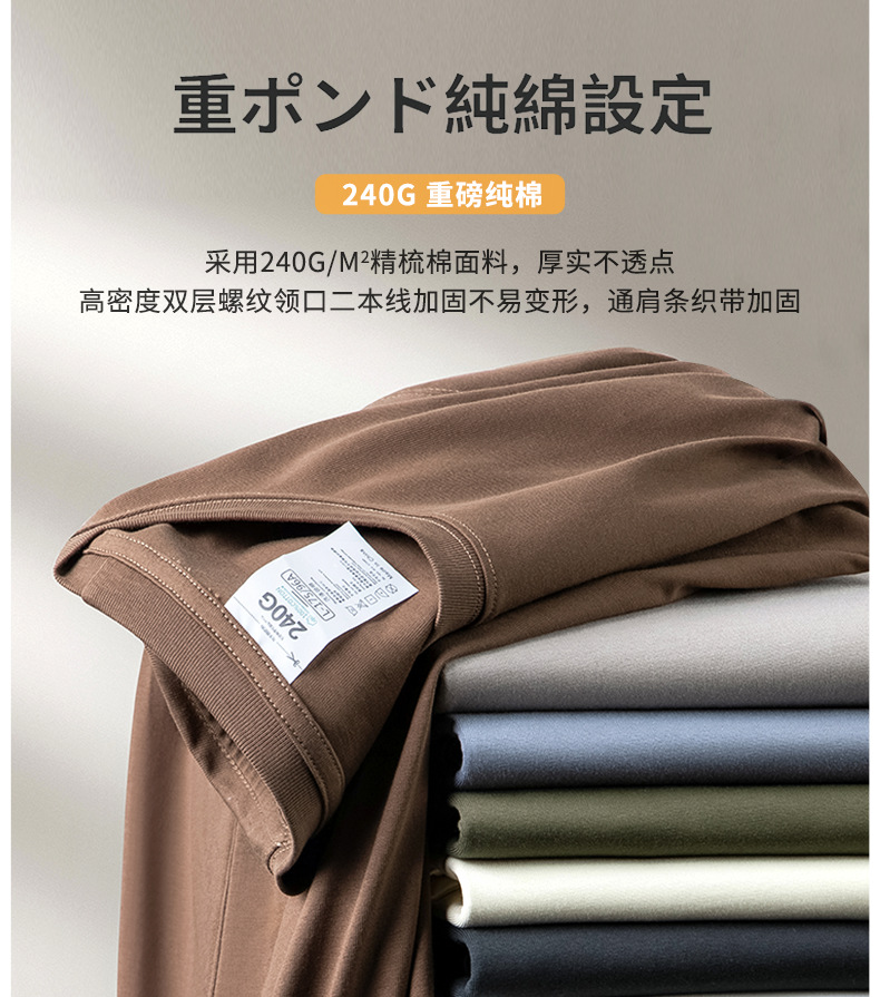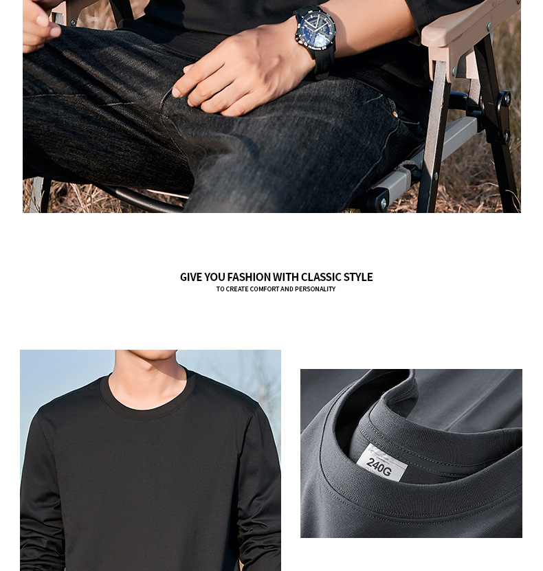 240g 헤비급 코튼 긴팔 티셔츠 남성용 느슨한 봄과 가을 단색 캐주얼 내부 두꺼운 불투명 바닥 탑