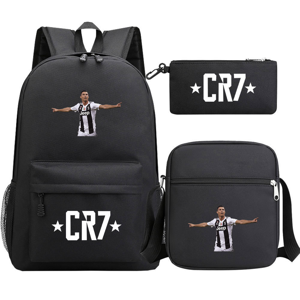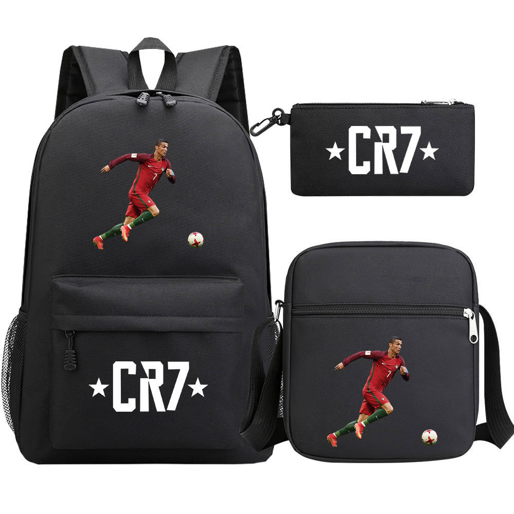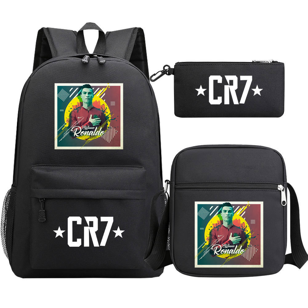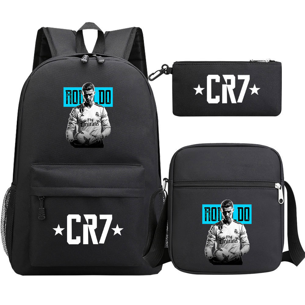 축구 스타 호나우두 인쇄 청소년 학교 가방 초등 및 중등 학교 3 조각 세트 핫 스탬핑 배낭 어린이 배낭