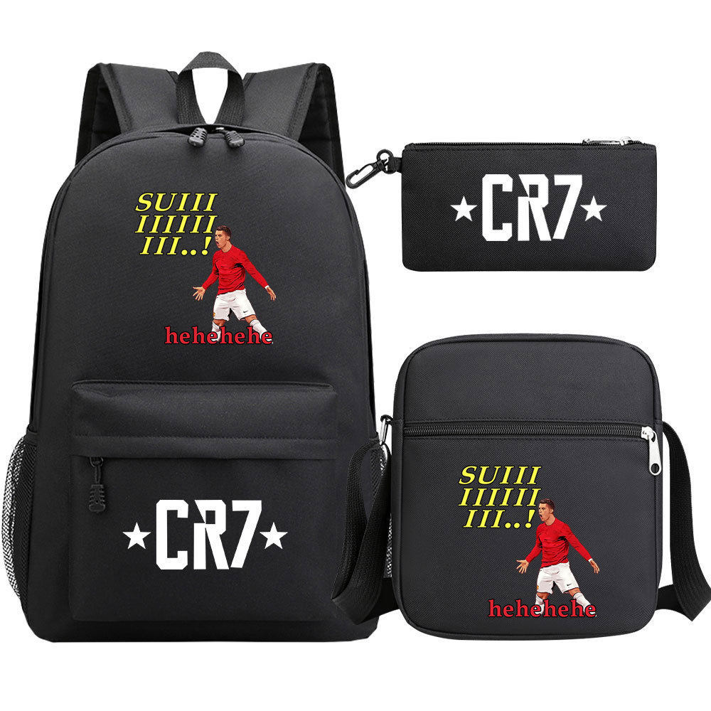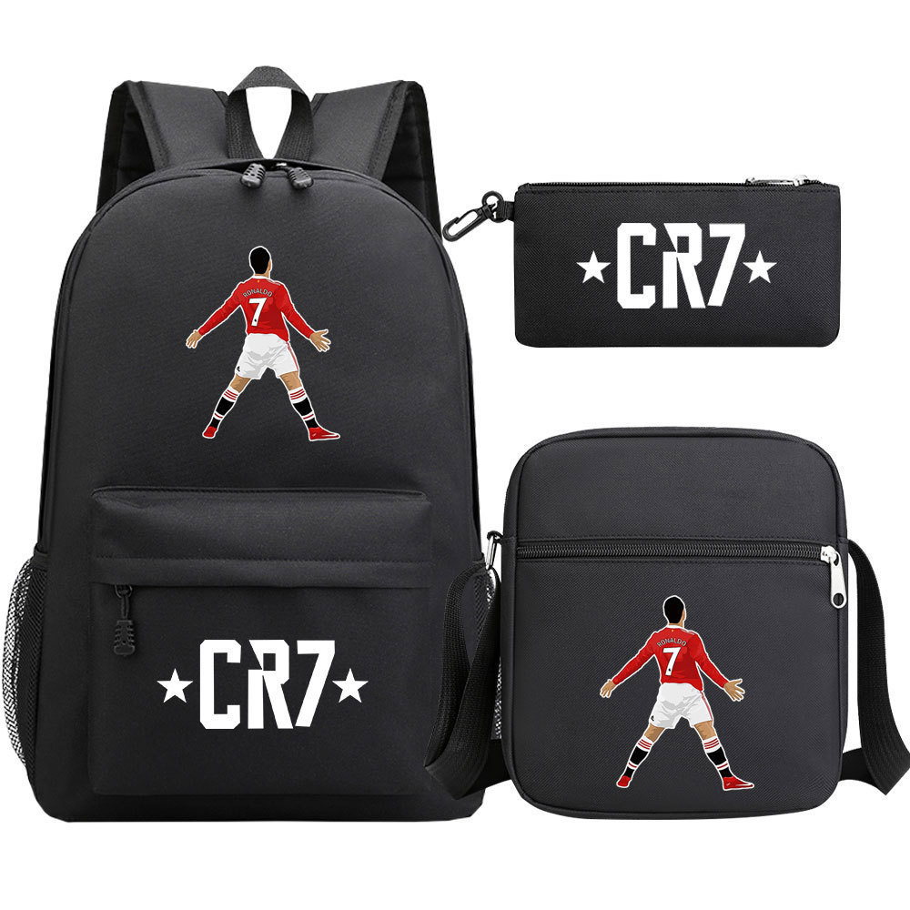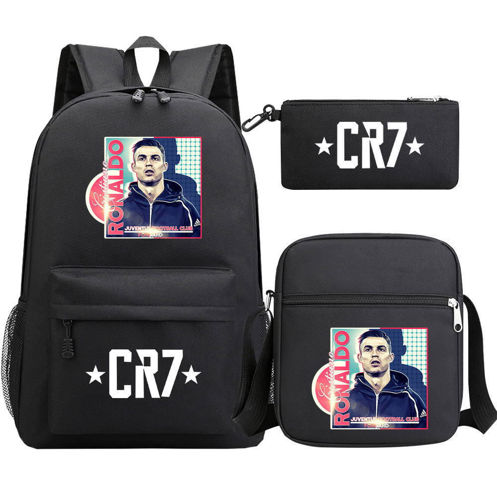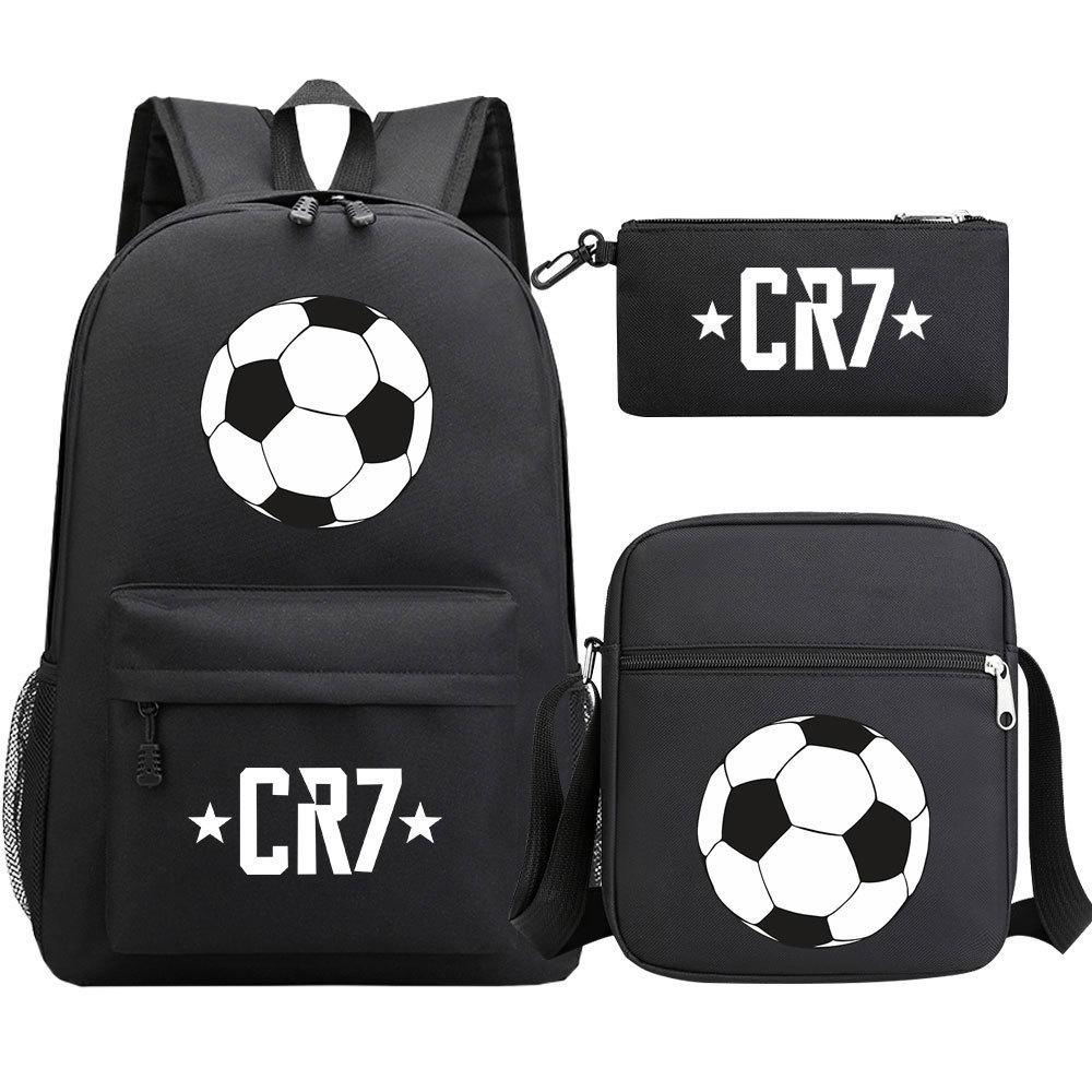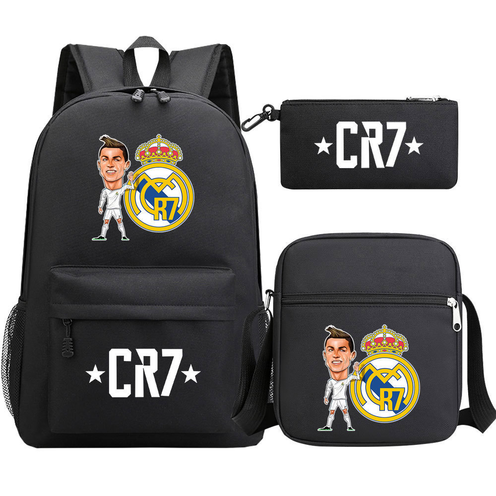 축구 스타 호나우두 인쇄 청소년 학교 가방 초등 및 중등 학교 3 조각 세트 핫 스탬핑 배낭 어린이 배낭