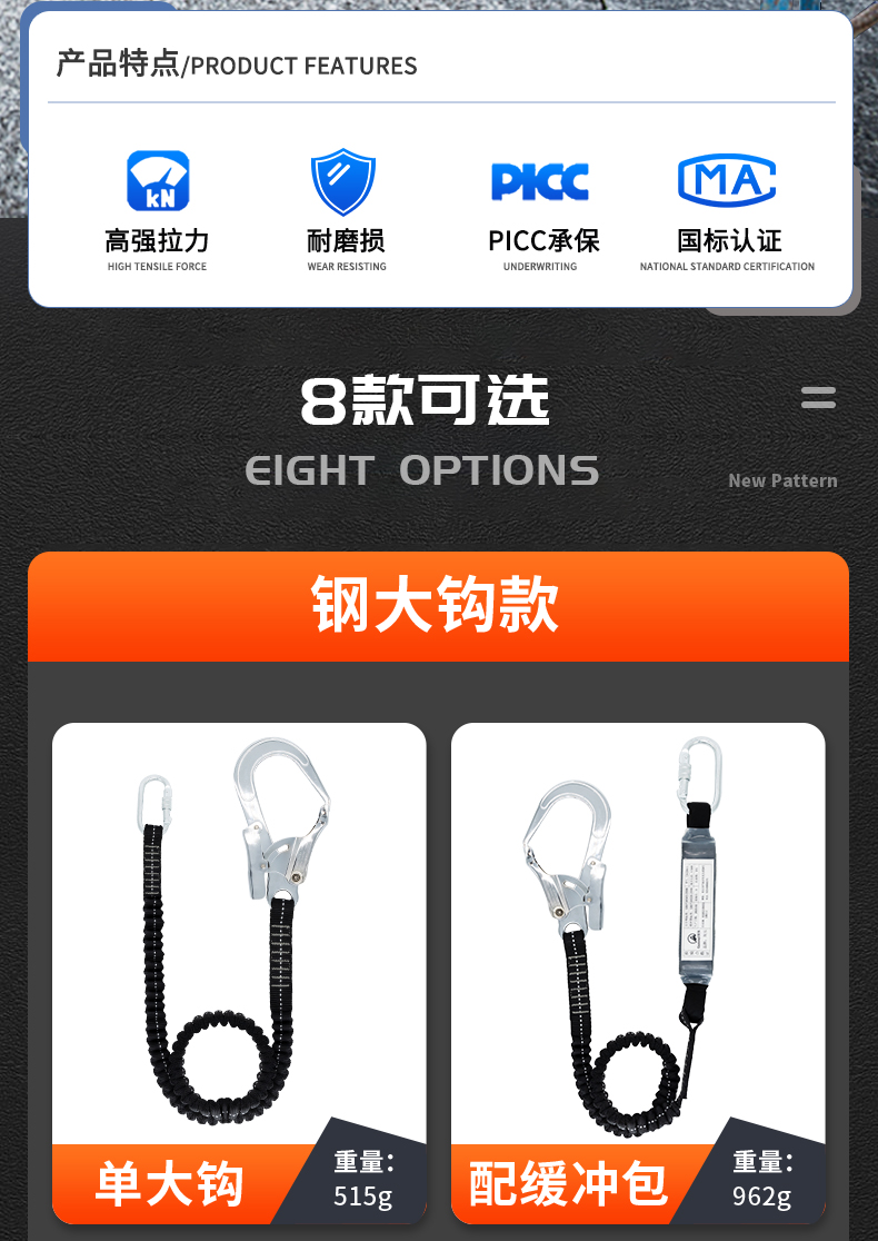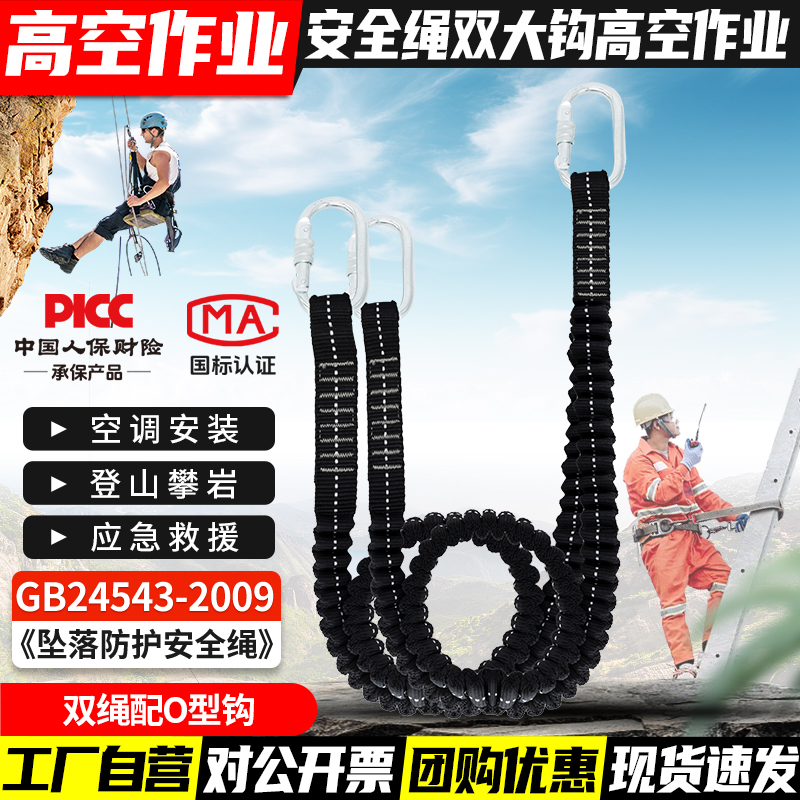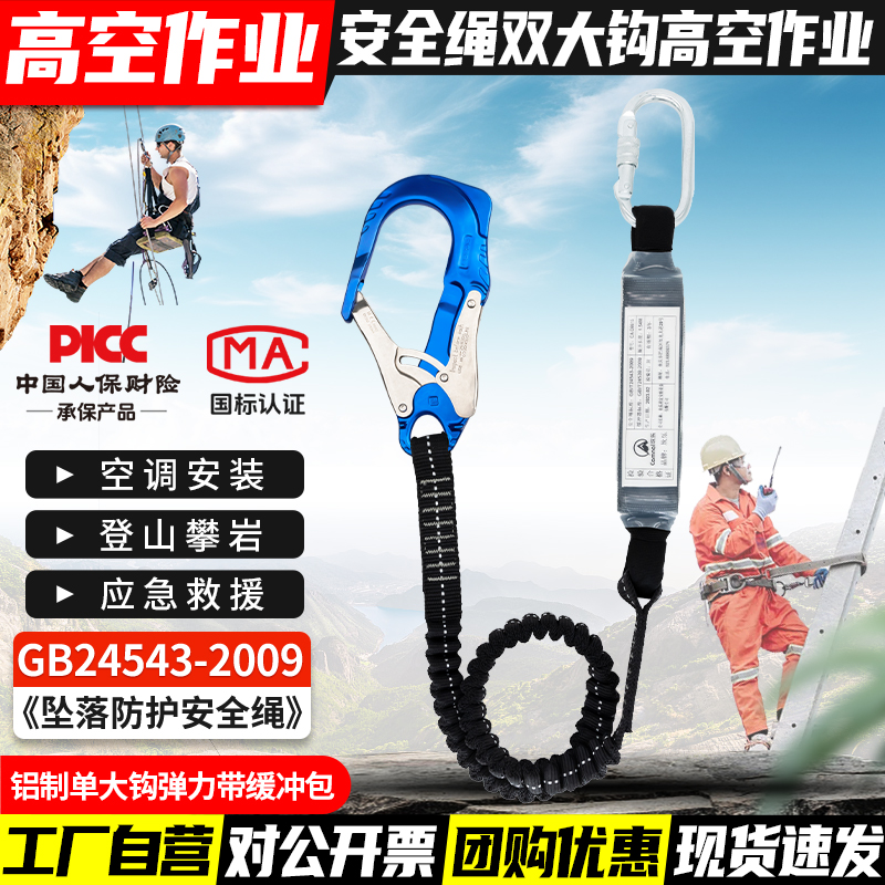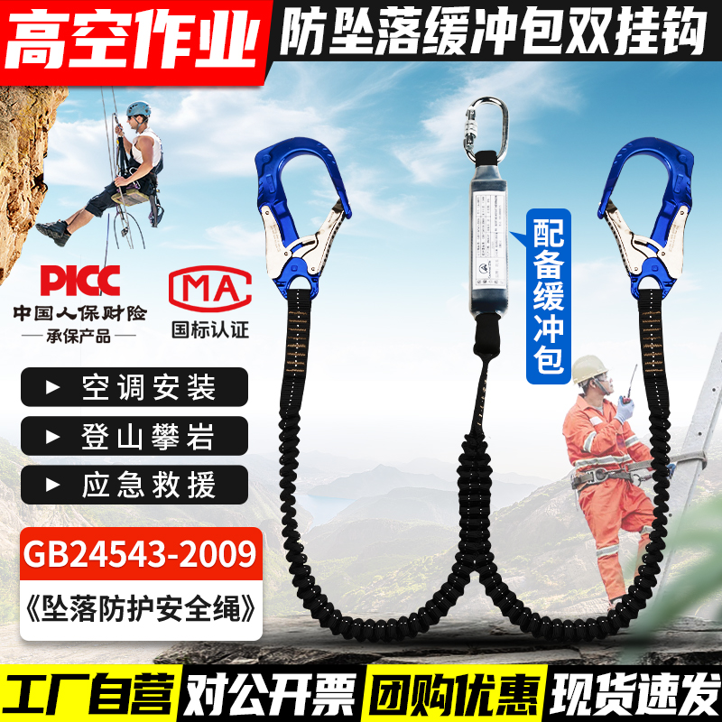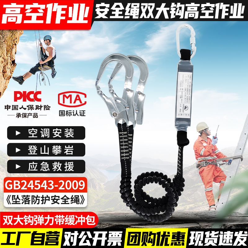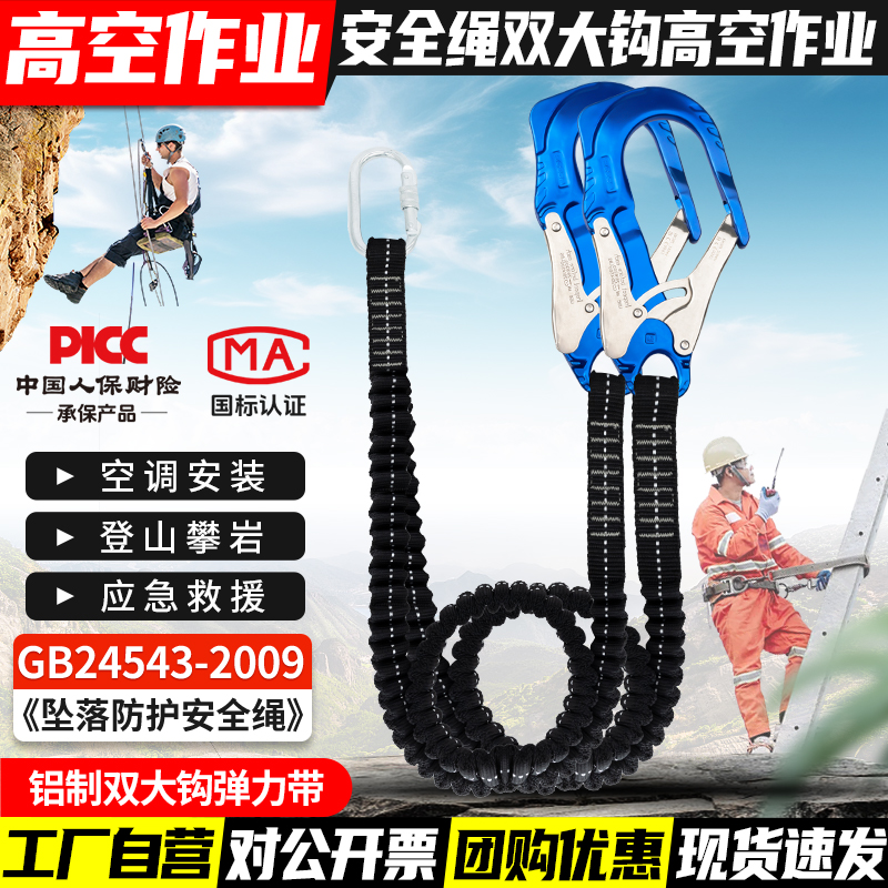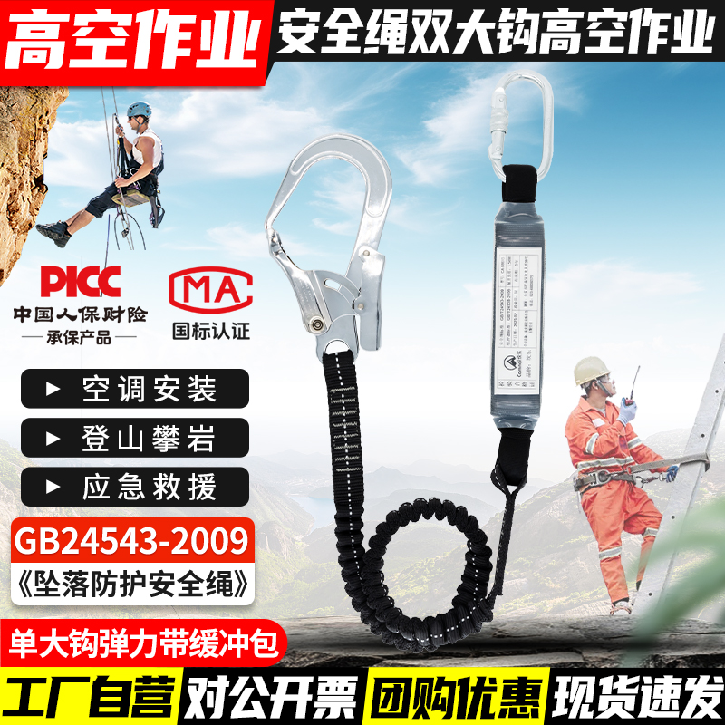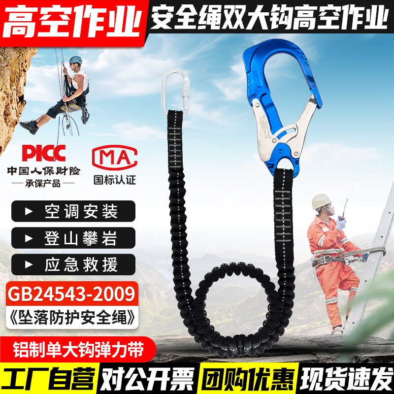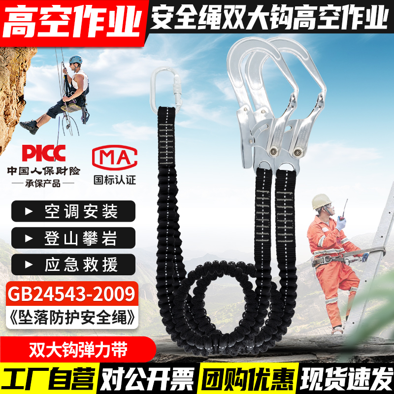안전 벨트 더블 후크 버퍼 백 안티 떨어지는 탄성 로프 안전 로프 후크 전기 에어컨 설치 안전 로프스토어 가기