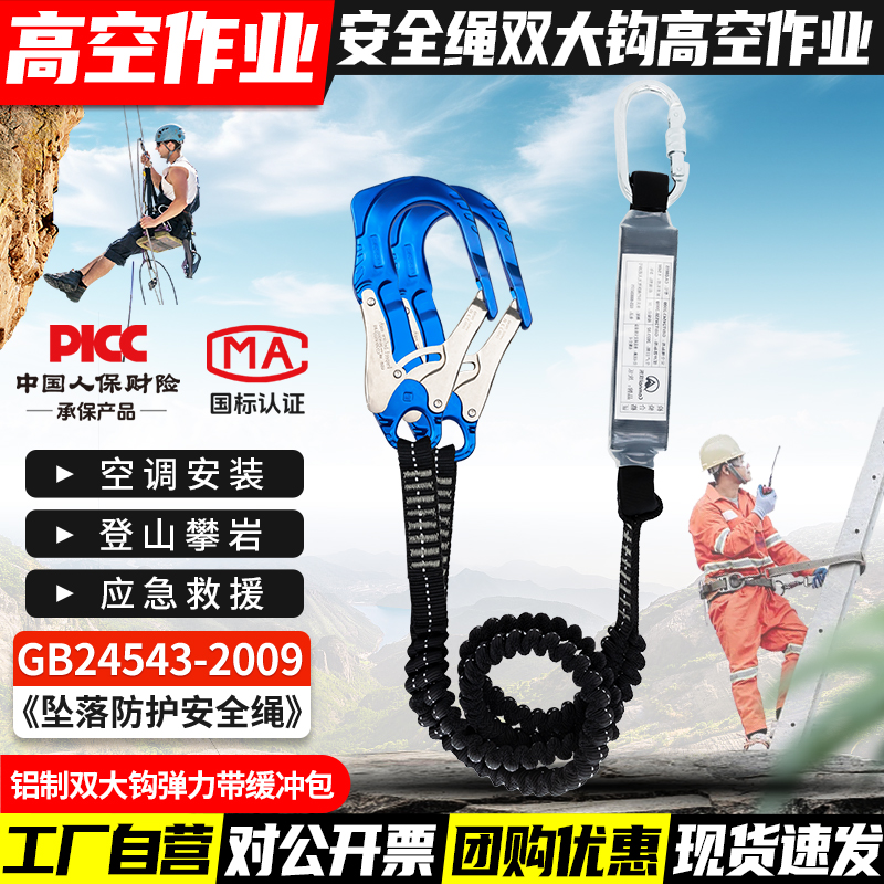 안전 벨트 더블 후크 버퍼 백 안티 떨어지는 탄성 로프 안전 로프 후크 전기 에어컨 설치 안전 로프