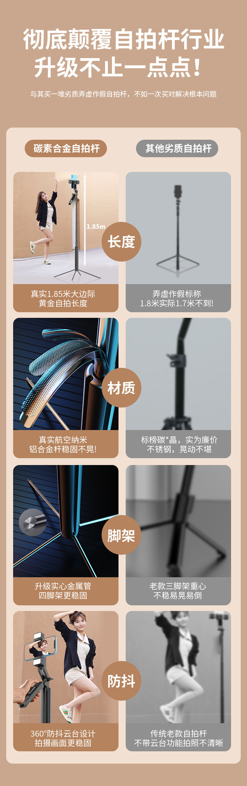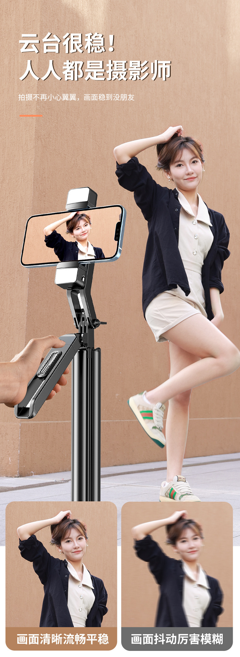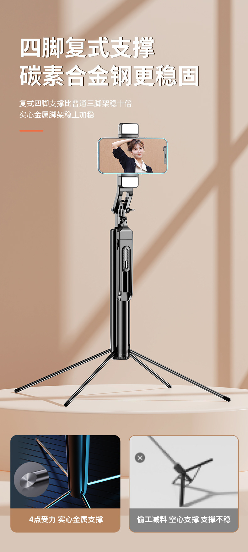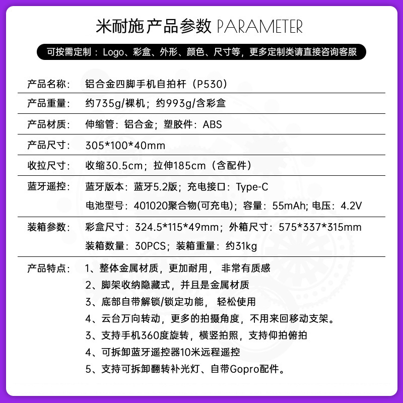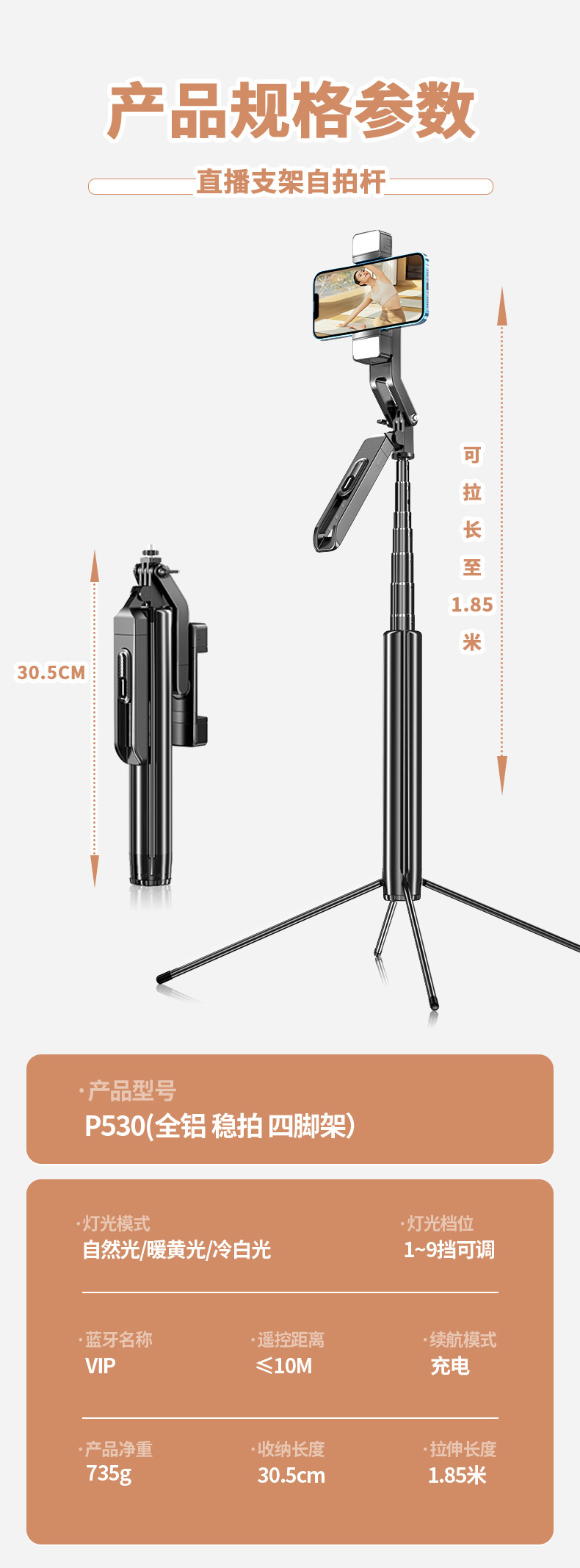 • P530 듀얼 조명 [1.85m + 알루미늄 합금 튜브 + 블루투스 리모컨 + 듀얼 필 라이트]