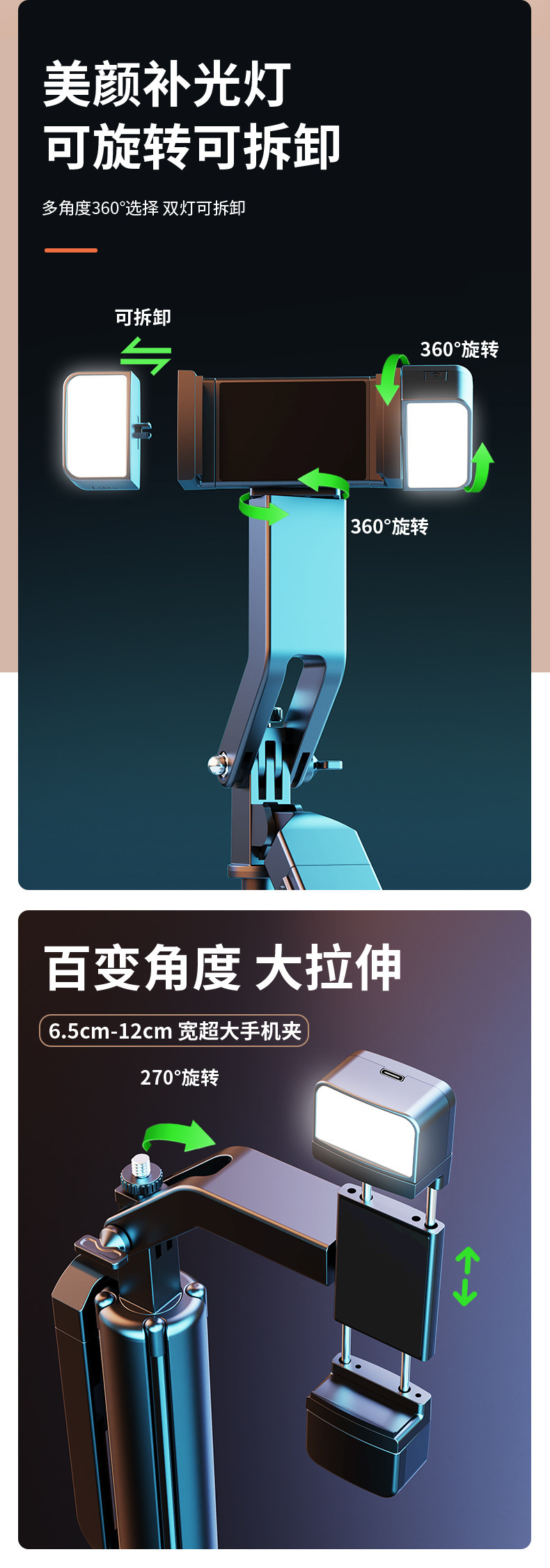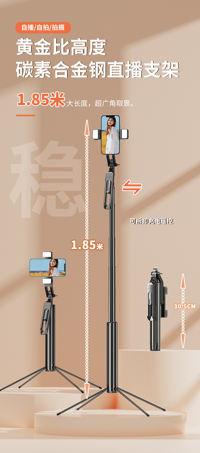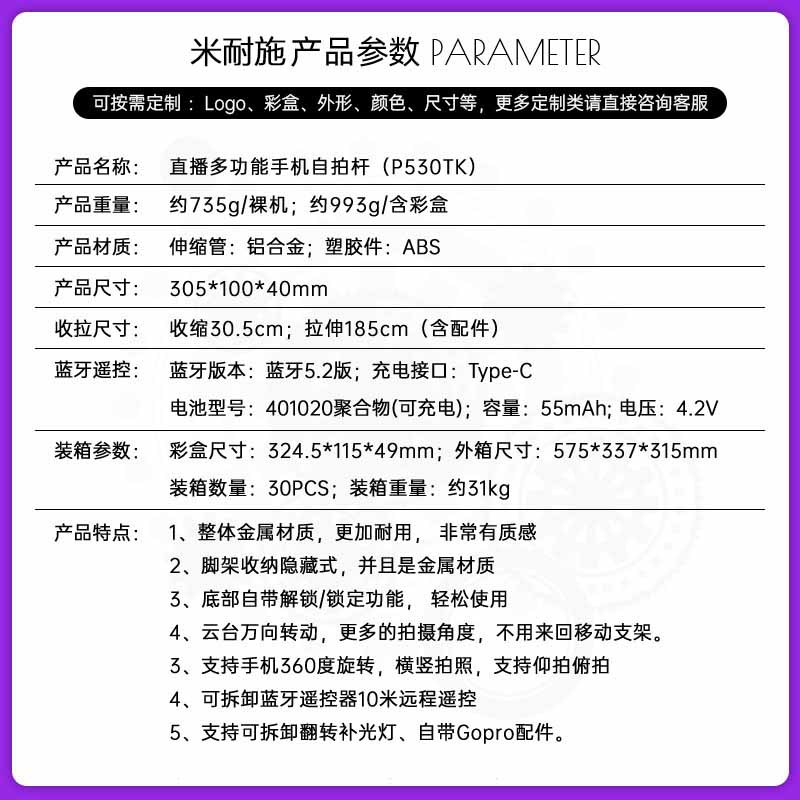 • P530TK 듀얼 조명 [1.85m + 알루미늄 합금 튜브 + Douyin 리모컨 + 듀얼 필 라이트]