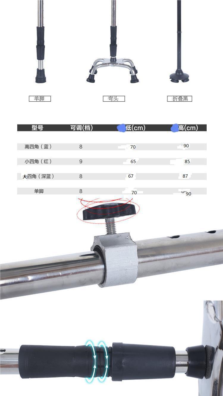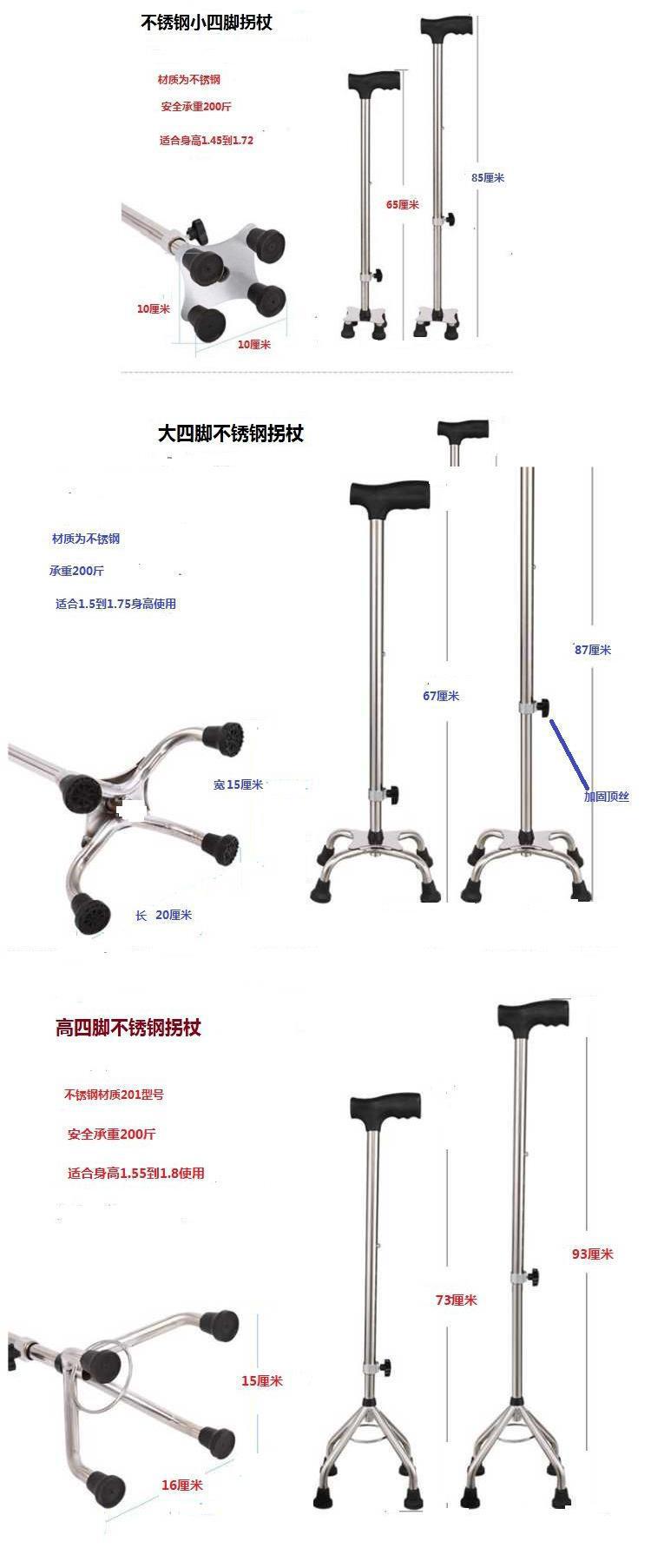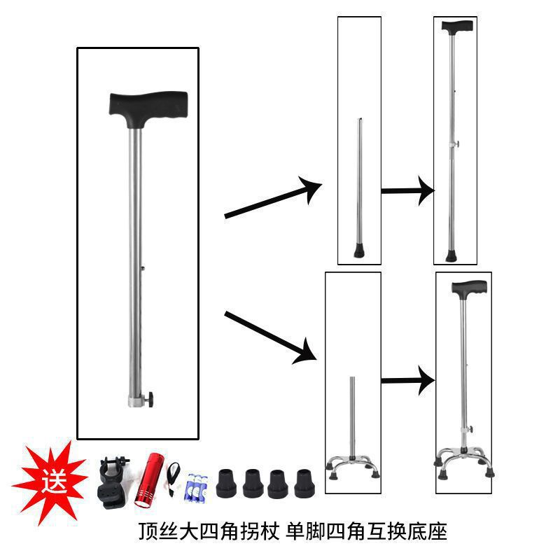 노인 미끄럼 방지 다기능 목발 한쪽 다리 워킹 스틱 스테인리스 스틸 라이트 워킹 스틱 네발 텔레스코픽 무료 배송