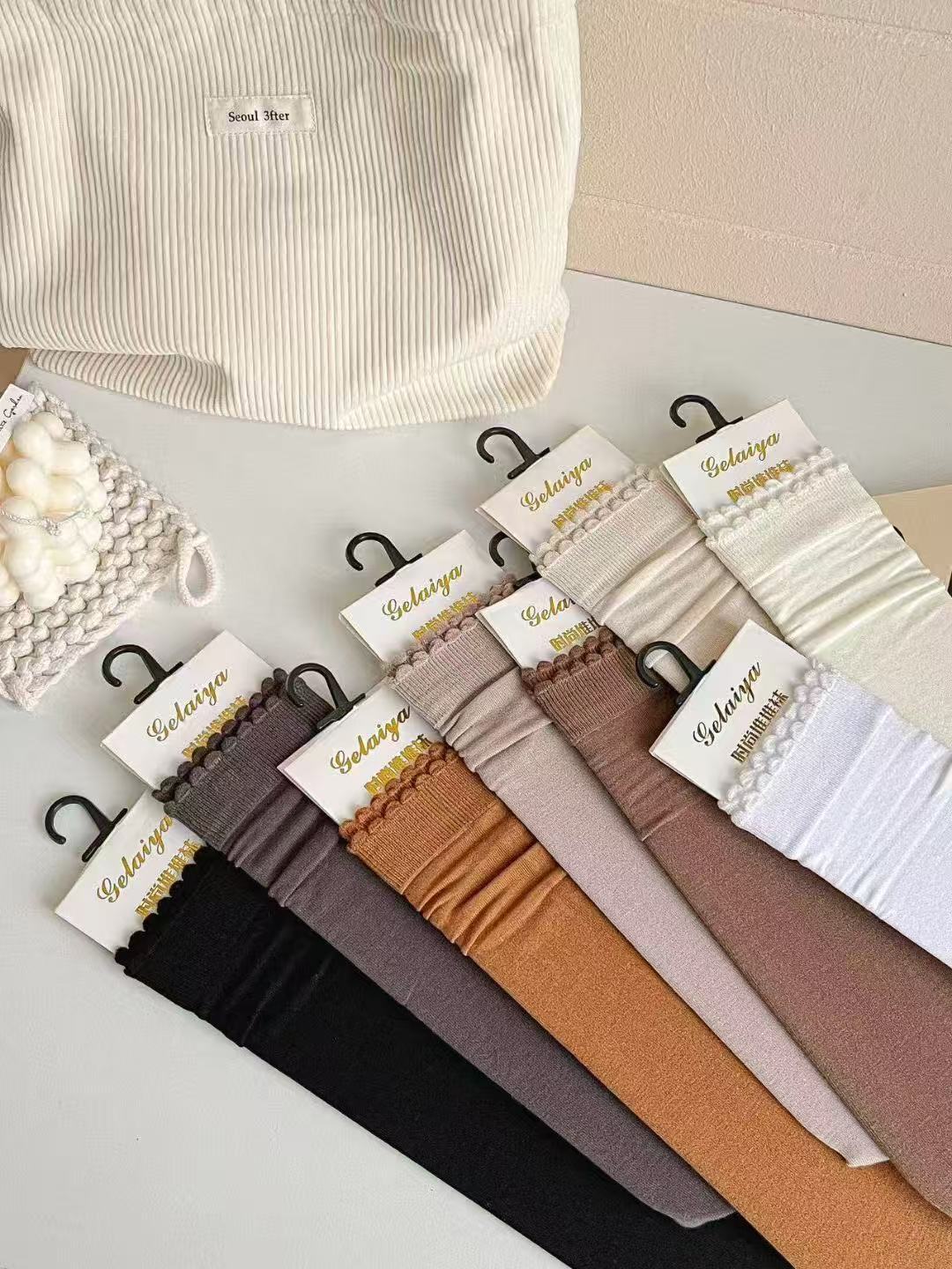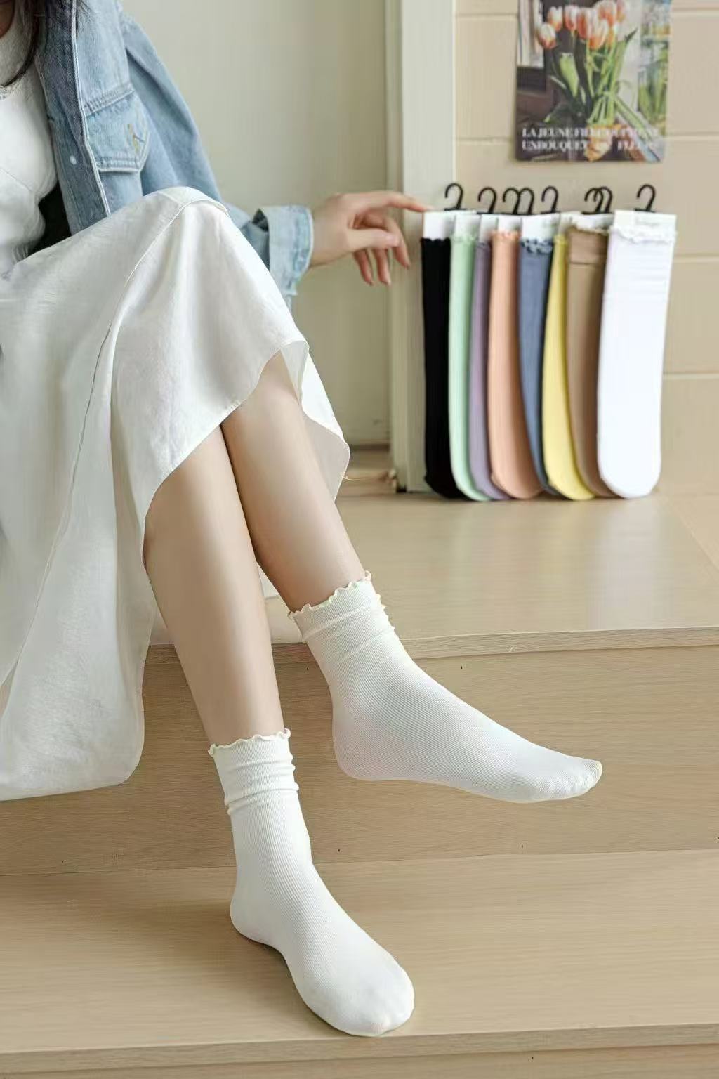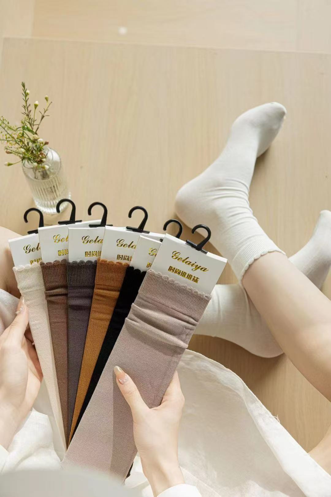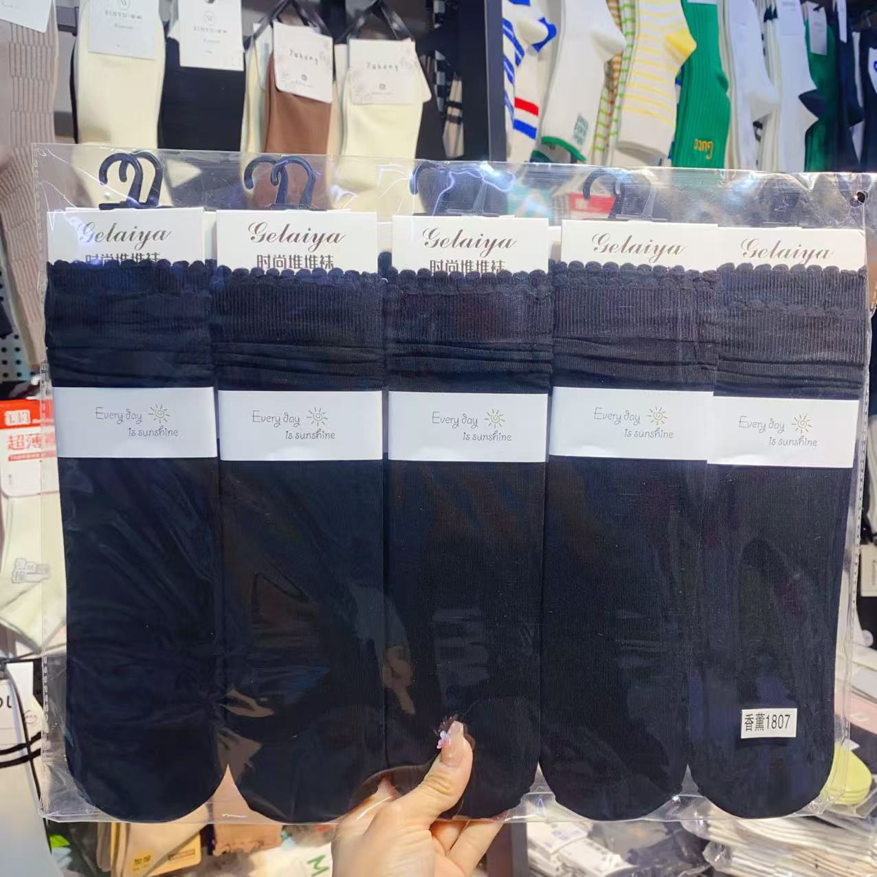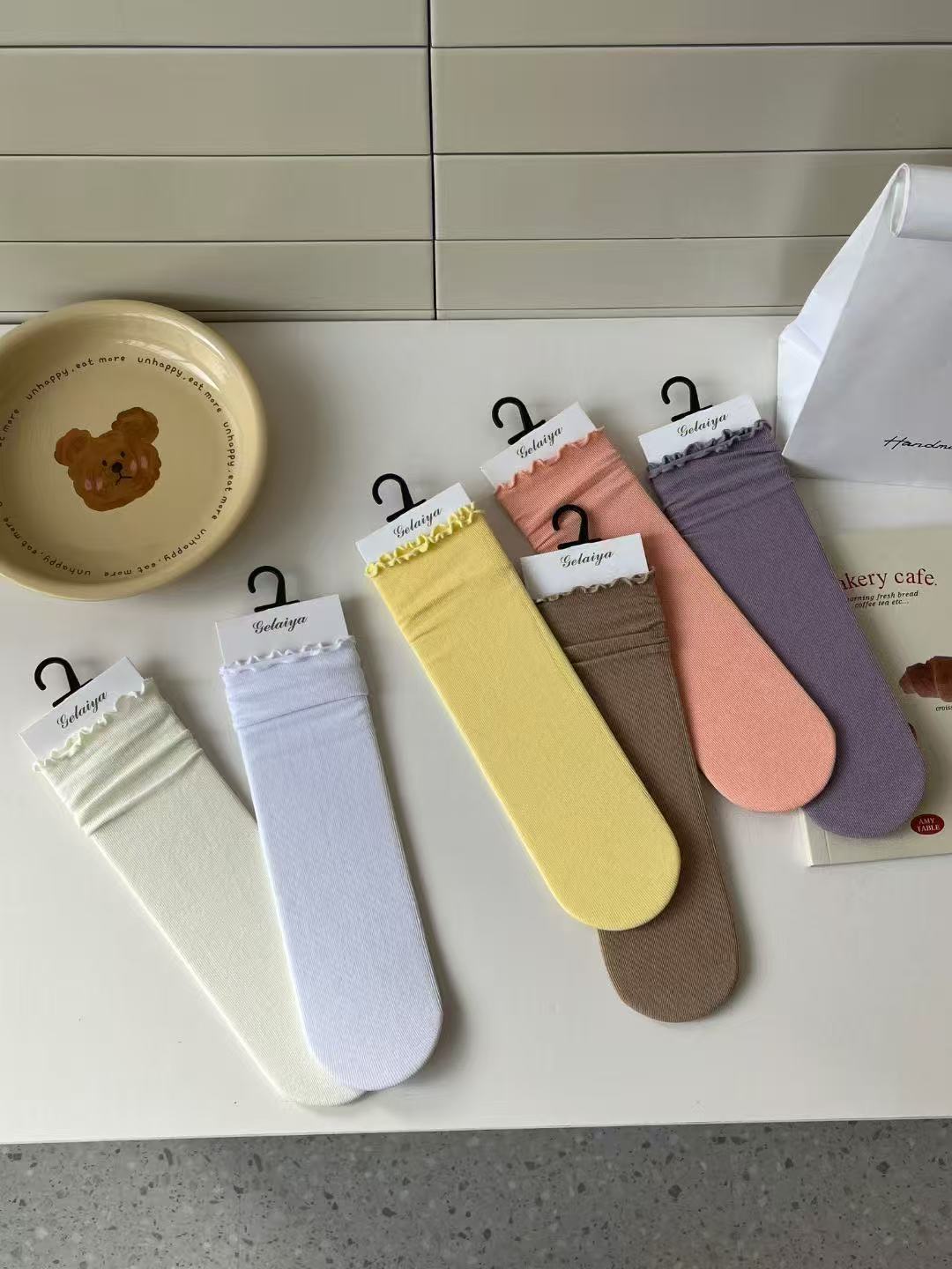 Glea 1807 Four Seasons Unheelled Wavy Lace 여성용 양말 포장 마일 라드 컬러 코튼 양말스토어 가기