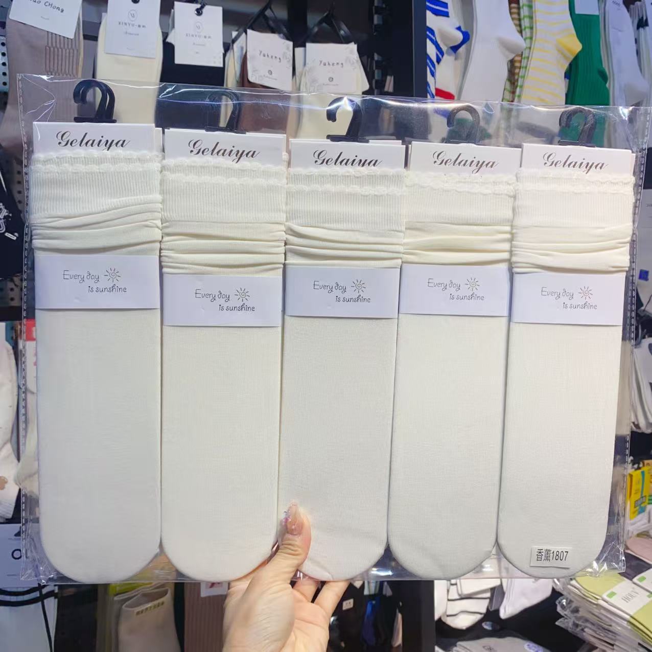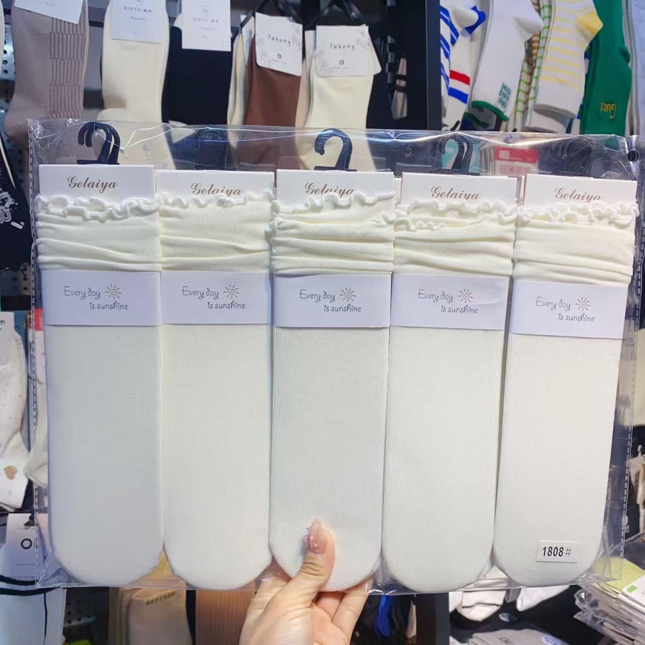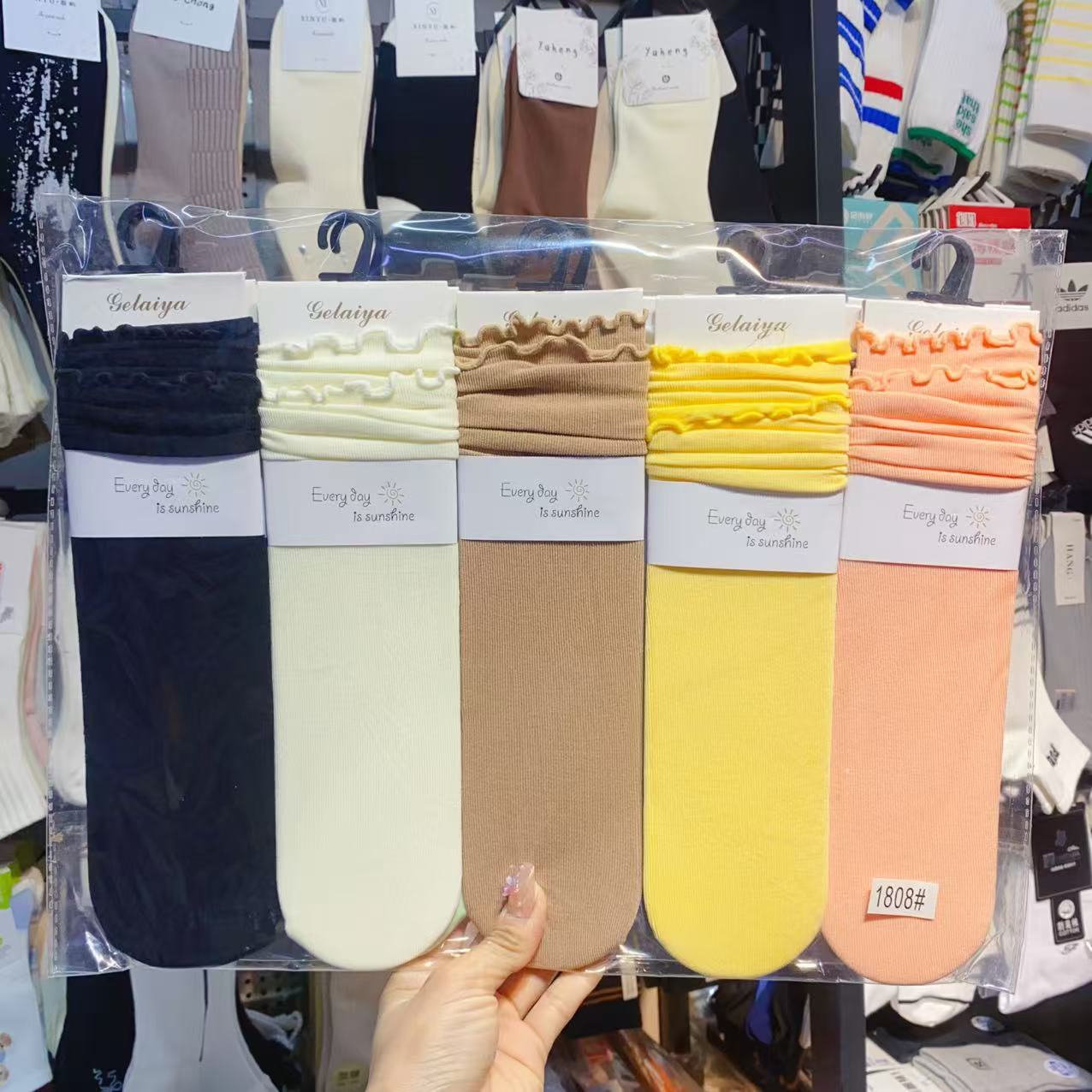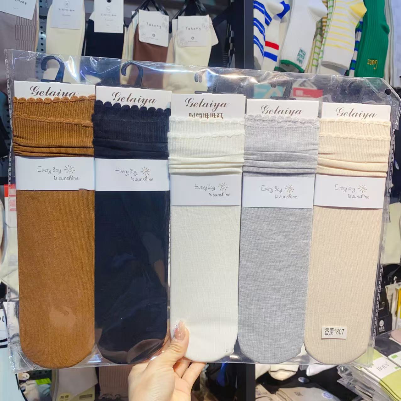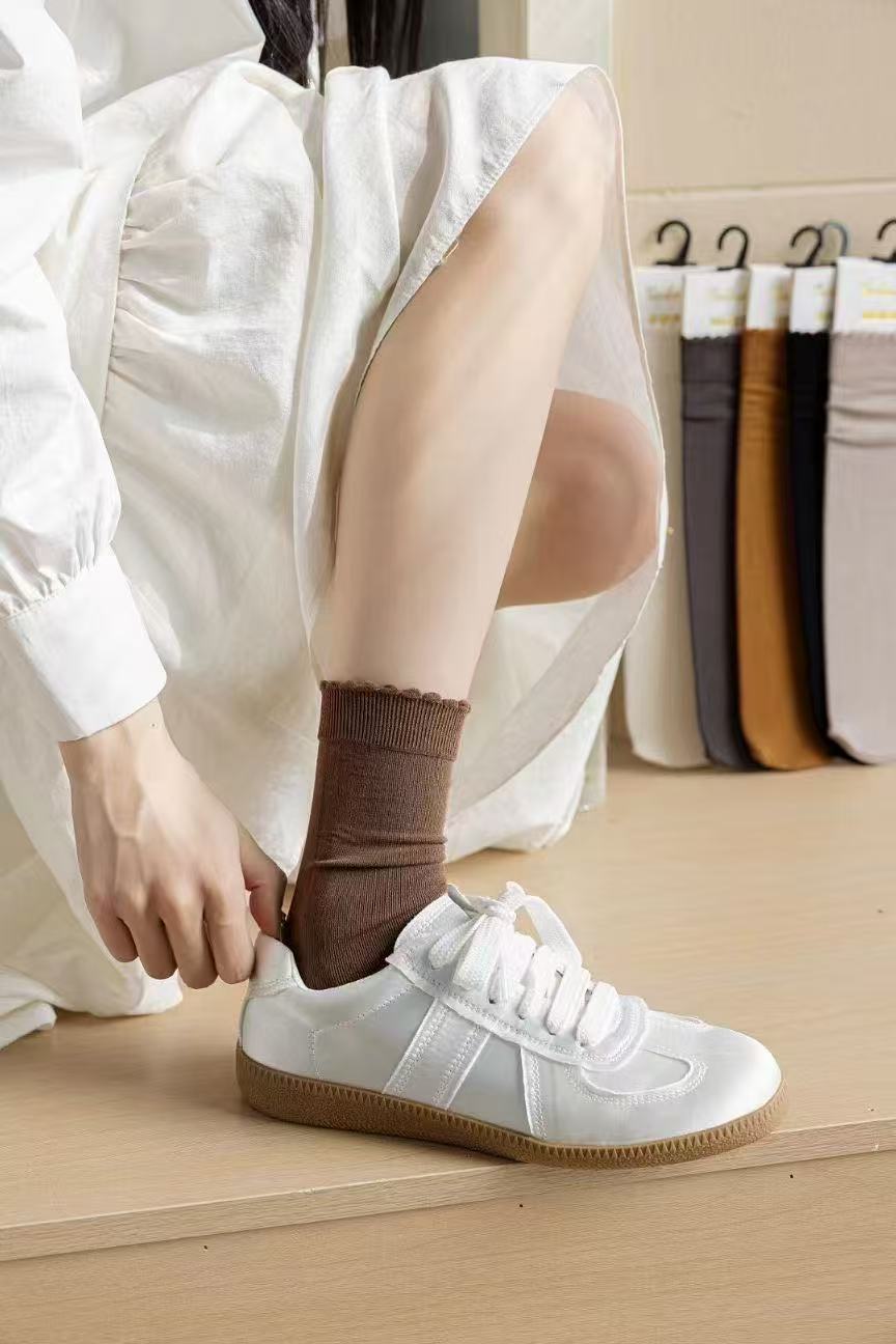 Glea 1807 Four Seasons Unheelled Wavy Lace 여성용 양말 포장 마일 라드 컬러 코튼 양말스토어 가기