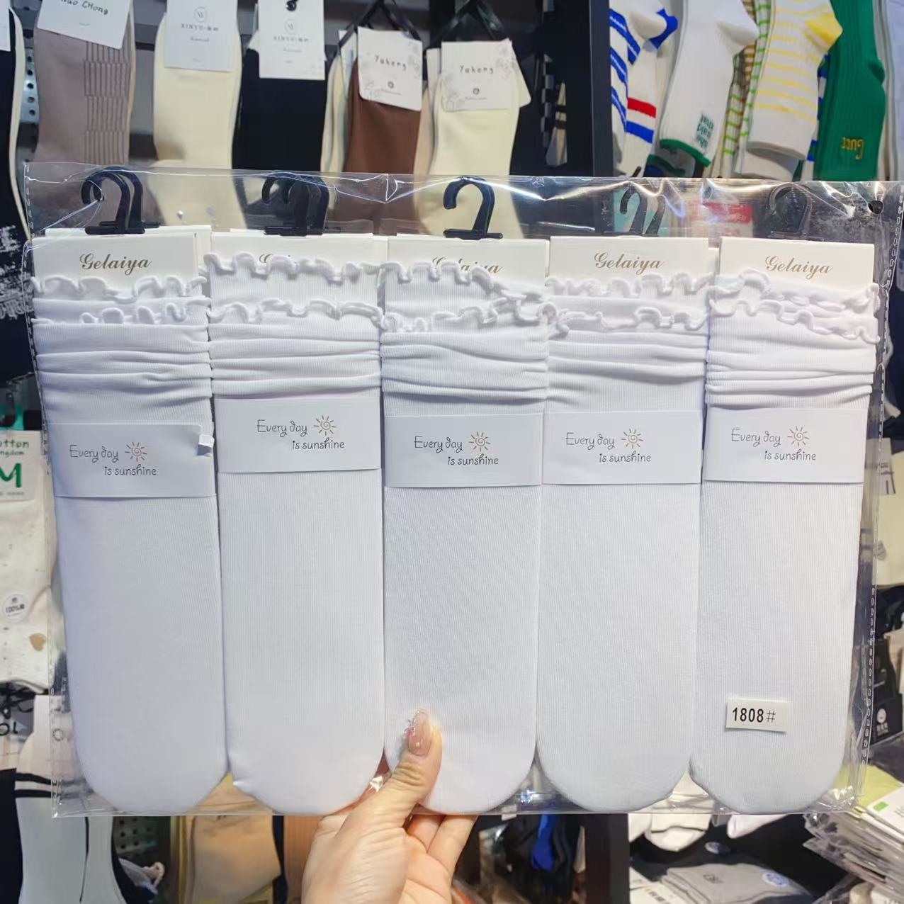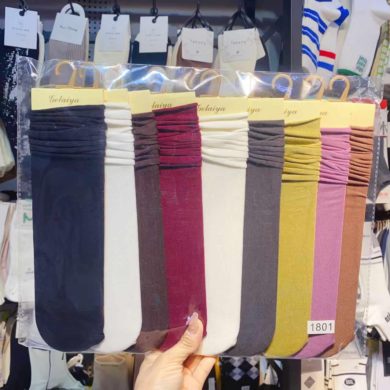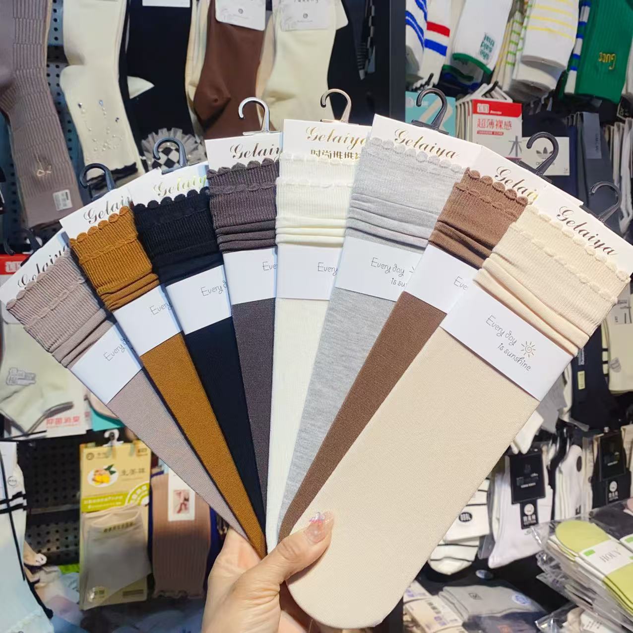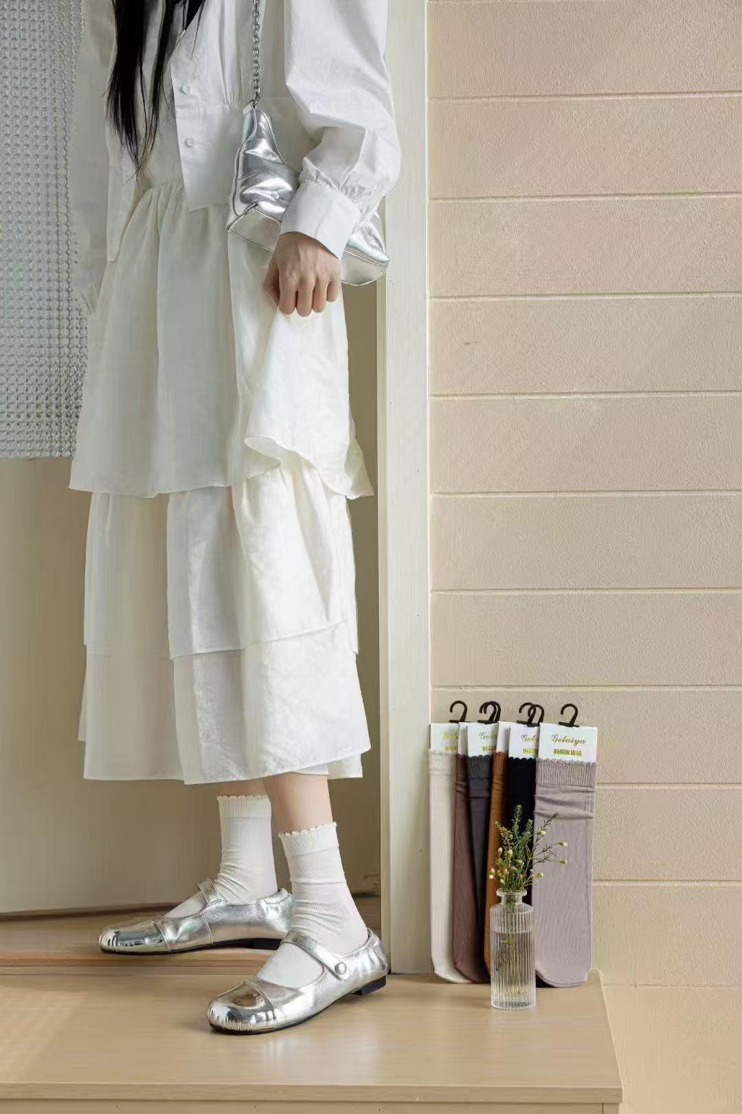 Glea 1807 Four Seasons Unheelled Wavy Lace 여성용 양말 포장 마일 라드 컬러 코튼 양말스토어 가기