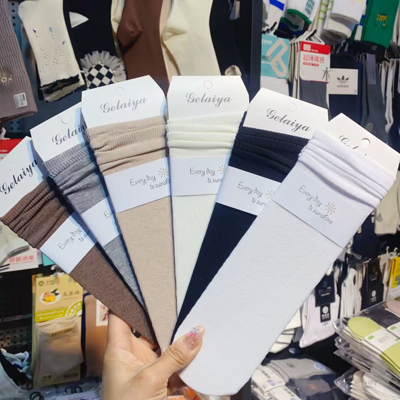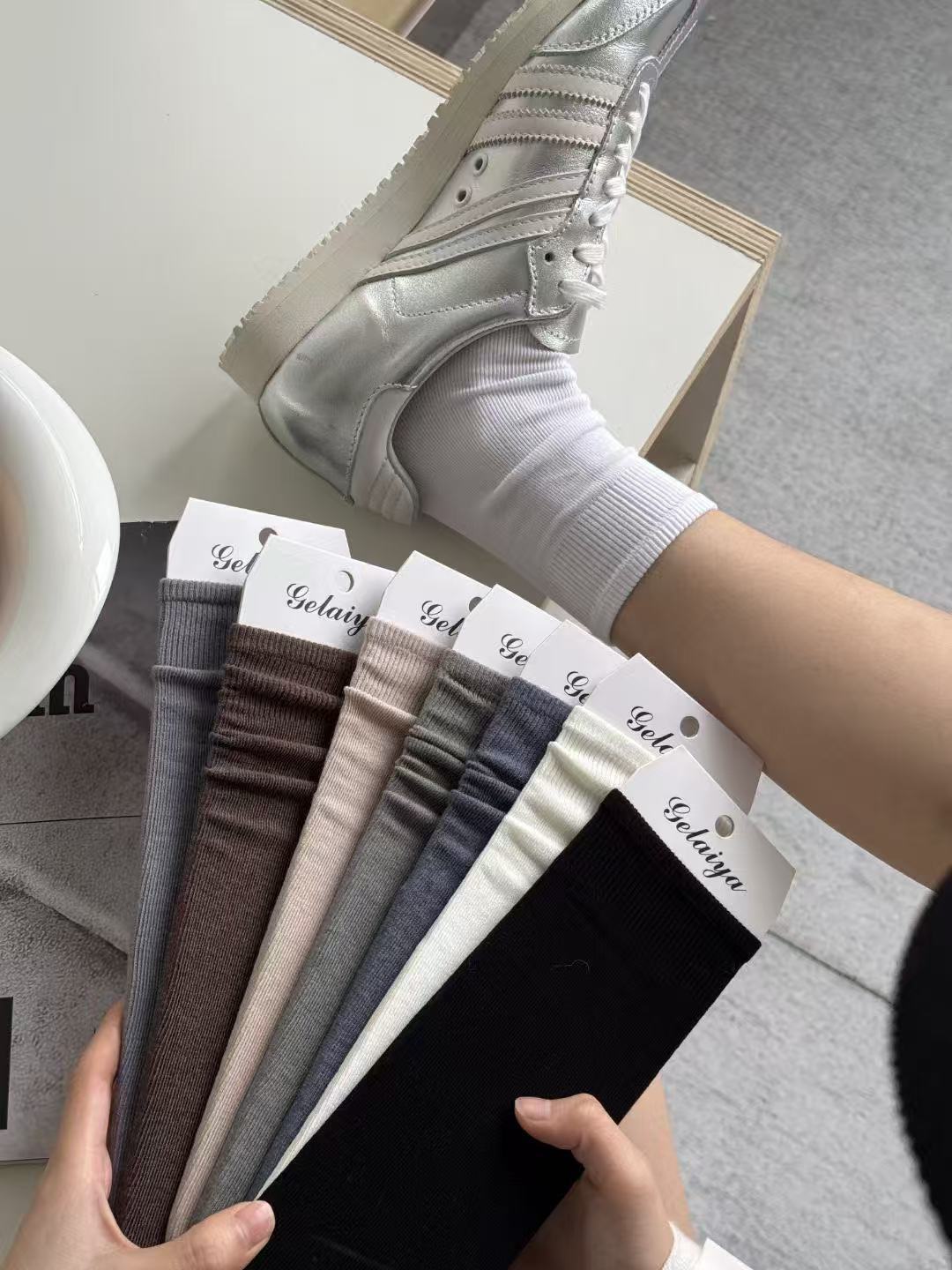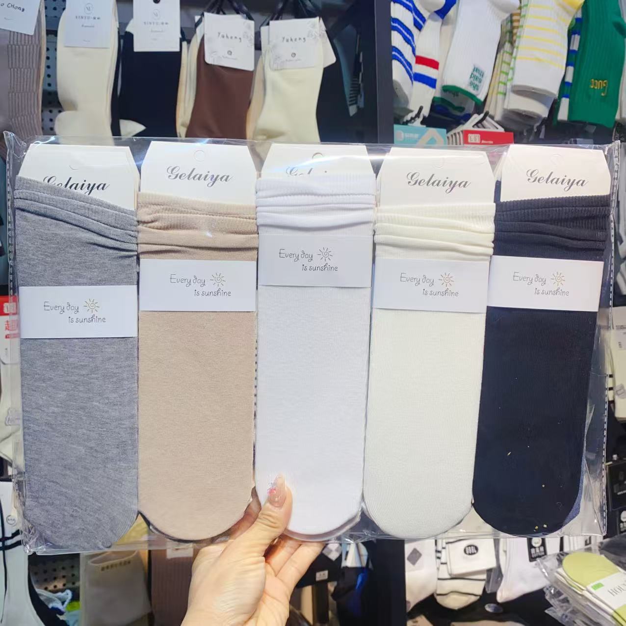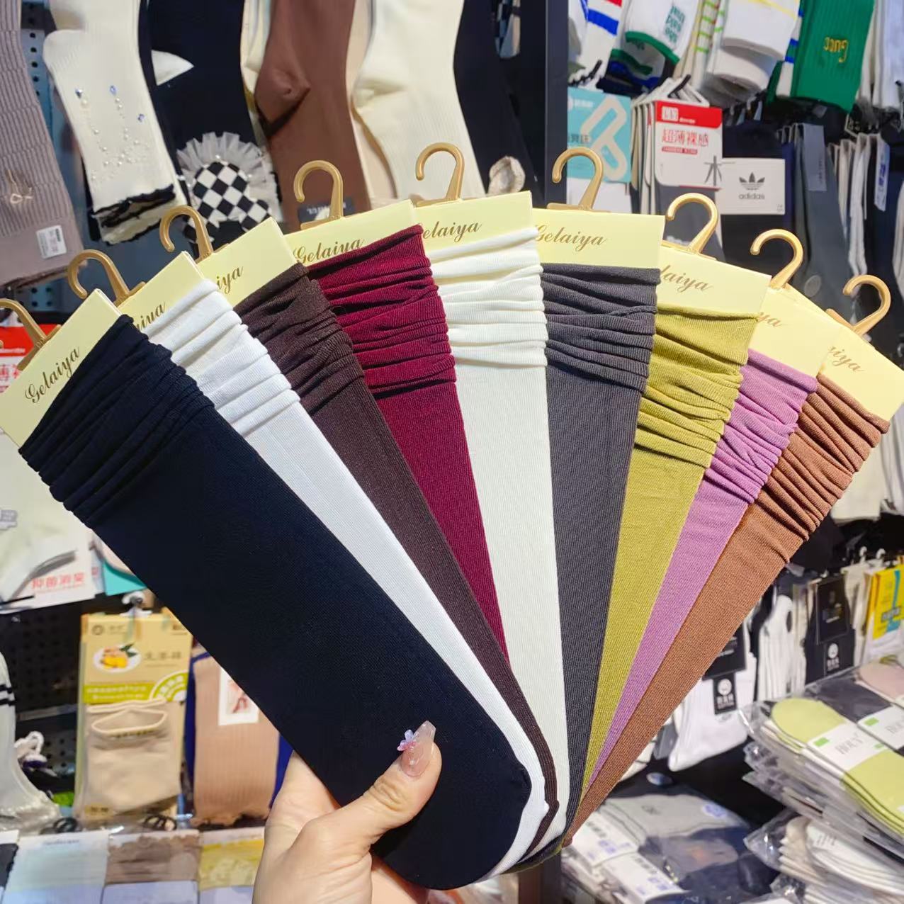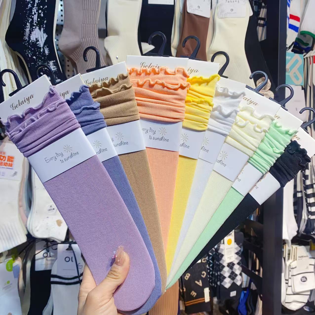 Glea 1807 Four Seasons Unheelled Wavy Lace 여성용 양말 포장 마일 라드 컬러 코튼 양말스토어 가기