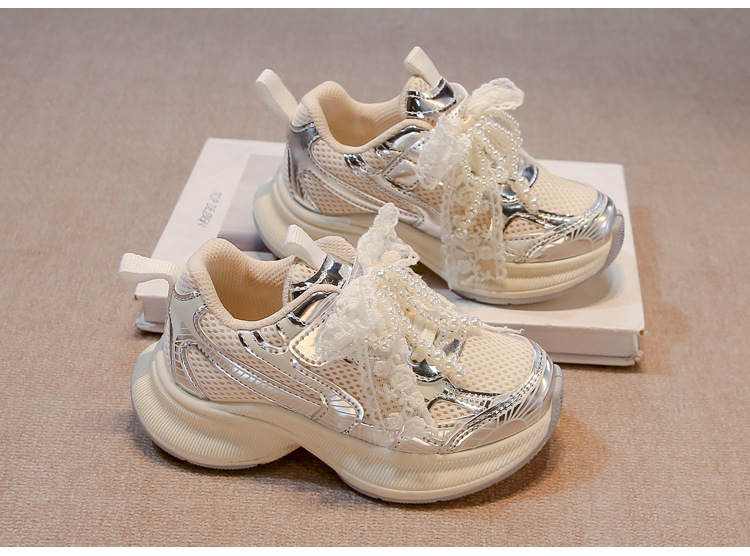 소녀 패션 활 레이스 진주 토레 신발 어린이 봄과 가을 새로운 미끄럼 통기성 중대형 어린이 운동화