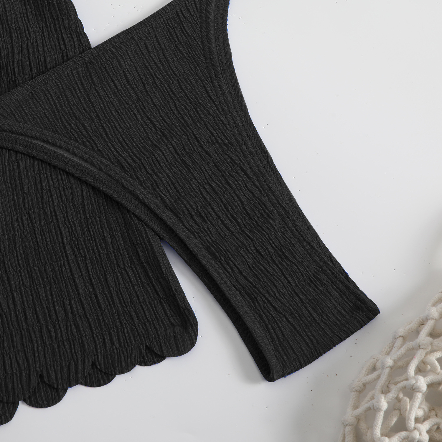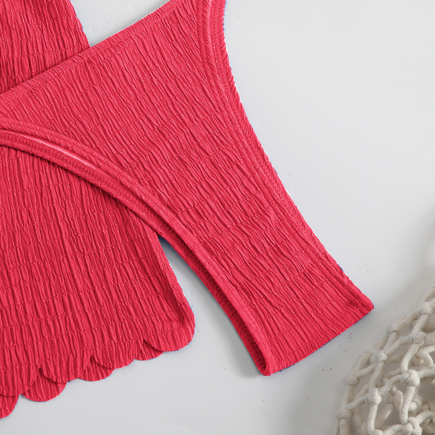 2025 유럽과 미국 국경 대외 무역 새로운 단색 해변 휴가 타이트한 섹시한 3 피스 수영복 비키니 숙녀