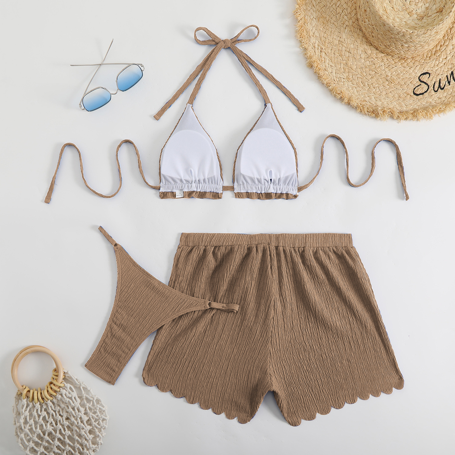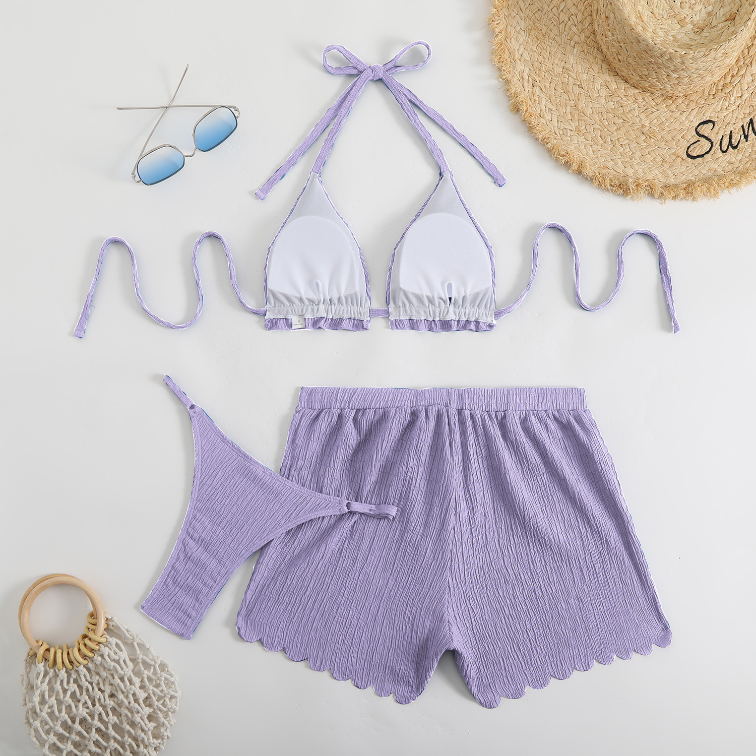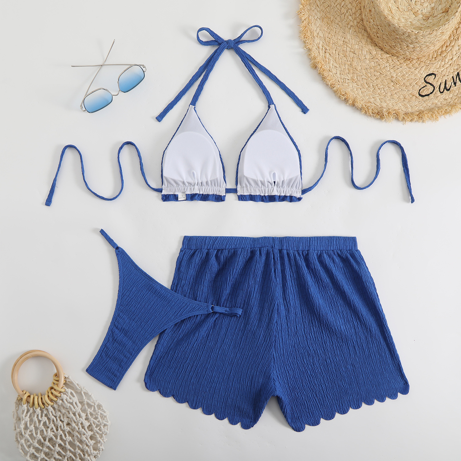 2025 유럽과 미국 국경 대외 무역 새로운 단색 해변 휴가 타이트한 섹시한 3 피스 수영복 비키니 숙녀스토어 가기