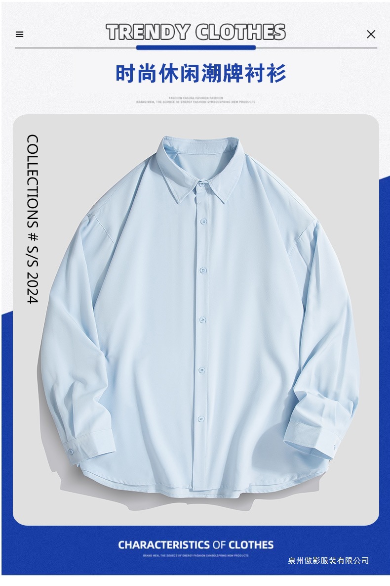 국경 도매 봄 새 셔츠 코트 남성용 트렌디 한 단색 셔츠 남성-화이트 라이트 블루 블랙 딥스토어 가기