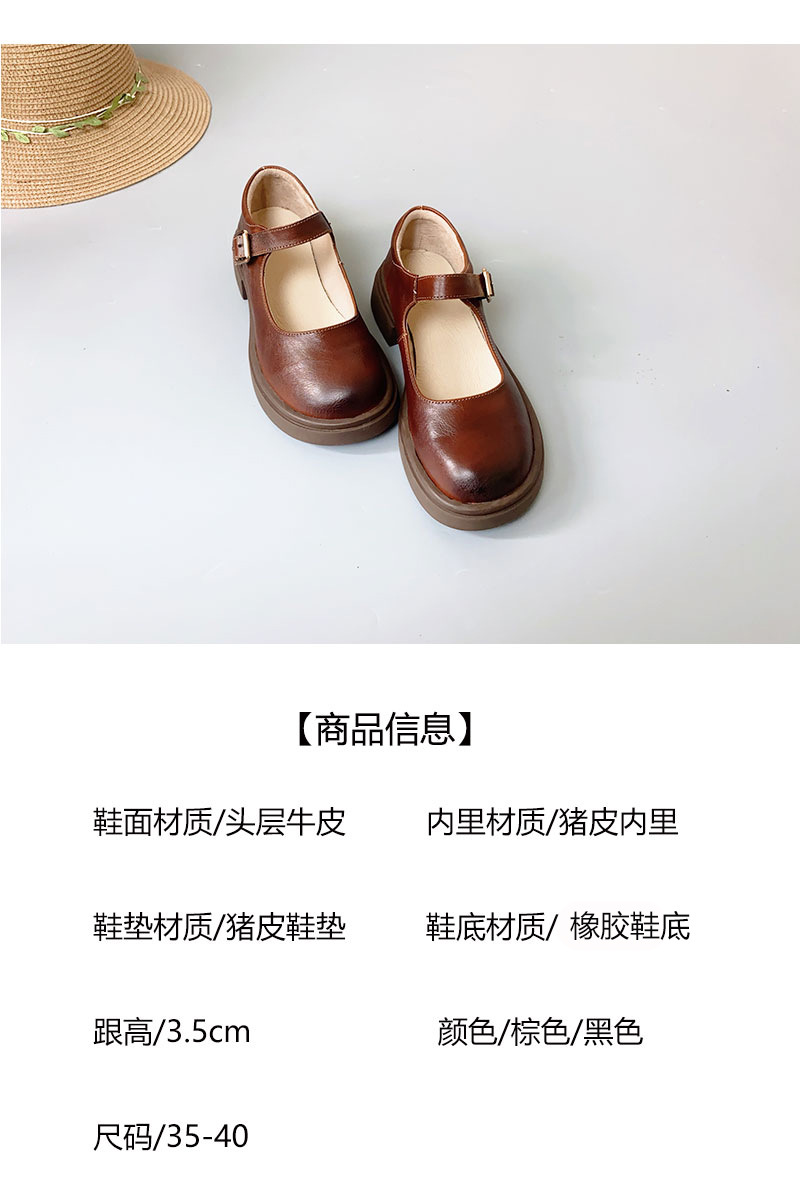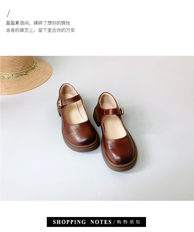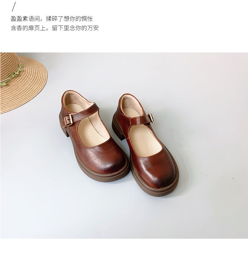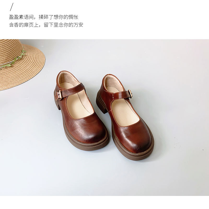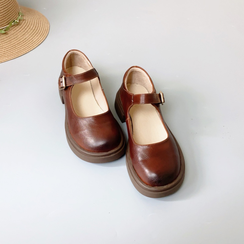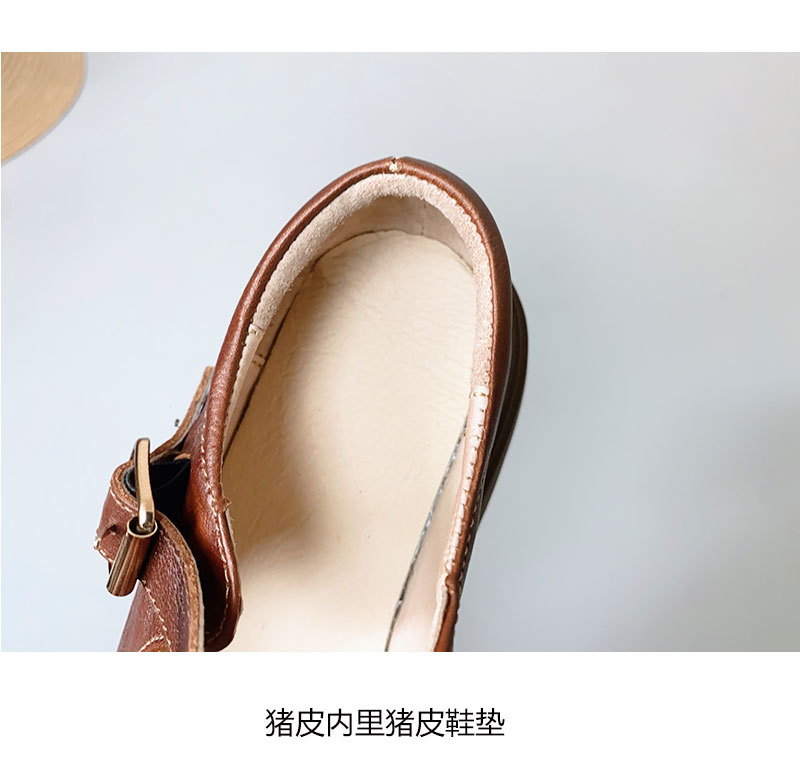 2025 년 봄 새로운 도착 수제 정품 가죽 여성 신발 모리 스타일 레트로 라운드 발가락 낮은 굽 카우보이 낮은 입 메리 제인 신발