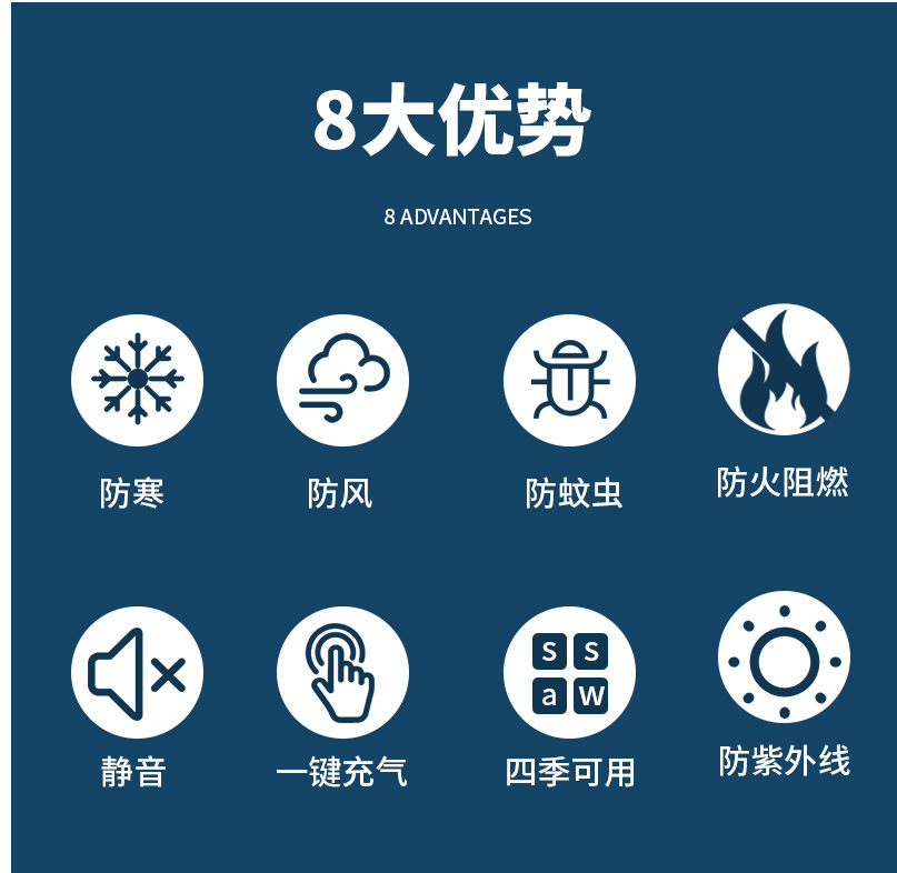 2 帐篷一体式结构,充气两分钟即可使用一个月