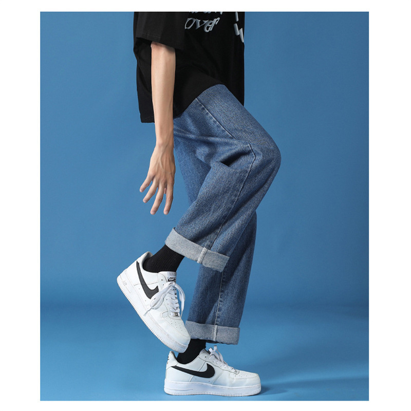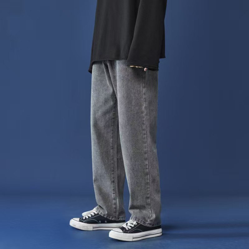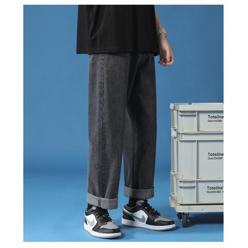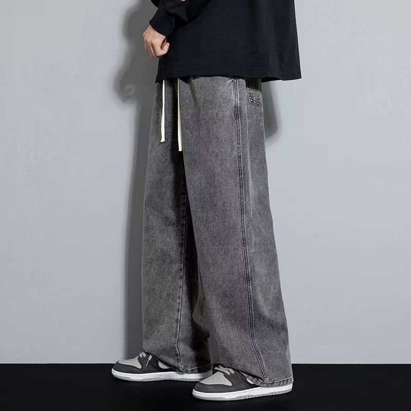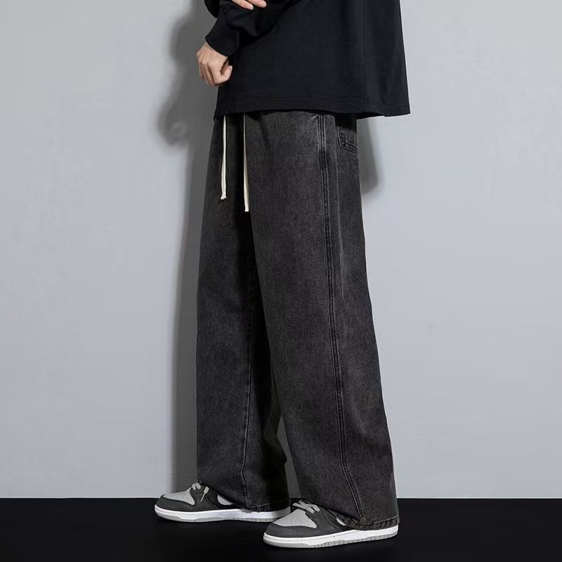 청바지 남자 2025 새로운 느슨한 스트레이트 캐주얼 바지 넓은 다리 바지 남자 가을 얇은 자른 바지스토어 가기