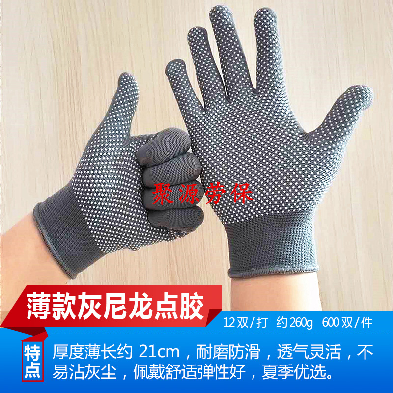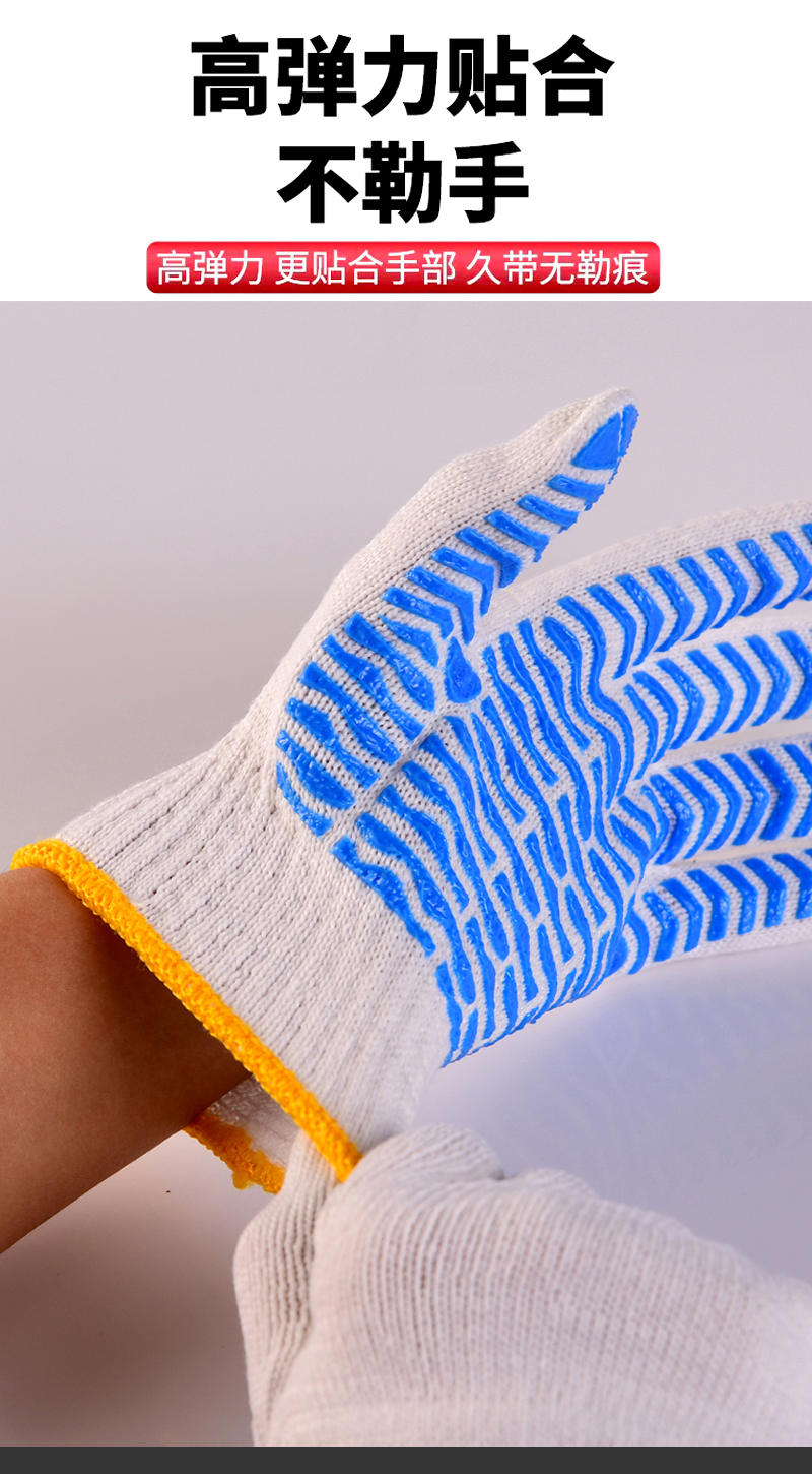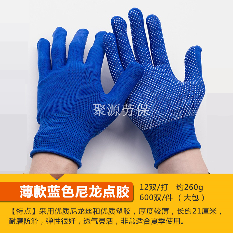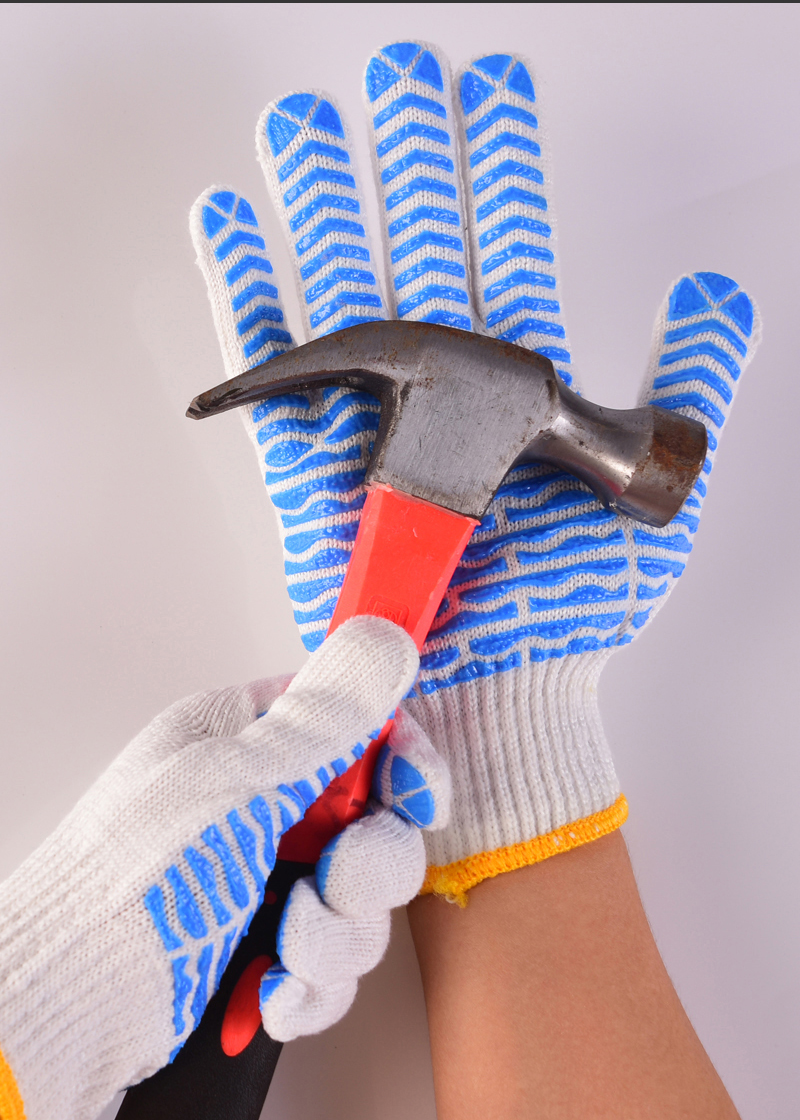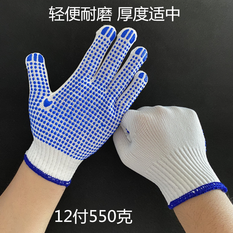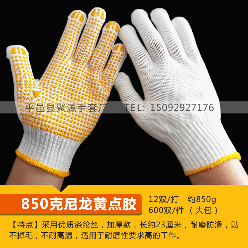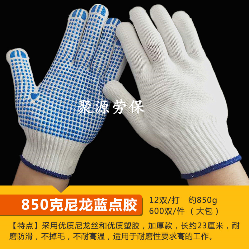 작업자의 작업 장갑 노동 보호 화이트 코튼 원사 장갑 내마모성 미끄럼 방지 나일론 장갑 두꺼운 분배 분배 플라스틱 담그는