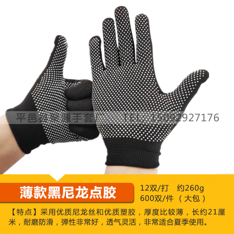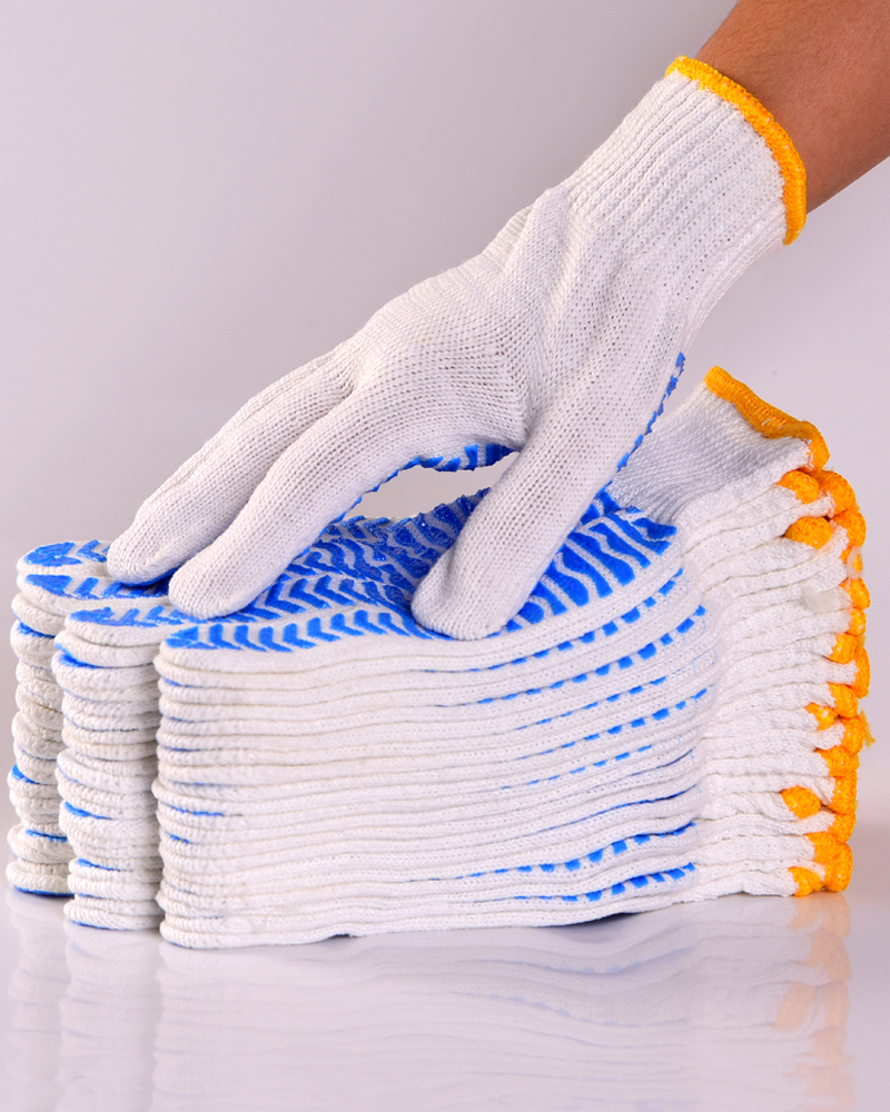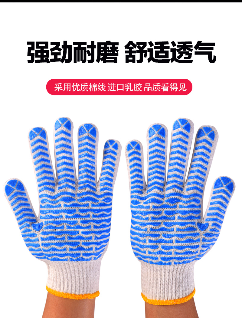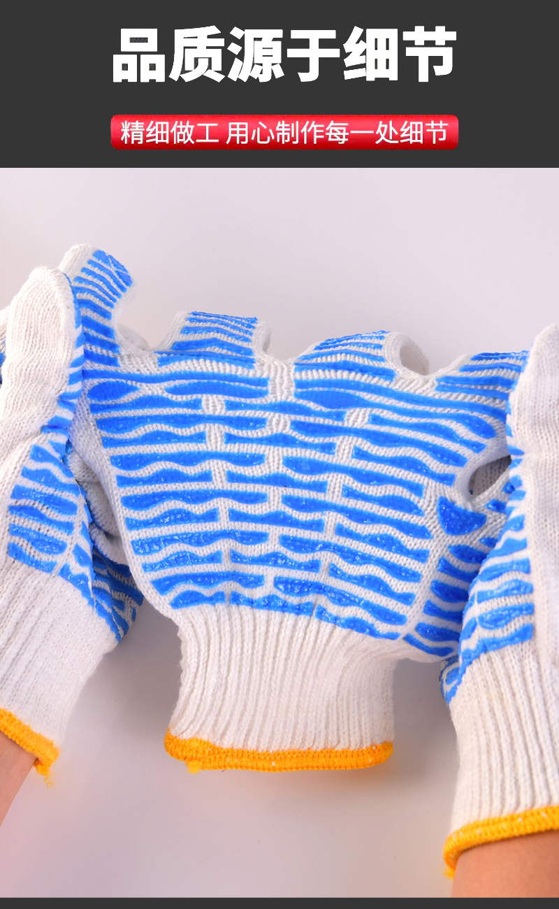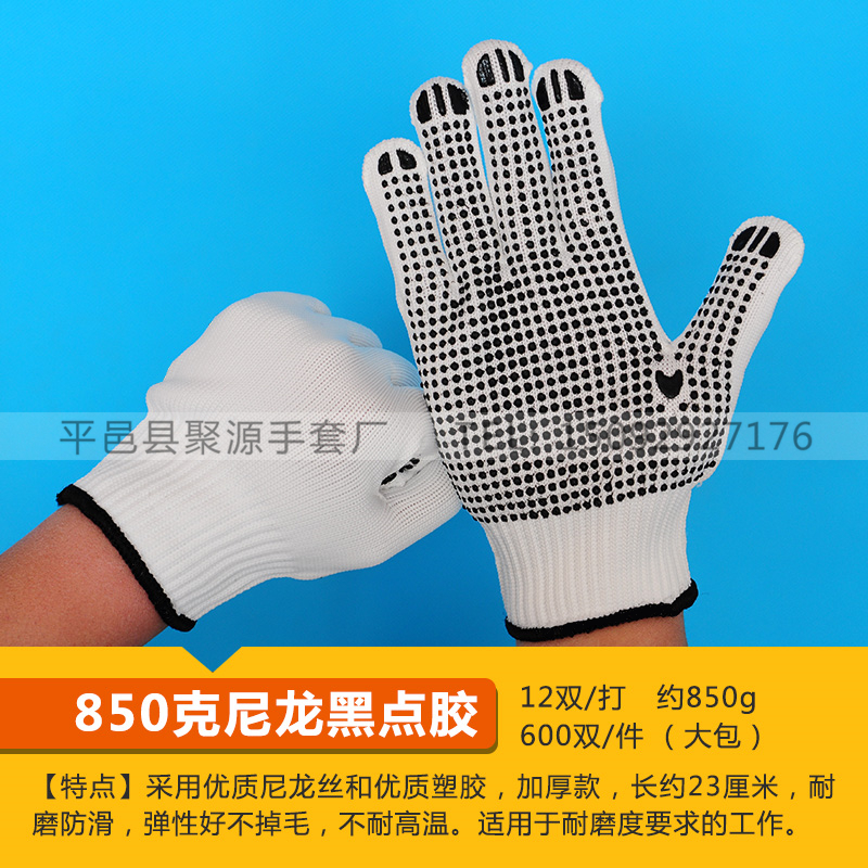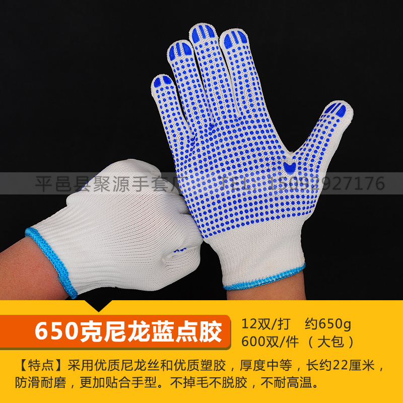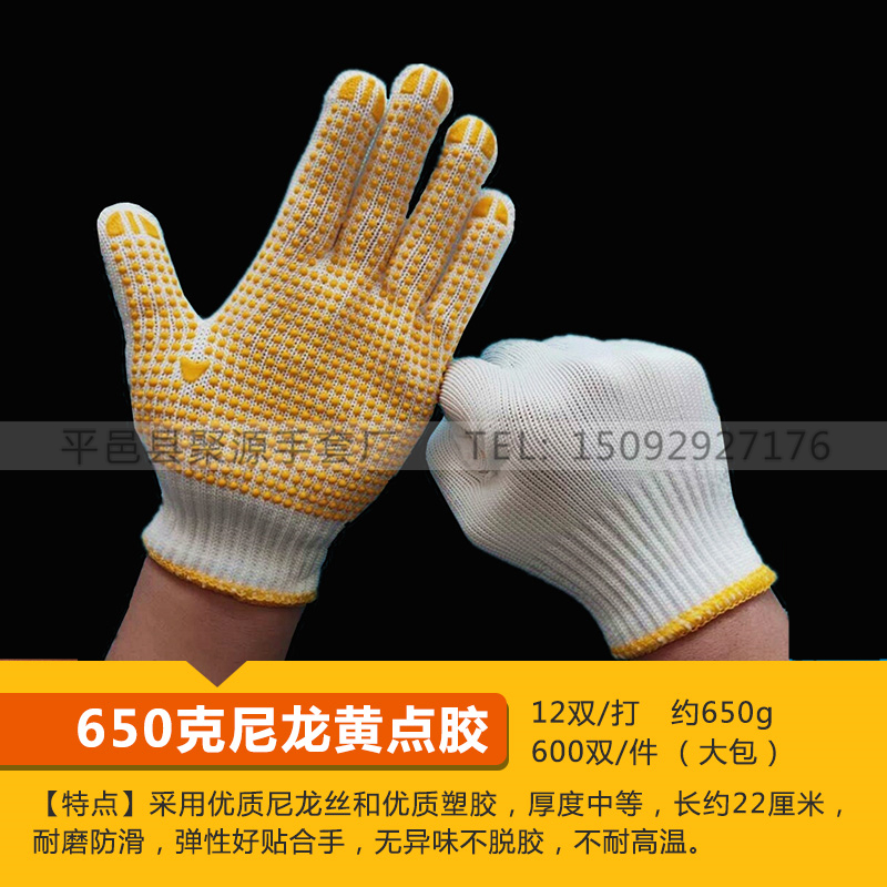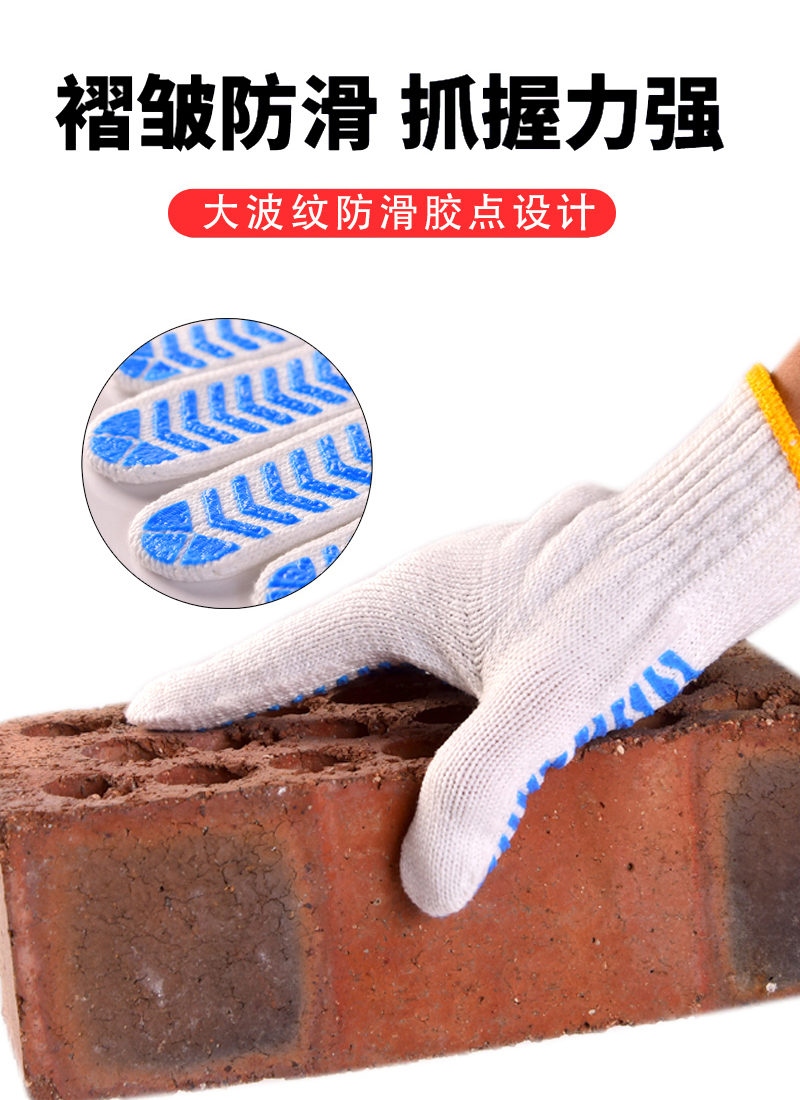 작업자의 작업 장갑 노동 보호 화이트 코튼 원사 장갑 내마모성 미끄럼 방지 나일론 장갑 두꺼운 분배 분배 플라스틱 담그는