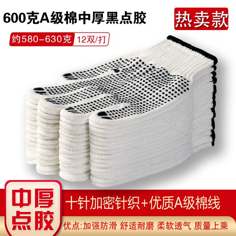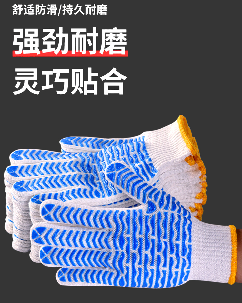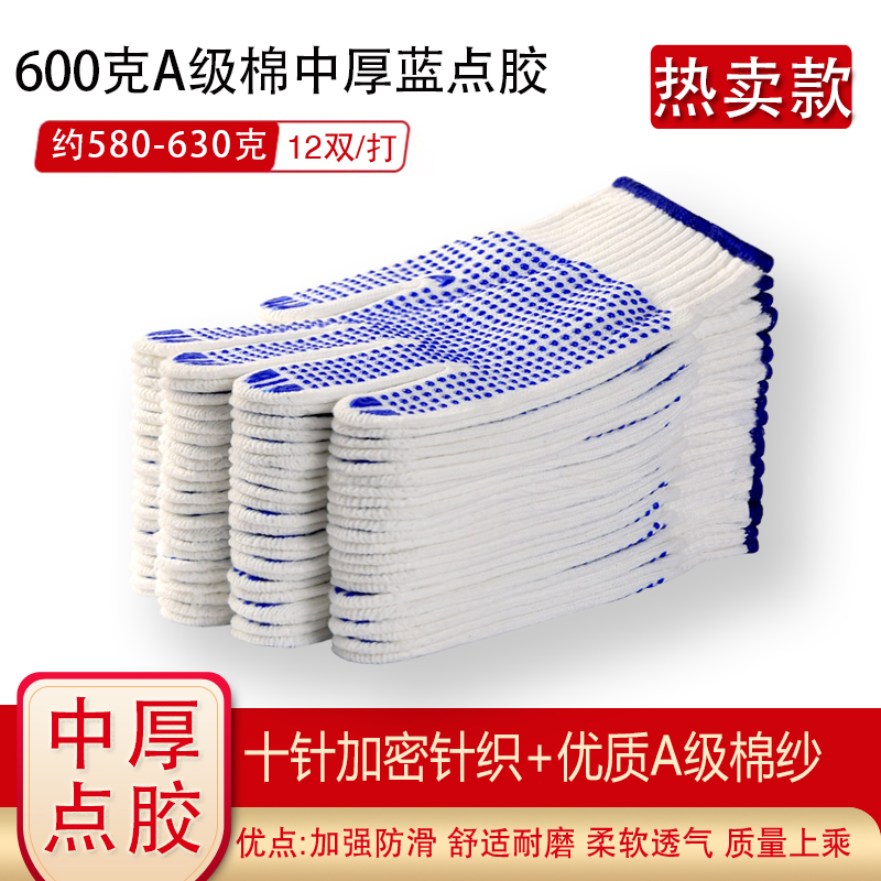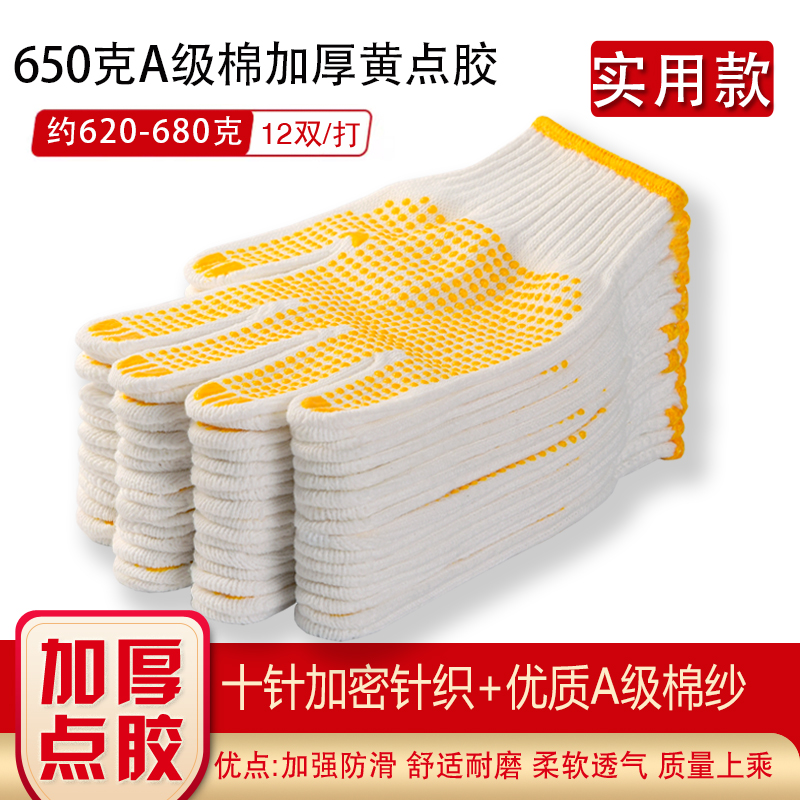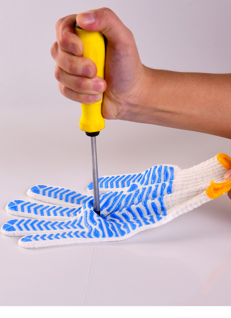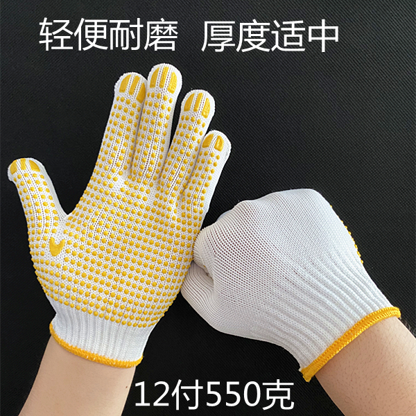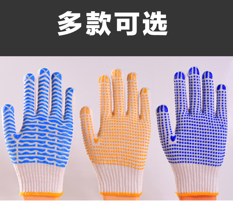 작업자의 작업 장갑 노동 보호 화이트 코튼 원사 장갑 내마모성 미끄럼 방지 나일론 장갑 두꺼운 분배 분배 플라스틱 담그는스토어 가기