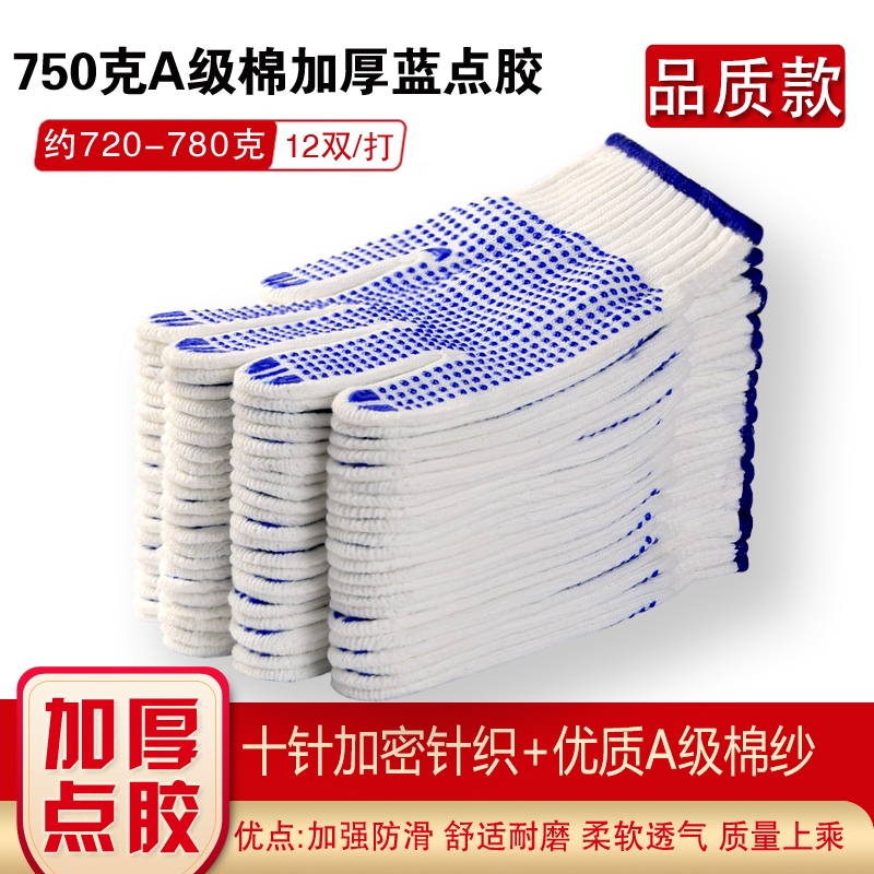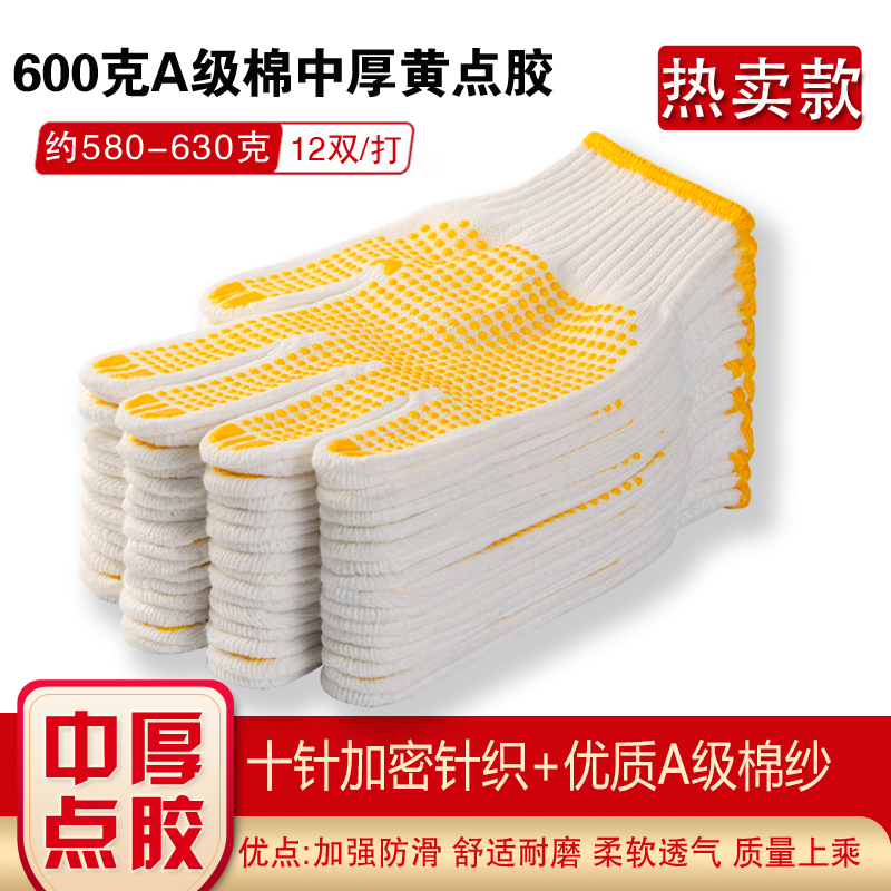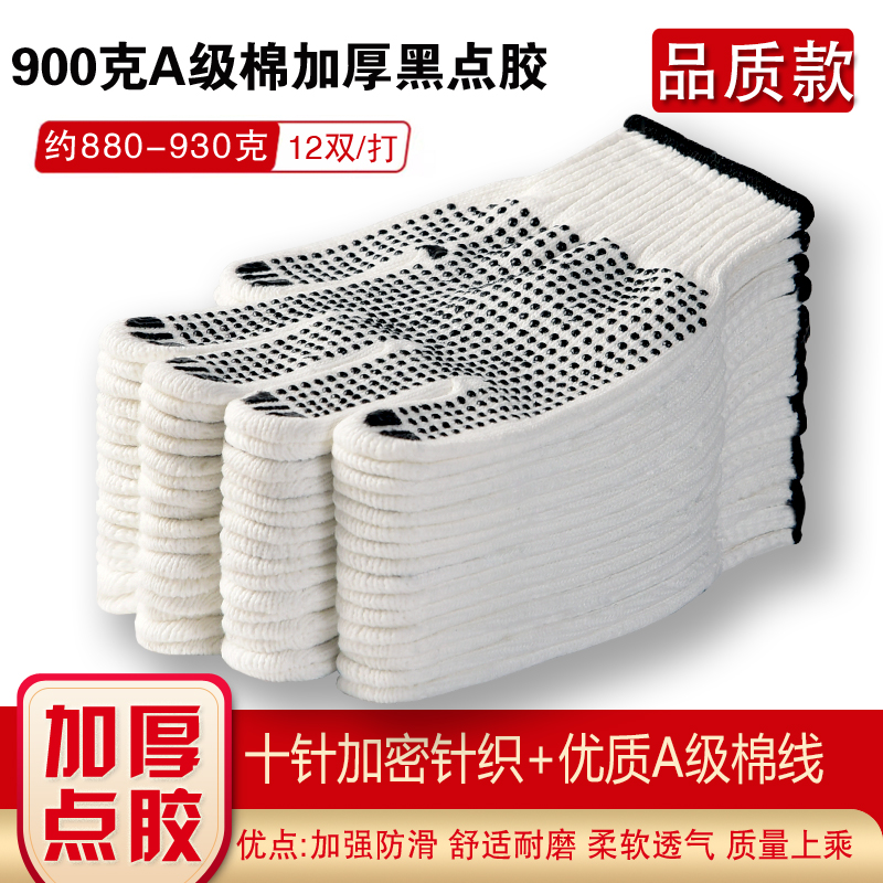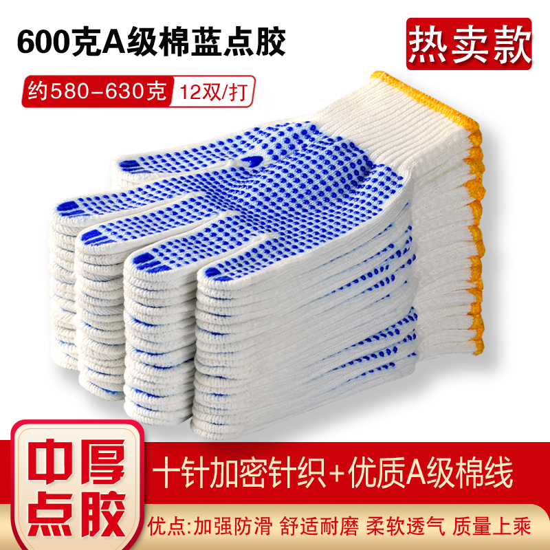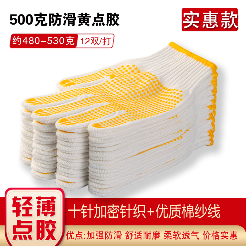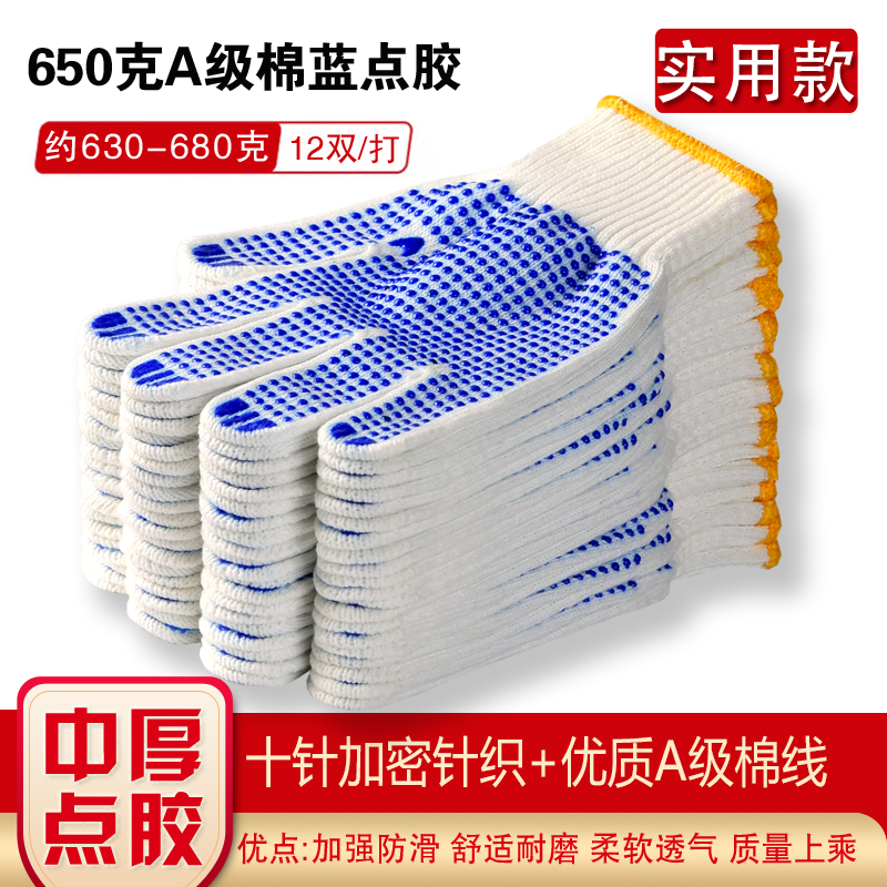 작업자의 작업 장갑 노동 보호 화이트 코튼 원사 장갑 내마모성 미끄럼 방지 나일론 장갑 두꺼운 분배 분배 플라스틱 담그는스토어 가기