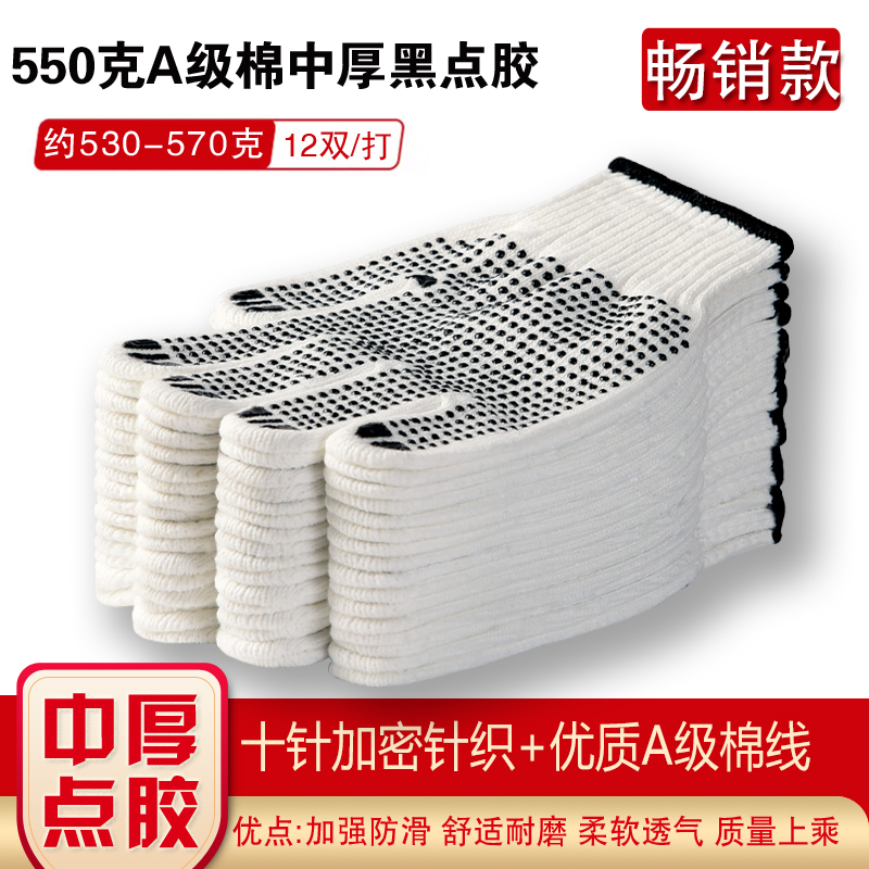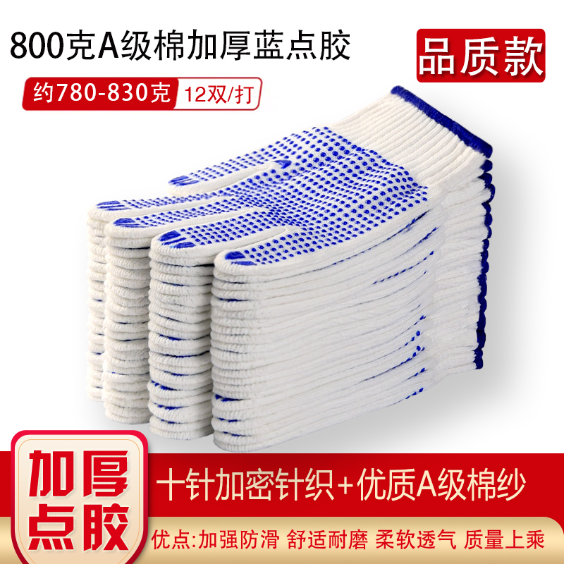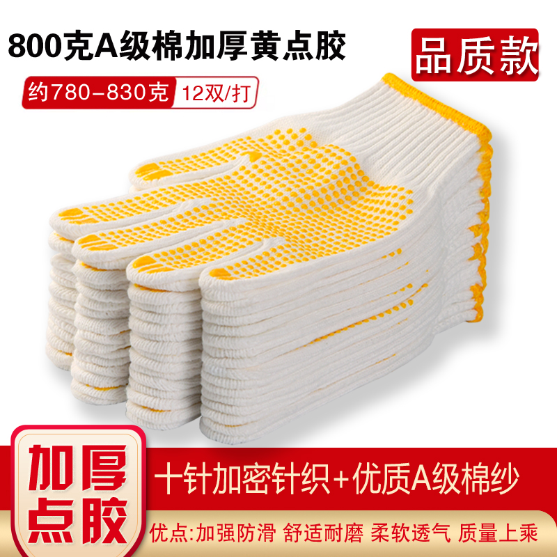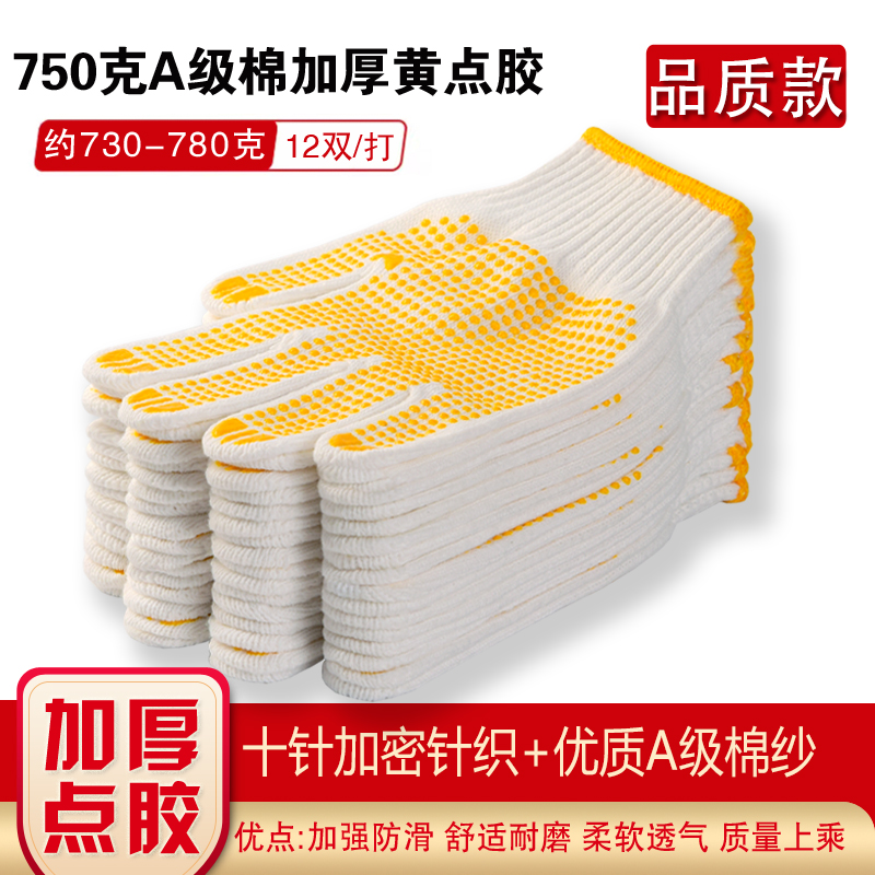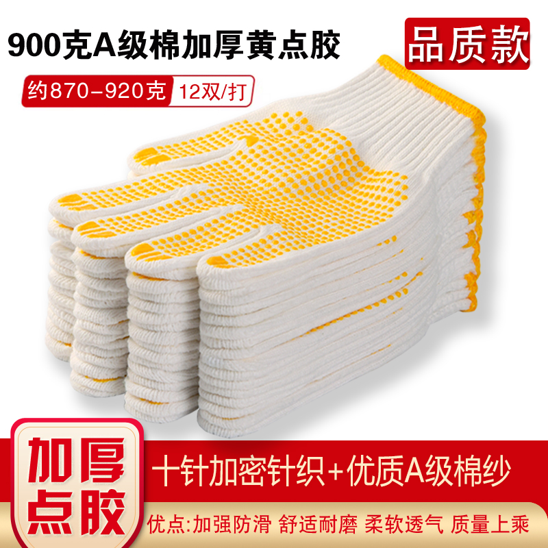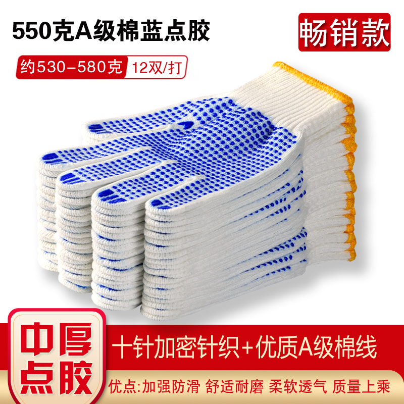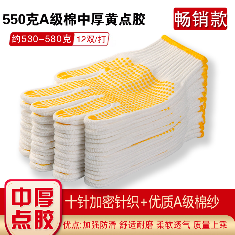 작업자의 작업 장갑 노동 보호 화이트 코튼 원사 장갑 내마모성 미끄럼 방지 나일론 장갑 두꺼운 분배 분배 플라스틱 담그는스토어 가기